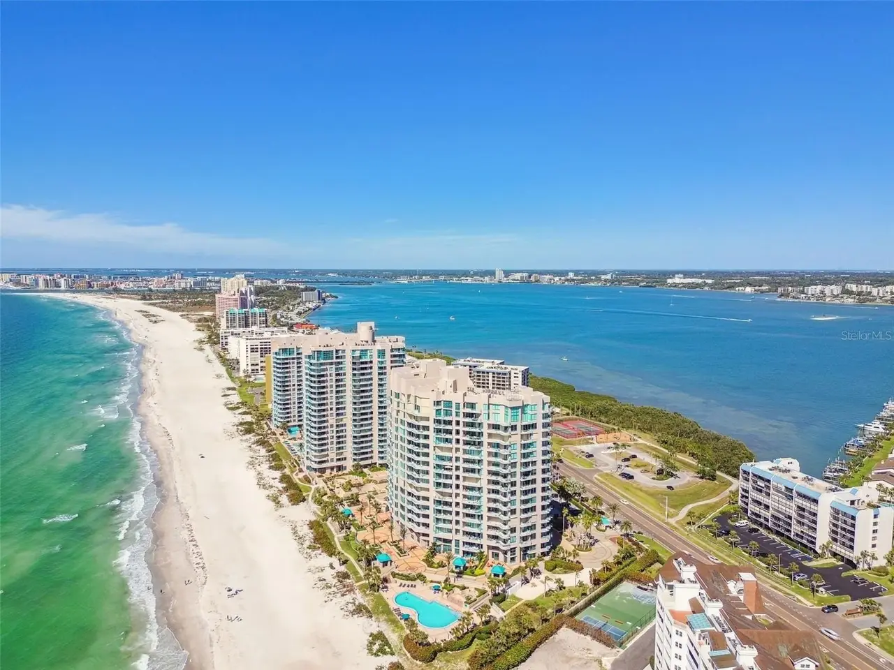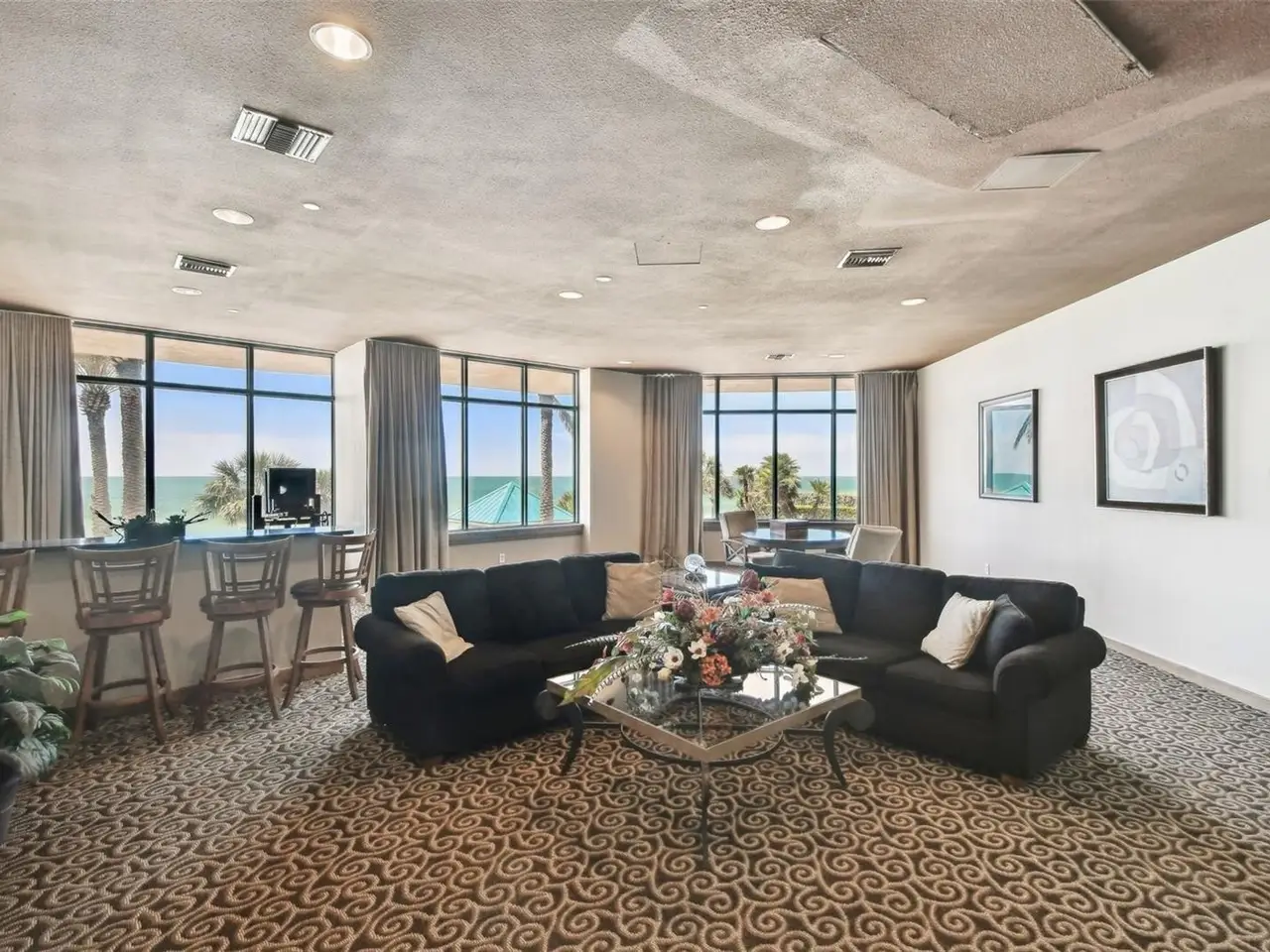 Experience the ultimate in beachfront living with this stunning, COMPLETELY RENOVATED, two-story Plaza level condominium on Clearwater Beach/Sand Key Beach. This rare corner unit provides an unparalleled lifestyle with over 4,300 square feet of indoor space and more than 2,500 square feet of outdoor living on the wrap-around terrace and balcony, all with breathtaking Gulf of Mexico views. Ultimar III on Sand Key Beach embodies five-star resort-style living. Inside, the open and spacious floor plan, featuring high ceilings and designer lighting, creates a warm and inviting space for both relaxation and entertaining. The unit offers 4 bedrooms and 4.5 bathrooms. Wet bar area with 2 beverage refrigerators. The kitchen is a culinary delight with quartz countertops, high-end stainless-steel appliances, custom cabinets, and a breakfast bar. The primary suite is a private sanctuary with a Gulf-front balcony, a large sitting area, 2 custom walk in closets and a spa-like bath featuring dual quartz vanities, a colossal, jetted tub, dual water closets, and an oversized steam shower. This residence also includes a brand-new private elevator, direct access to the beach and pools via patio walkways for seamless indoor/outdoor living, and a private two-car garage. Ultimar III offers a lifestyle of luxury with amenities such as on-site management, 24-hour security, gated entry, 3 heated pools with spas, tennis and basketball courts, a putting green, pickleball and croquet courts, an outdoor kitchen and fire-pit, lush landscaping, a state-of-the-art fitness center with spa, locker rooms, steam room, sauna, and showers. Social and recreational opportunities abound with a library, a social area with a full kitchen and media center, a business meeting room, and a billiards room. The building’s two-tiered lobby provides a grand entrance with expansive views. Enjoy the convenience of nearby restaurants, shops, and salons, and take advantage of the Beach Trolley located right outside for easy access to Sand Key Park and Clearwater Beach. Sand Key Beach offers an exclusive and sophisticated coastal living experience. Attached list of upgrades or inquire.
