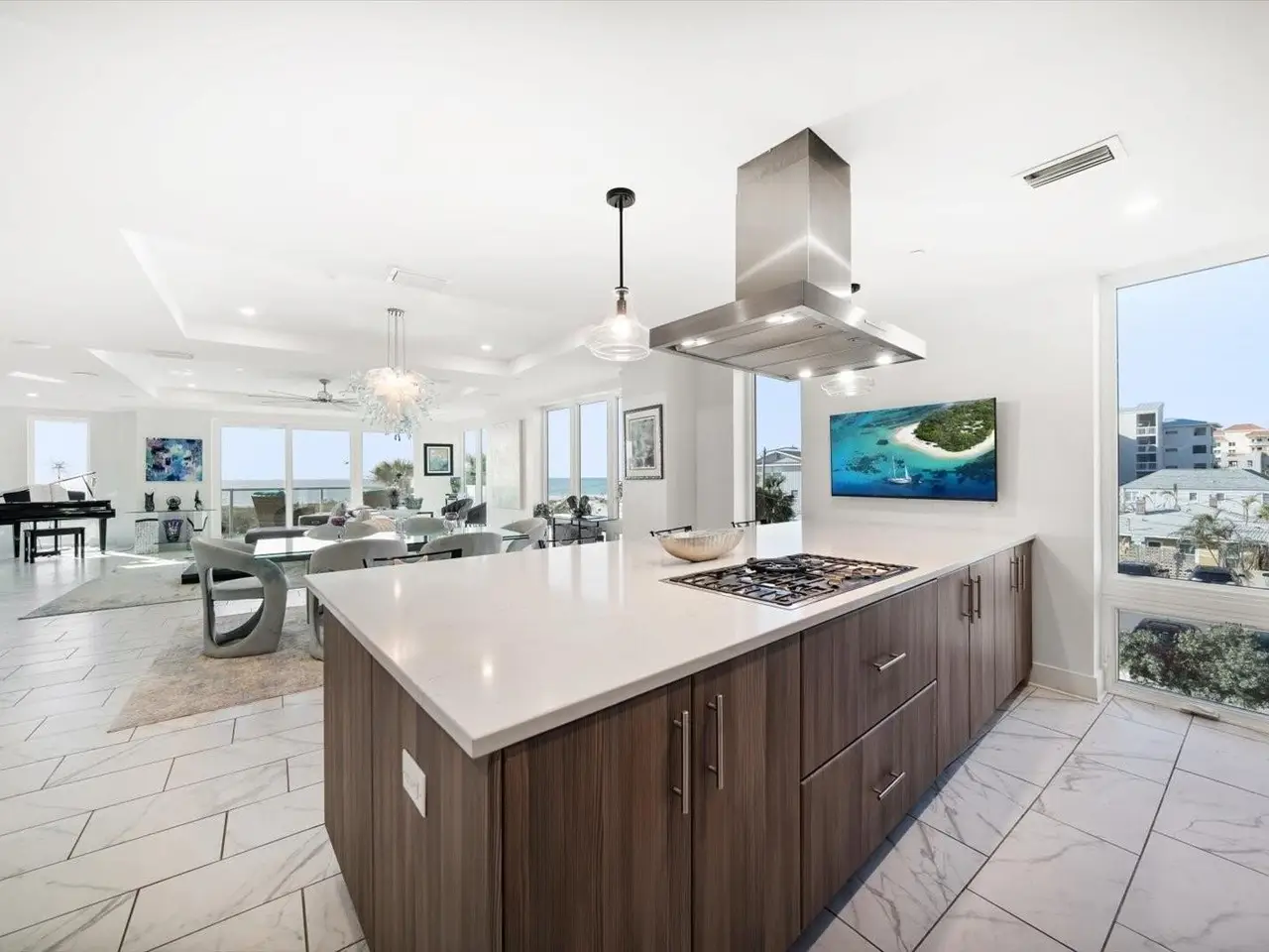 Experience the perfect fusion of luxury, coastal serenity and area vibrancy at Pura Vida Residences. Built in 2020, this exclusive community of just 22 private residences stands as one of the most recent additions to the tranquil, North end of award-winning Clearwater Beach yet is conveniently close to boutique shops, marine adventures, and a diverse array of dining options, from fine dining for special occasions to laid-back beachfront eateries…this is coastal living at its finest. Offering the largest floor plan in the building with 3,111sf, 4 bedrooms, 3.5 bathrooms, 10’ ceilings plus open concept living space, unit 303 is an exquisite and spacious NW corner residence offering comfort, style and refined living. Direct West facing floor-to-ceiling impact windows, sliders, and glass paneled balconies allow an abundance of natural light and seamlessly blend beach and Gulf views from the entire kitchen, living and dining areas, offering a front row seat to possibly some of the most spectacular sunsets you will ever see. Secure, direct elevator access opens to a dedicated foyer, where double doors lead you into this elegant coastal retreat. Art enthusiasts will appreciate the expansive hallways, ideal for showcasing personal collections. Premium features include Miele appliances, a 5-burner gas stove, sleek European-style cabinetry, oversized kitchen island with quartz countertops, tile flooring throughout, designer finishes, custom closets, motorized cellular shades (primary suite) and whole-unit water filtration. Select furniture pieces available, and all 7 wall-mounted flat-screen TVs convey. Conveniently located, private, climate controlled, 8x8 (approx) storage unit. Secure, gated entry to the building, 2 assigned under-building parking spaces (pre-wired for an electric vehicle charging station) located close to the lobby access. Personal beach locker for easy access to fun in the sun at your doorstep. Building amenities include heated pool with flow resistance, spa, club room, fitness center, indoor bike storage, key fob and digital security for doors and elevators, building back-up generator and 24-7 video security. Pro-active and professionally managed Association. Pet friendly building (1 pet under 30lbs). One month minimum rental. Don’t miss this rare opportunity to claim your elegant slice of paradise on Clearwater Beach.