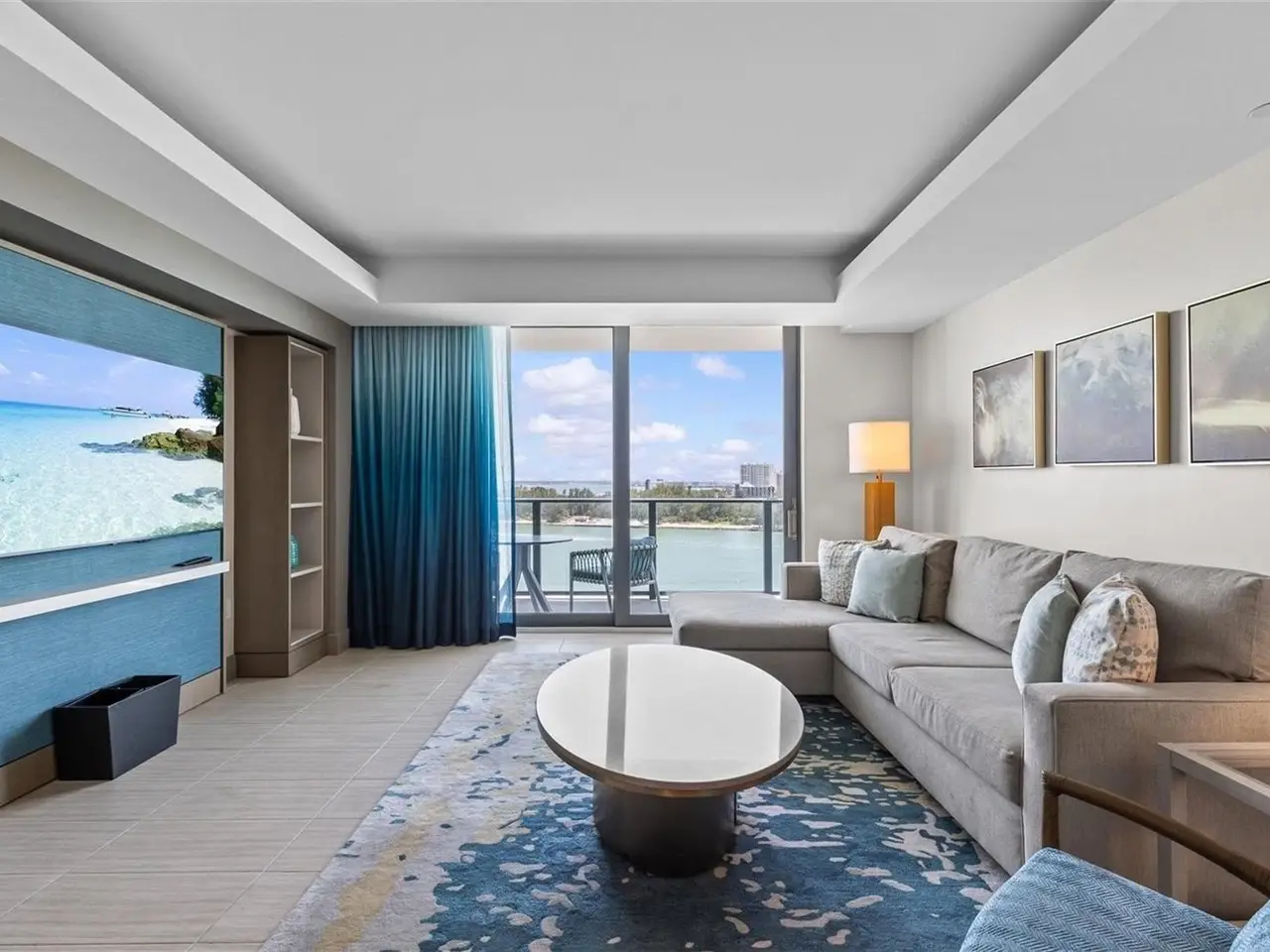 Experience elevated coastal living in this stunning, fully furnished 3-bedroom, 3-bathroom luxury condominium at the luxurious JW Marriott in Clearwater Beach. With sweeping views of the Gulf, this spacious residence blends contemporary design with relaxed coastal charm, offering the ultimate in resort-style living. Step into an open-concept living area adorned with coastal-inspired modern décor, where the sleeper sofa easily transforms into a full-size bed for additional guests. The gourmet 'vacation' kitchen is thoughtfully equipped with high-end appliances, including a refrigerator drawer, freezer drawer, convection microwave, and a full suite of countertop appliances, along with a full-size washer and dryer for added convenience. The primary suite is a luxurious retreat, featuring a king-size bed, spa-style soaking tub, upscale finishes, and breathtaking views of the turquoise waters. The second suite includes a king-size bed and en-suite bath, while the third bedroom offers double queen beds and access to a separate full bathroom — perfect for families or guests. Enjoy exclusive access to JW Marriott’s luxurious amenities, including a private beach with towel, umbrella, and food service, a spectacular rooftop pool with ocean views, multiple dining options, and exceptional resort services. Nestled in one of Florida’s most sought-after beachfront locations, this luxury condo offers an unmatched blend of comfort, style, and convenience — perfect as a vacation home, investment property, or full-time residence. This unit is currently enrolled in the Marriott Rental Program and acts as a suite in the resort; owner has usage rights outlined therein. Please ask for details. This is a hassle-free rental property and generates significant income. Live the JW Marriott lifestyle—where luxury meets the beach.