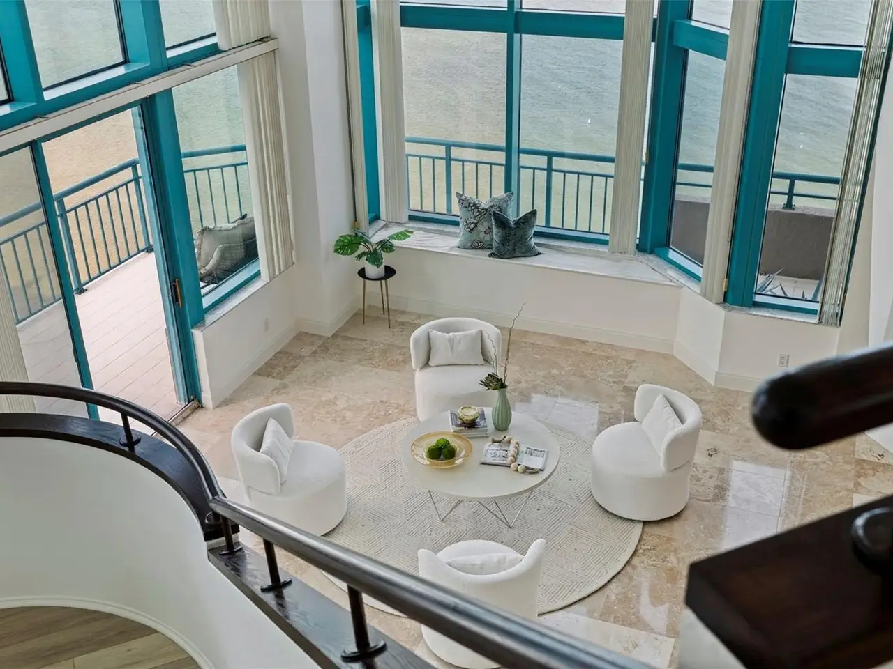 Rare Two-Story Beachfront Penthouse – Panoramic Sunset Views, Stunning Updates & Hurricane-Resilient Design...This exceptionally rare, two-story beachfront penthouse at ULTIMAR One has been brilliantly refreshed and elevated, offering an unmatched combination of modern elegance, Gulf-front panoramas, and peace of mind with solid concrete construction. Occupying both the 19th and 20th floors, this premier penthouse residence offers an expansive layout on the top of this southwest-facing masterpiece. From the moment you enter, breathtaking Gulf views unfold, with every room opening to impressive balconies that create an ever present connection to the water. These expansive wraparound terraces create the sensation of floating above the shoreline — perfect for entertaining, relaxing, and soaking in the serenity of the sea with the sound of the waves. Living at Ultimar is more than a mark of prestige — it’s the realization of your dream coastal lifestyle. Here, every day feels like a vacation, and every moment a reminder that you’ve arrived at the pinnacle of beachfront living. Inside, upscale new updates including floors and elegant bathrooms have transformed this residence into a turnkey showcase of coastal luxury. The grand two-story living space is framed by soaring ceilings and walls of glass, with a dramatic curved staircase that serves as the architectural centerpiece. The contemporary kitchen pairs rich cabinetry with sleek dark granite, opening to a casual dining area with sweeping Gulf views. The formal dining room offers an elegant setting with beach vistas as your backdrop. The first level also features a versatile first guest bedroom (ideal as an office), a new elegant bathroom, and a gracious guest suite (or second primary) with oversized walk-in closet and expansive walk-in shower — all refreshed to reflect a sophisticated design with a spacious layout. Upstairs, an open loft / media lounge overlooks the living room and opens to a private upper balcony. The primary suite is a true sanctuary, with dual custom walk-in closets and two indulgent, spa-inspired bathrooms featuring soaking tub, walk-in showers, and resort-quality finishes. A semi-private elevator delivers you directly to your penthouse door, and a private two-car garage with additional storage located just steps from the elevator for unmatched convenience. As part of the exclusive Ultimar community, residents and guests enjoy an elevated lifestyle with three resort-style pools, whirlpool spas, tennis courts, a state-of-the-art fitness center, billiards room, plenty of parking, and private beach access — all just steps from the sugar-white sands of Sand Key. Minutes from Clearwater Beach and Belleair, and only 30 minutes from Tampa International Airport, this residence offers a rare blend of seclusion, sophistication, and security. This move-in-ready, newly updated two-story penthouse is more than a home — it is a statement of coastal luxury, a lifestyle realized, and one of the most sought-after residences on Florida’s Gulf Coast.
