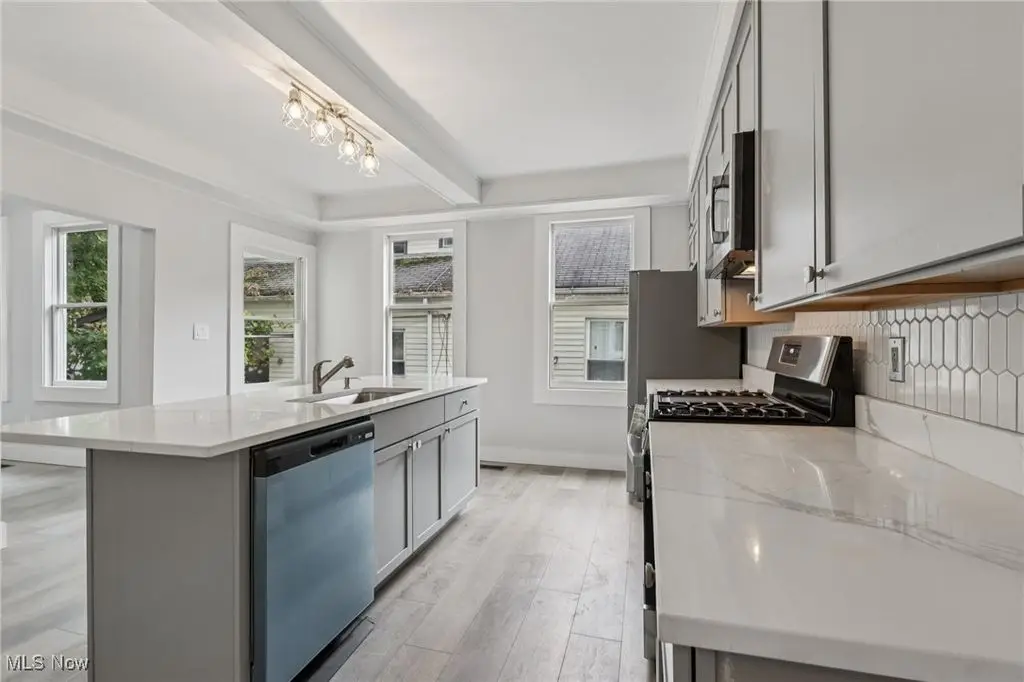 Welcome to this beautifully updated home in highly desirable Ohio City! This spacious property offers a bedroom and a flex room, convenient full bathroom and laundry area are located on the main level, making daily living effortless. Additionally, there are 3 comfortable bedrooms upstairs, including a stunning primary bathroom with heated floors - perfect for staying cozy on chilly Cleveland mornings. The home features stylish wood flooring throughout the main level, while the upstairs bedrooms offer plush carpeting underfoot. The main level also includes a flex space - ideal for working from home or as a guest room.Enjoy the modern kitchen, complete with new stainless-steel appliances, granite countertops, and ample cabinet space. Outside, you'll find a good-sized backyard and a private driveway providing plenty of off-street parking. Big ticket items are all new including furnace, central air conditioning, water heater, and stainless steel appliances in the kitchen.Move right in and experience all the updates and charm this Ohio City gem has to offer! Call to schedule your private showing today!