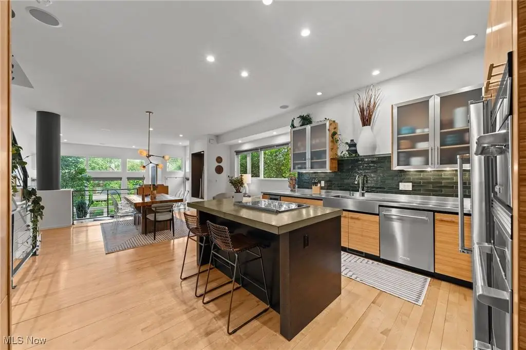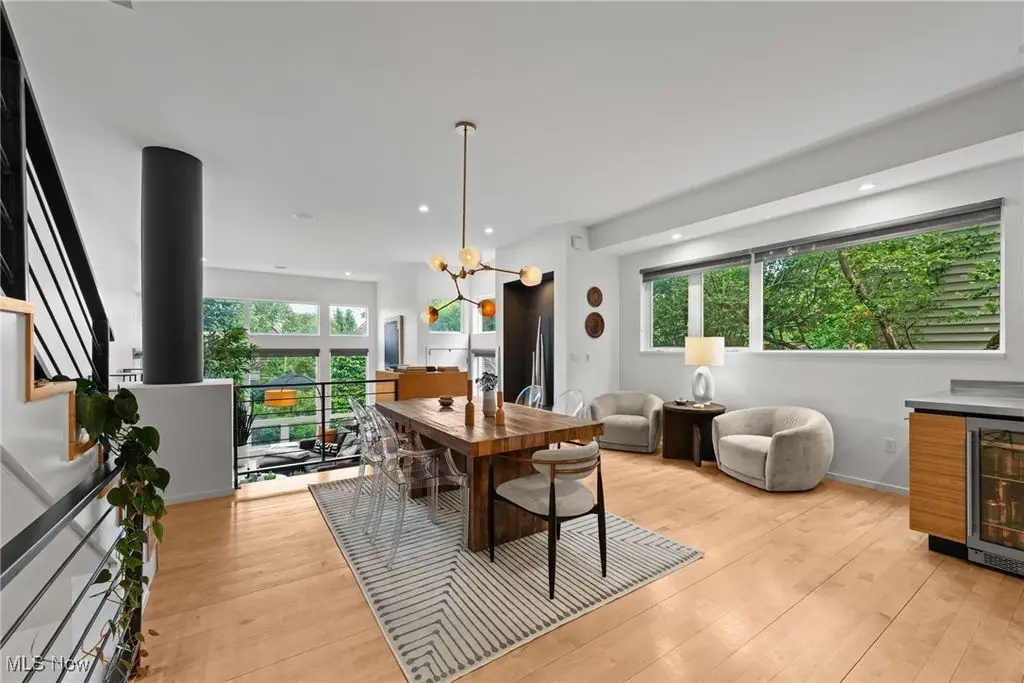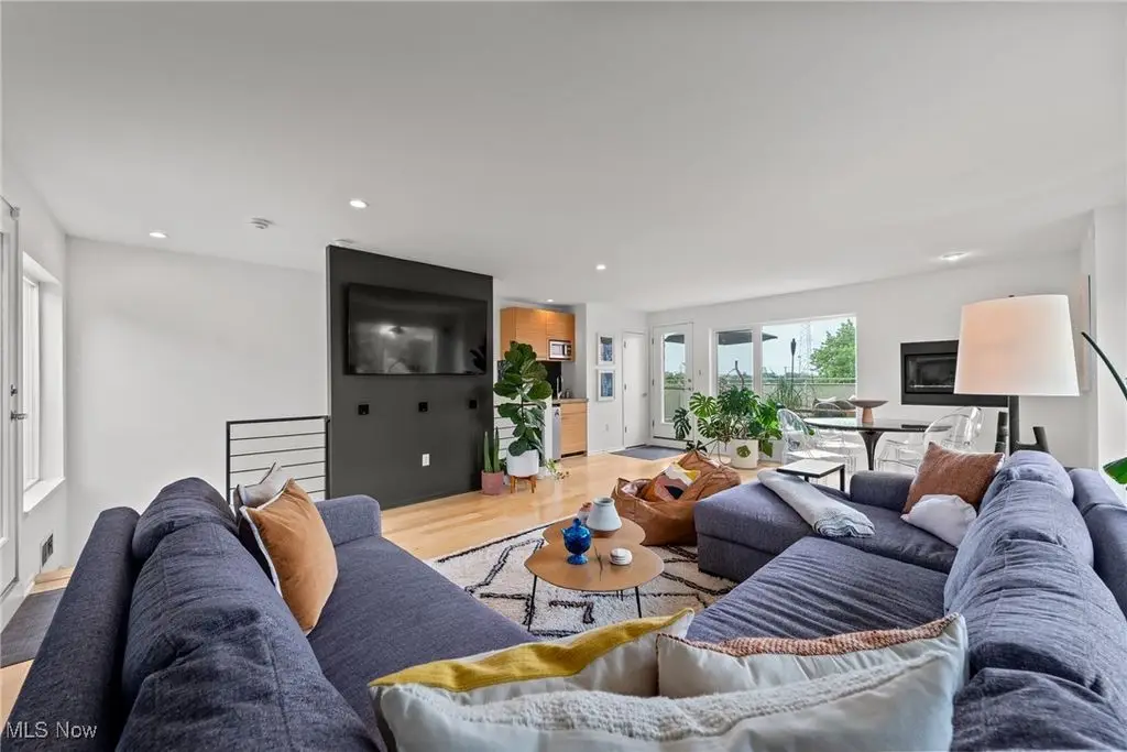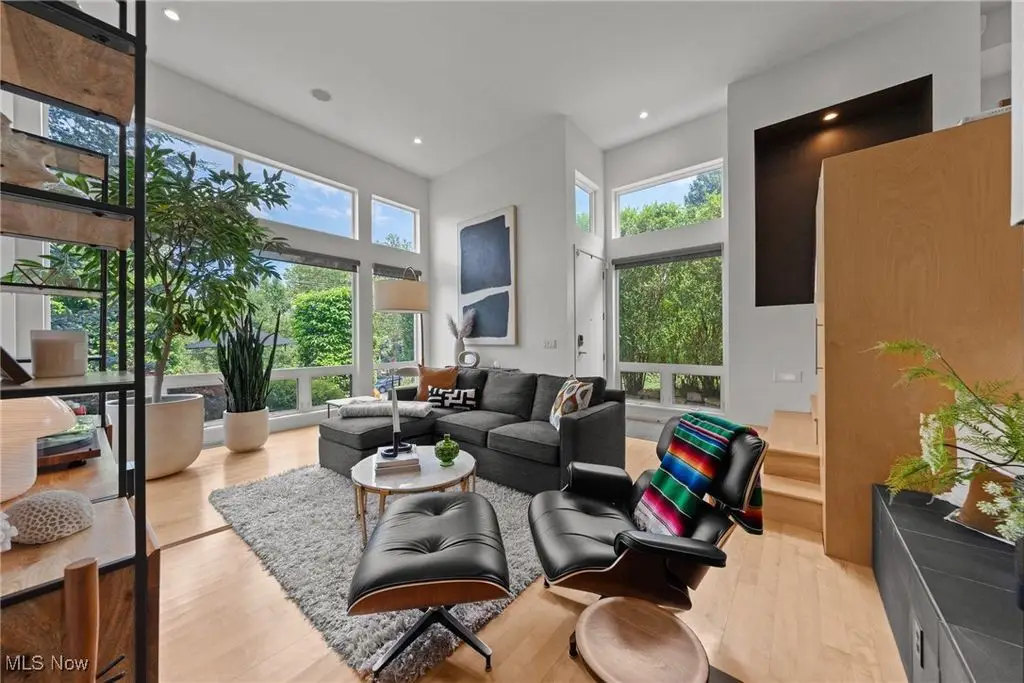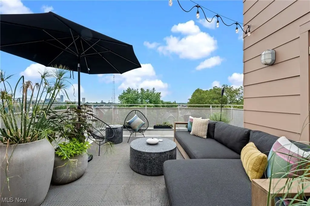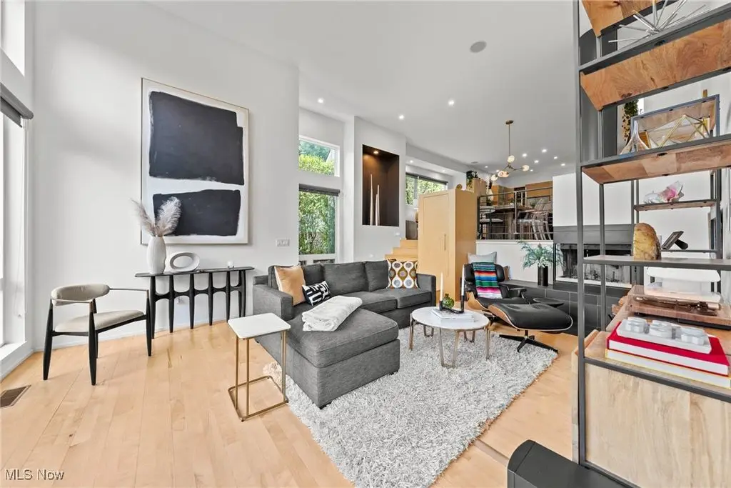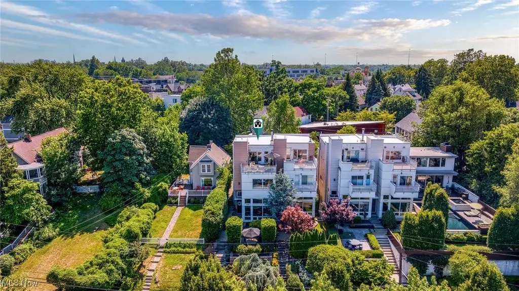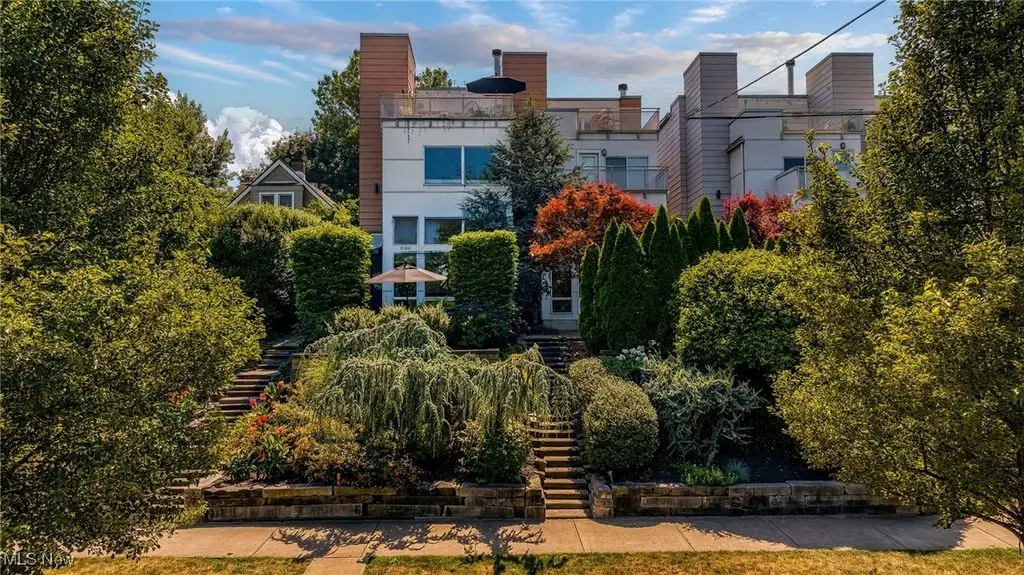 Sited on a knoll in the heart of Tremont, this one of a kind Barry Smith designed four-level townhome is in a class of its own!! Set off the street for maximum privacy, this end unit is surrounded by lush landscaping and has the most incredible outdoor entertainment space. Custom stone steps lead you into the dramatic foyer and sunlit interior! Walls of windows, hardwood floors throughout, and an exceptional design esthetic are evident throughout. The two-story great room has floor to ceiling architectural windows and a handsome wood-burning fireplace. At the heart of this home is the amazing kitchen/dining room area which will make entertaining exciting. Bamboo cabinets, a center-island, custom tile backsplash, pantry, and high end stainless steel appliances are just a few of the outstanding amenities. The bedroom level features two amazing suites each with private bathrooms. The owner's suite is incredibly luxurious, has unobstructed city views, and a spa like bathroom(dual vanities, steam shower, and private commode.) The piece de resistance is the upper level entertainment area which is surrounded in glass, has city views second to none, and the most remarkable rooftop terraces. There is a wet bar with wine refrigerator, surround sound system, and cozy fireplace. On top of all of this there is a finished lower level with an exercise room and private home office. Summers can also be enjoyed in the main level outdoor area which features a fabulous rock garden and stone patio. Added amenities include a private rear entrance garage on the main level, tankless hot water tank, and exceptional storage. Ideally located within steps of your favorite restaurants and the Towpath trail, this one of a kind property is more than just an incredible residence, it's a lifestyle!!
