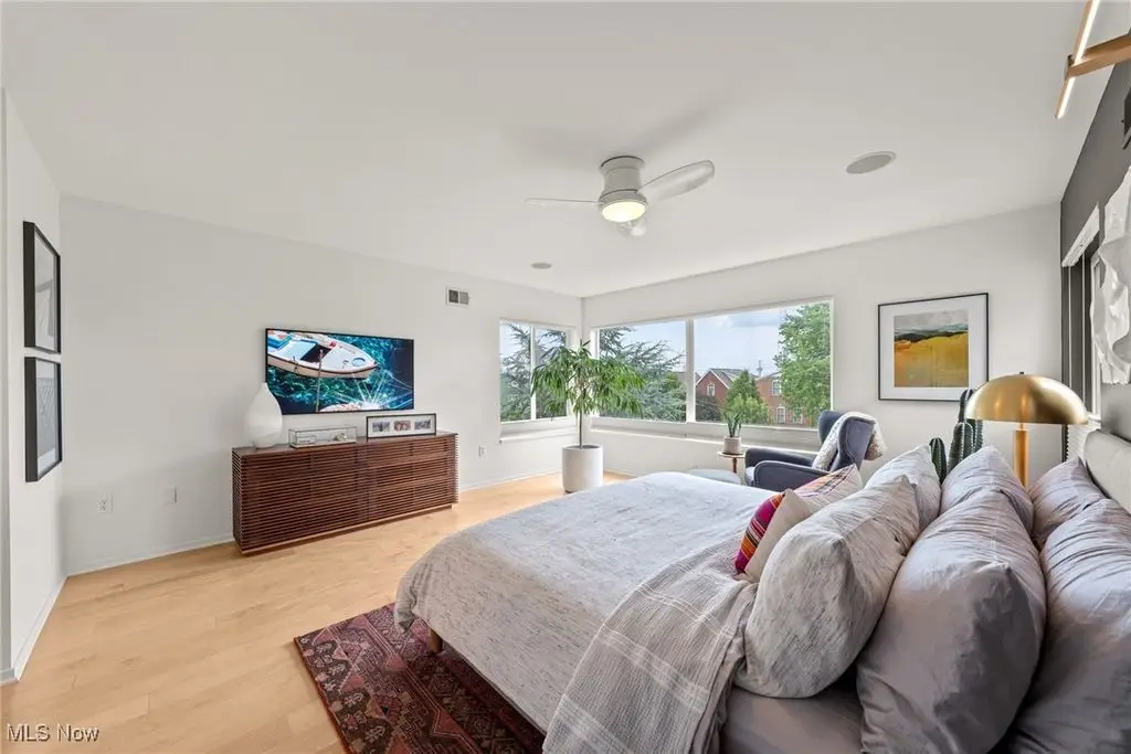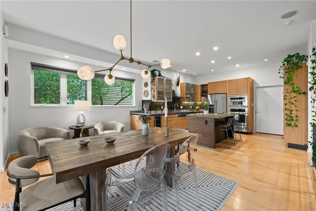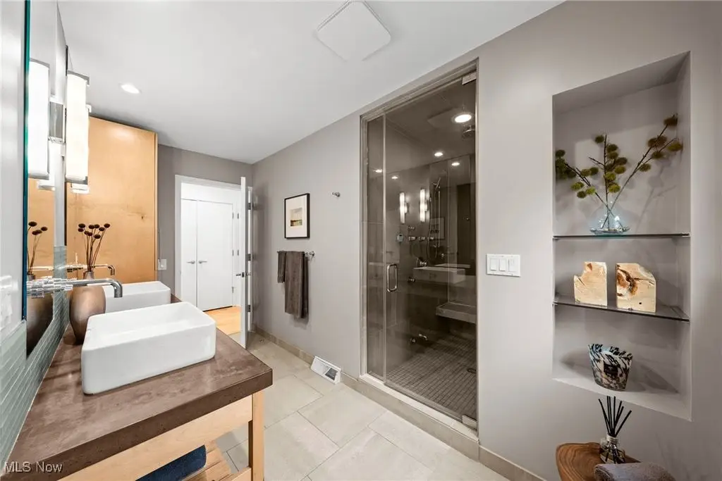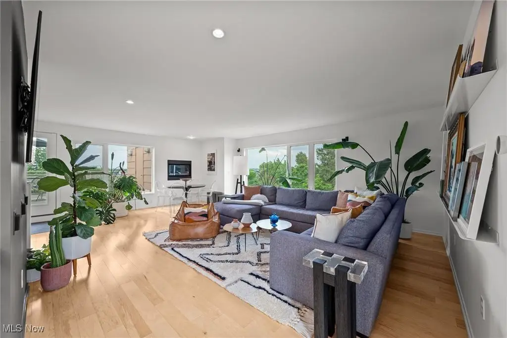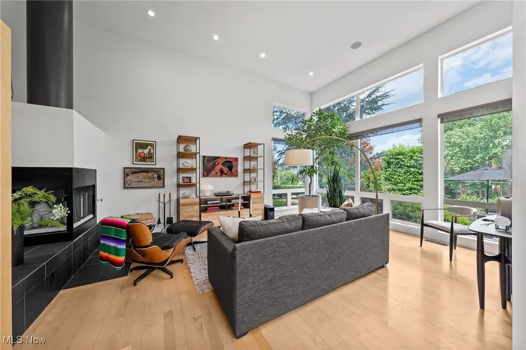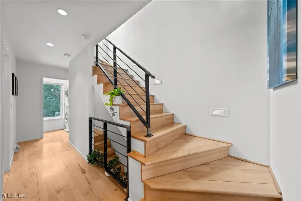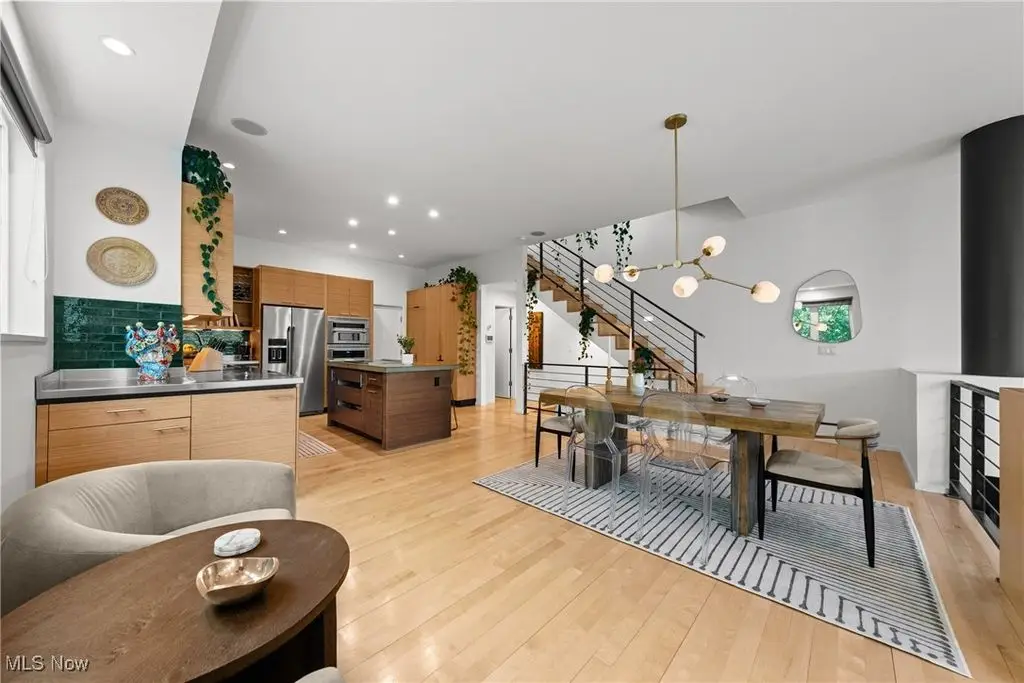Sited on a knoll in the heart of Tremont, this one of a kind Barry Smith designed four-level townhome is in a class of its own!! Set off the street for maximum privacy, this end unit is surrounded by lush landscaping and has the most incredible outdoor entertainment space. Custom stone steps lead you into the dramatic foyer and sunlit interior! Walls of windows, hardwood floors throughout, and an exceptional design esthetic are evident throughout. The two-story great room has floor to ceiling architectural windows and a handsome wood-burning fireplace. At the heart of this home is the amazing kitchen/dining room area which will make entertaining exciting. Bamboo cabinets, a center-island, custom tile backsplash, pantry, and high end stainless steel appliances are just a few of the outstanding amenities. The bedroom level features two amazing suites each with private bathrooms. The owner's suite is incredibly luxurious, has unobstructed city views, and a spa like bathroom(dual vanities, steam shower, and private commode.) The piece de resistance is the upper level entertainment area which is surrounded in glass, has city views second to none, and the most remarkable rooftop terraces. There is a wet bar with wine refrigerator, surround sound system, and cozy fireplace. On top of all of this there is a finished lower level with an exercise room and private home office. Summers can also be enjoyed in the main level outdoor area which features a fabulous rock garden and stone patio. Added amenities include a private rear entrance garage on the main level, tankless hot water tank, and exceptional storage. Ideally located within steps of your favorite restaurants and the Towpath trail, this one of a kind property is more than just an incredible residence, it's a lifestyle!!