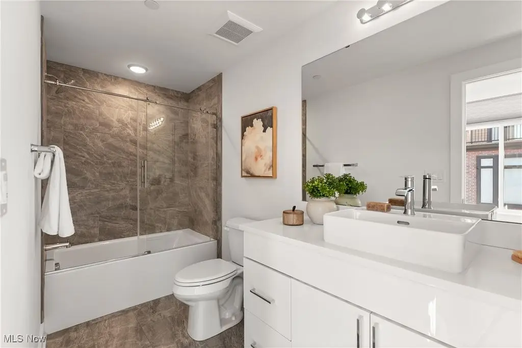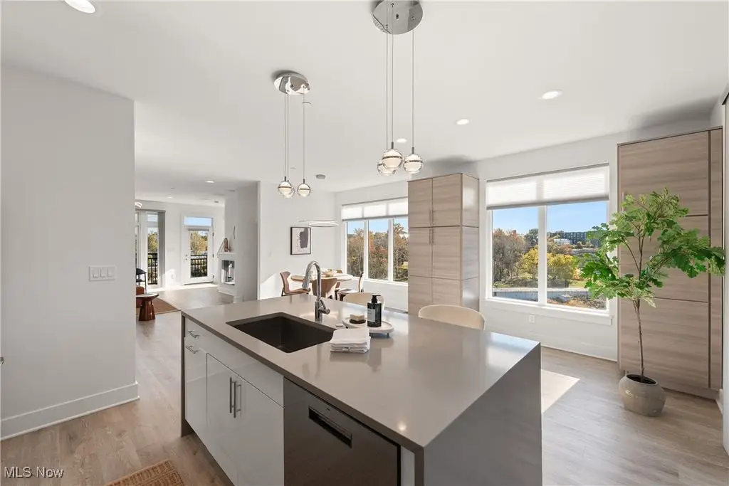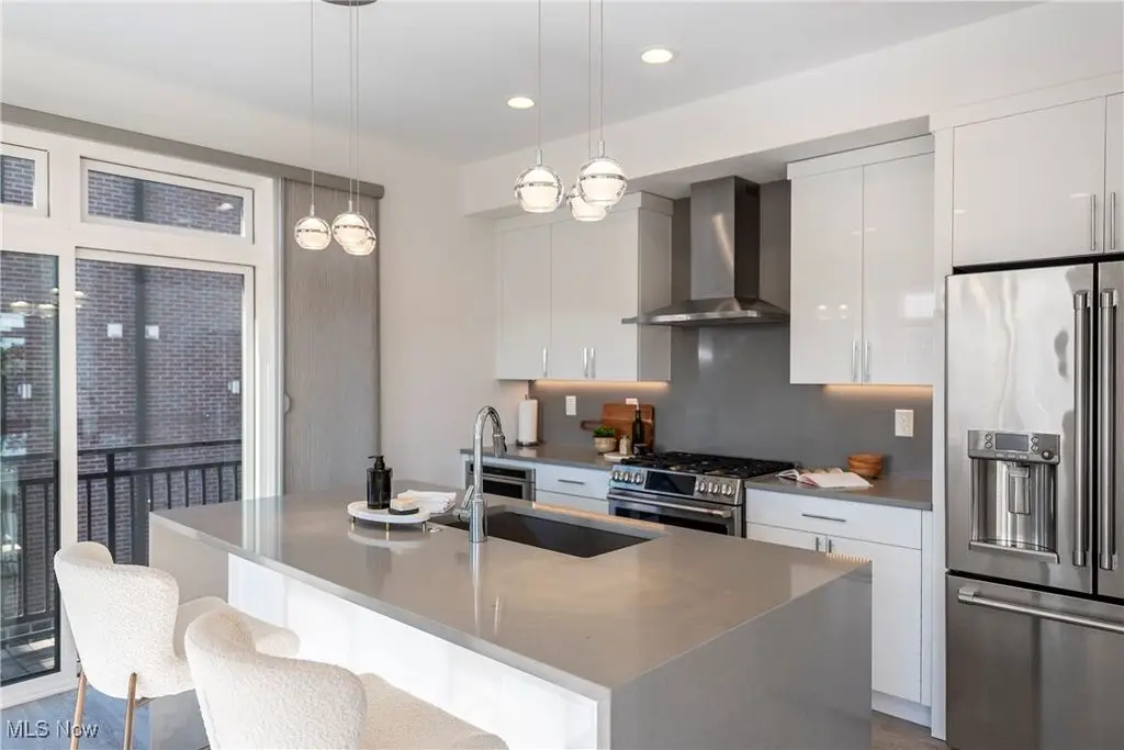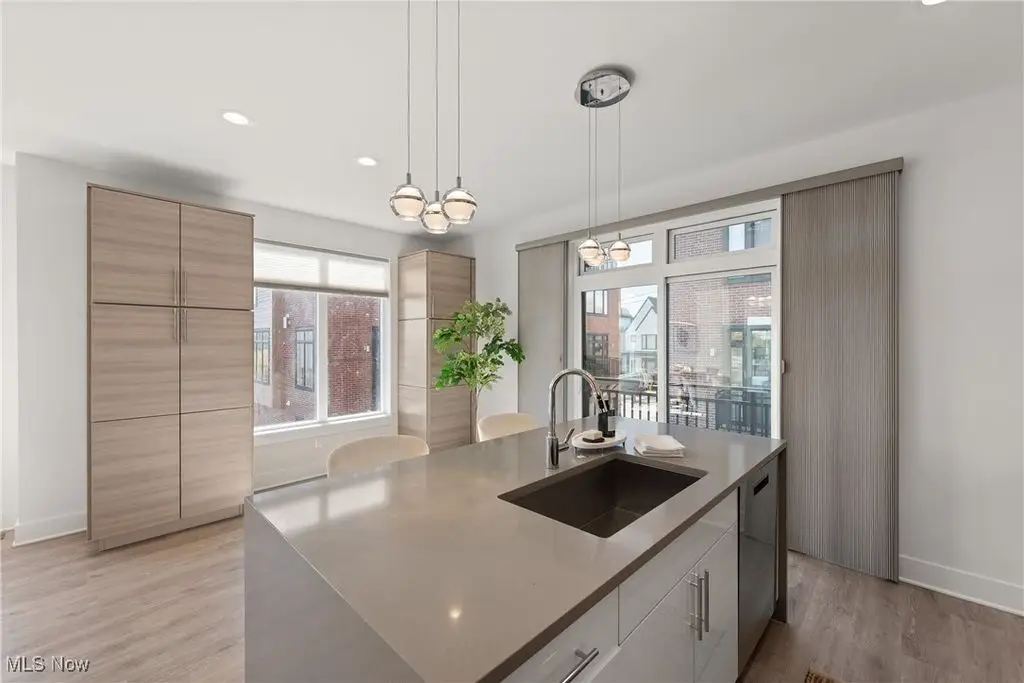 Enjoy modern, thoughtfully designed living in this beautifully maintained Knez-built home on Duck Island. With a 15-year tax abatement (2022–2036), you’ll only pay taxes on the land value—an incredible savings opportunity! Highlights & Features: Kitchen & Bathrooms: Upgraded with quartz countertops, sleek contemporary cabinetry, and expanded pantry storage. Garage & First Level: Enter through the garage featuring custom cabinetry, bike rack, specialty flooring, and a versatile office or guest suite with full en-suite bath and custom closet. Walk-Out Basement: Half bath, direct patio access, gym-ready with two large wall-mounted mirrors—perfect for workouts or relaxation. Main Living Level: Open-concept layout with electric fireplace, built-in sound system, half bath, and two balconies for seamless indoor-outdoor living. Bedroom Level: Two spacious bedrooms with en-suite baths, custom closets, and convenient laundry access. Top Entertainment Floor: Herringbone LVT flooring, bar with sink and wine fridge, surround sound, and two additional balconies—ideal for gatherings or relaxing above it all. Additional Features: Light-filled interiors, premium window treatments, and meticulous upgrades throughout. Don’t miss this rare Duck Island opportunity—schedule your private showing today!