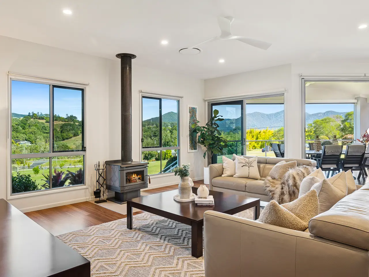 There's modern family style and natural light in abundance throughout this spacious home delivering a great lifestyle on a picturesque 5-acre block. Flowing interiors are enhanced by extensive mountain views and a user-friendly architectural design that showcases an outstanding indoor-outdoor entertainers' environment. The generous multi-level layout takes full advantage of the aspect and the scenic surrounds. The flowing interiors are perfect for active families with a large open design that leads seamlessly to the outdoors, along with a home theatre/media room. A big highlight of this fantastic home is a covered alfresco deck and separate paved dining patio overlooking an inground saltwater pool. There are also well-maintained gardens with numerous established fruit trees, a downstairs rumpus room with kitchenette and bathroom, plus a double lock-up garage, three-bay shed and a kids' cubby house. This exceptional acreage package offers a modern family residence and gorgeous scenery, with lush green views to the mountains. It's perfect for the entire family and well-located in a whisper-quiet setting just five minutes to Samford Village and an easy 35-minute commute to Brisbane CBD. Property highlights: - Modern family home on a scenic and fully usable 5-acre block - Freshly painted, new carpets, repolished floors, new lighting and fans - Set up high and capturing elevated views to the mountain ranges - Flowing interiors feature three bedrooms plus a study/fourth bed - Stone island kitchen includes Miele dishwasher and Ilve upright stove - Light-filled open plan living space plus a home theatre/media room - Sheltered entertainment patio, saltwater pool and covered alfresco deck - Double garage, separate three-bay shed with carport and kids' cubby house - Landscaped gardens, rolling level grounds and established fruit trees - Ducted air-conditioning & vacuum, solar panels and excellent security - Located just five minutes from Samford Village cafes, schools and shops Whilst all care has been taken to ensure accuracy, the Selling agents confirm that they cannot guarantee accuracy of the same and accept no liability (express or implied) in the event that any information contained in the document or provided within is inaccurate. The Seller and Selling agent make no representation and give no warranty that the information provided is accurate. Parties must ensure they make their own due diligence enquiries to satisfy themselves about the accuracy of the information. This information provided is indicative only and must not be relied upon unless confirmed by a party through their own due diligence.
