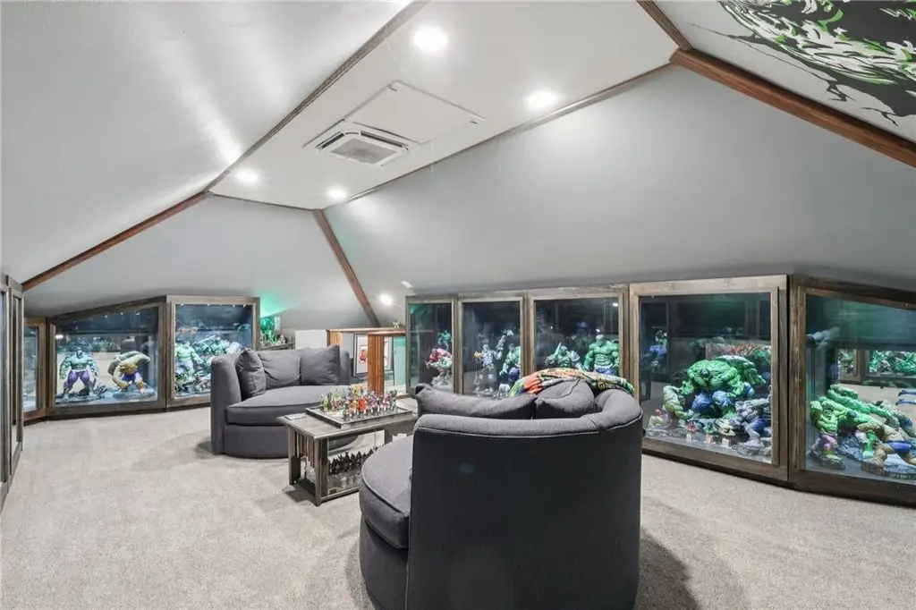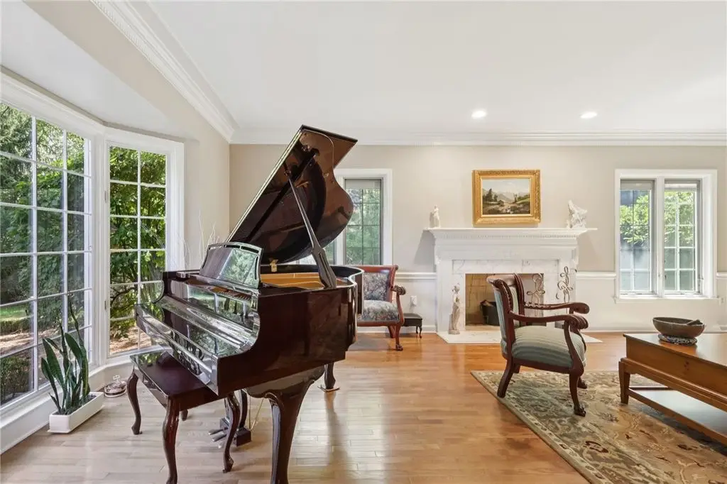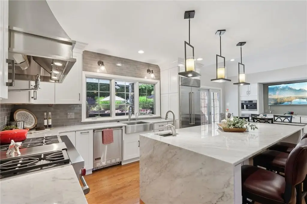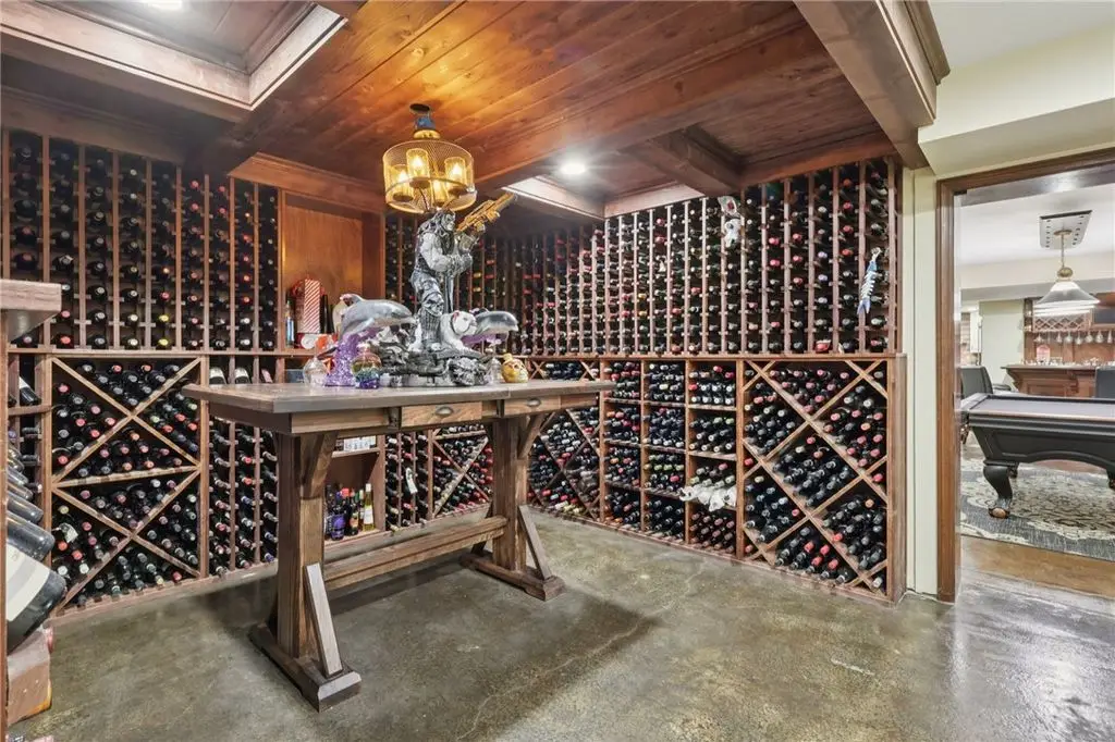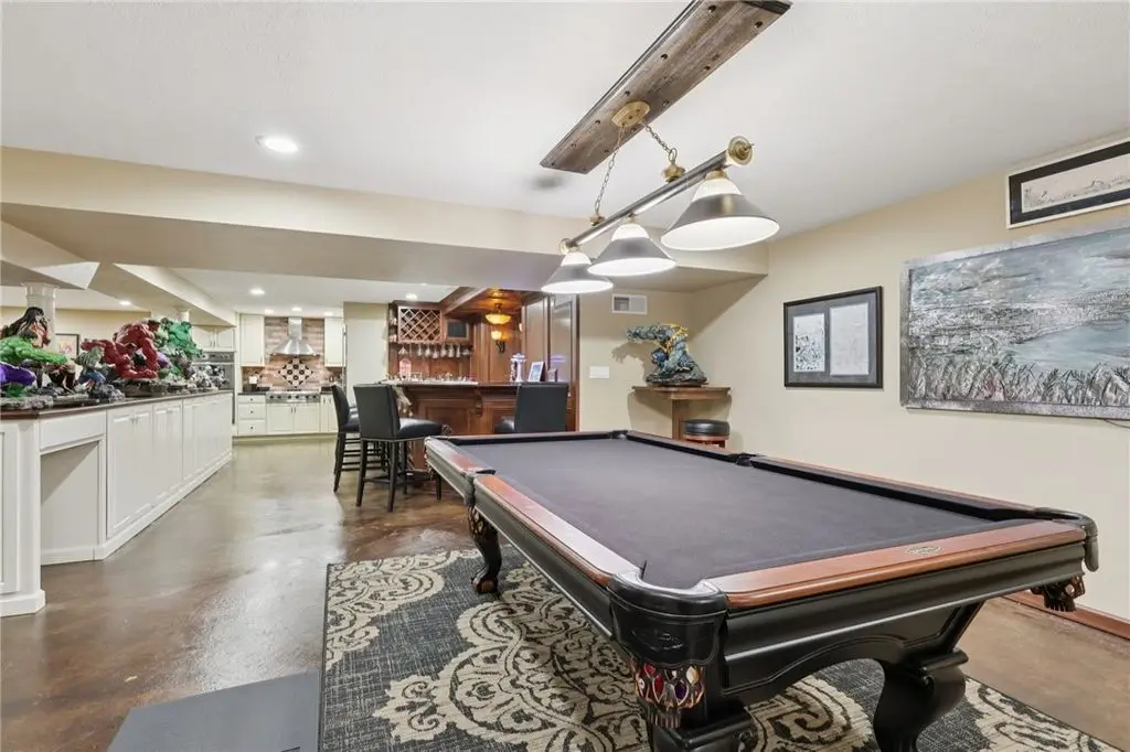 Luxury Living! Spectacular Estate on private road w/1.5acre professionally landscaped grounds. Grand foyer w/leaded glass door, grand staircase,& chandelier. Formal living & dining rooms w/exquisite details fireplace, bay window, hardwood flooring,& built-ins. Executive office w/wood-paneled walls, fireplace, custom cabinetry,& wet bar. Chef's dream kitchen w/Wolfe & Viking appliances, large island w/seating, Miele coffee bar, sliding glass doors to stunning outdoor retreat. Entertain in style w/rear patio w/full outdoor kitchen, woodfired pizza oven, inground pool, multiple seating areas,& tranquil pond w/waterfall. Luxurious owner's suite w/French doors, spa-bath w/soaking tub overlooking pool, oversized shower w/jets, double vanities,& walk-in closet. Updated bath, laundry, & balcony w/lounging area & spiral staircase to pool. Lower level is entertainer's dream w/wine room, full 2nd kitchen, wet bar, built-in seating, game area, media lounge, gym/5th bedroom, & full bath. WOW!