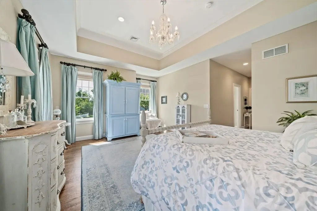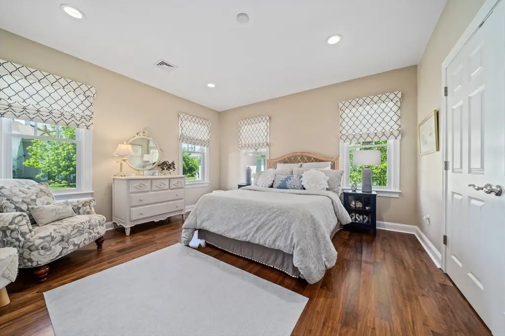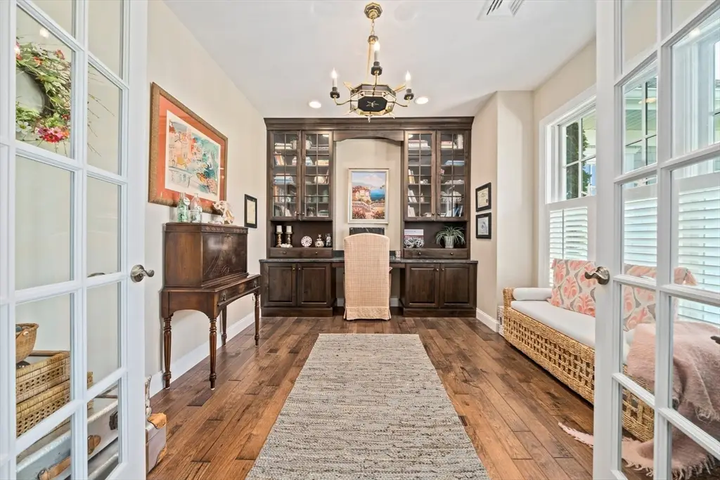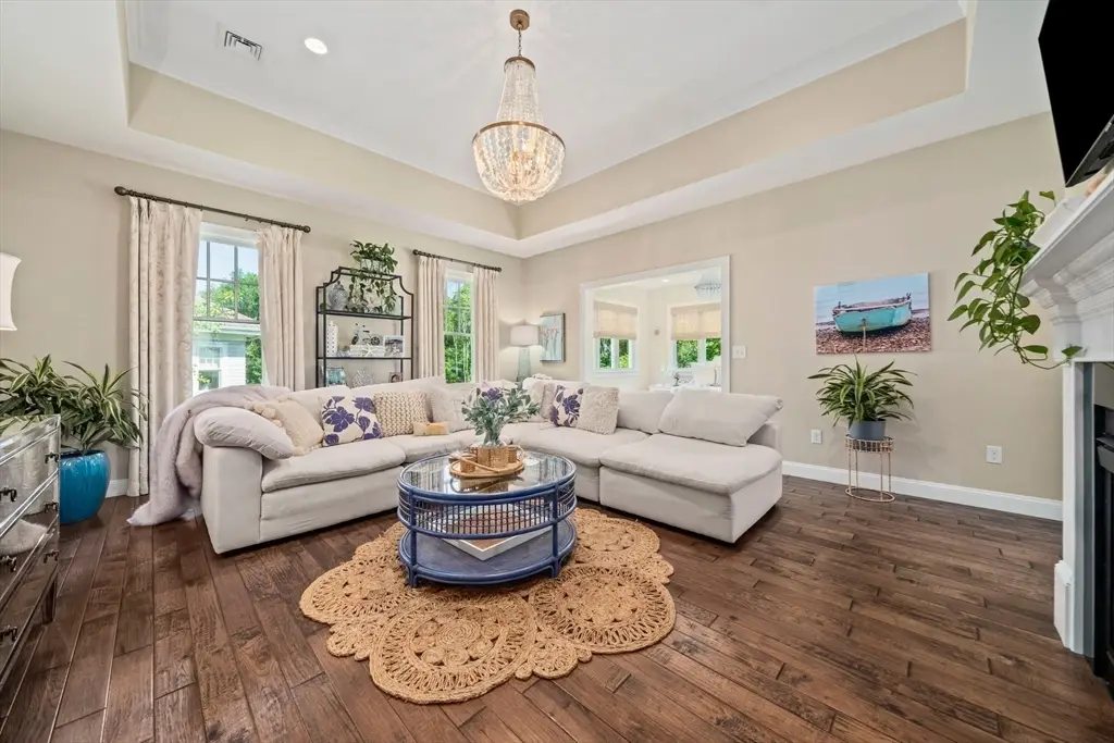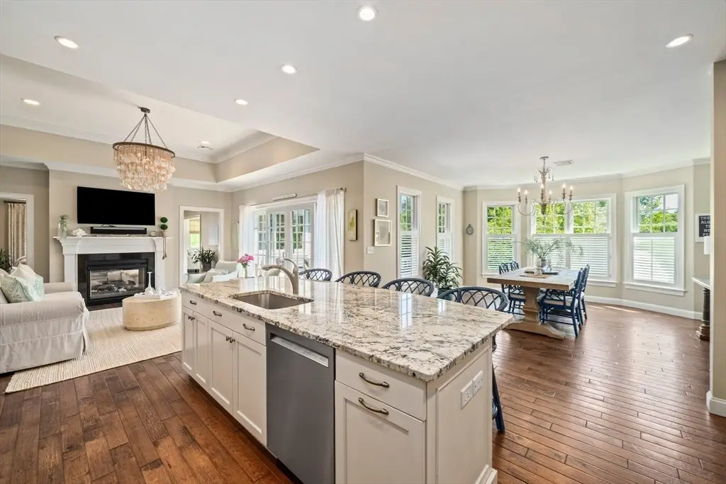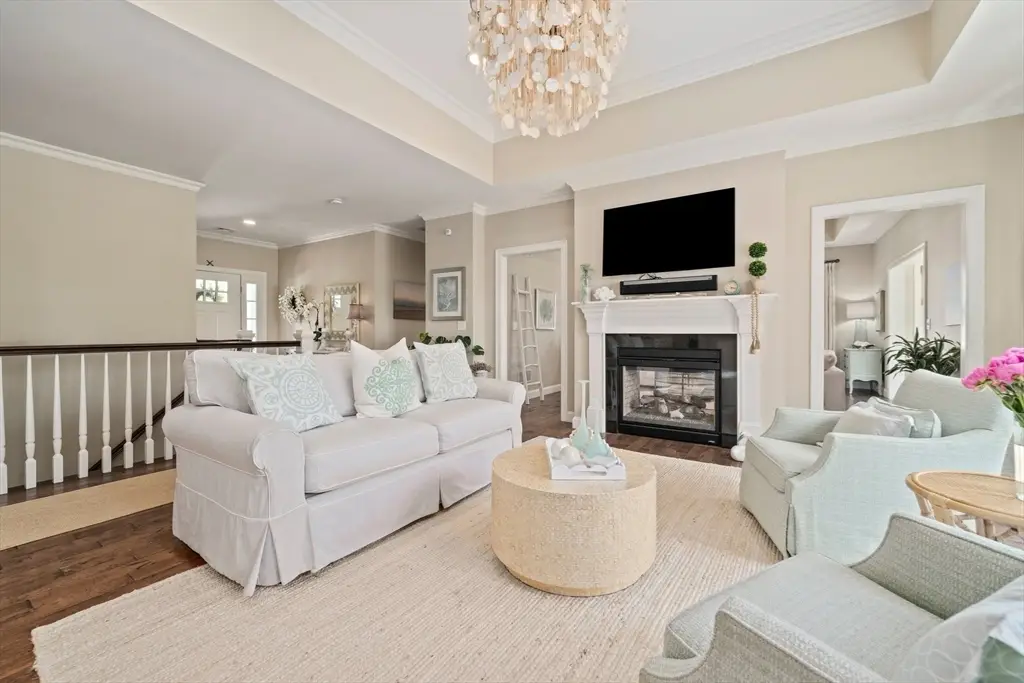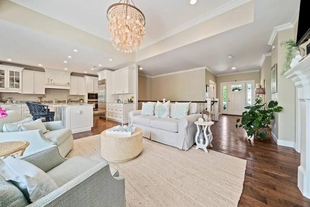 Welcome to Cook Estates, where luxury coastal living meets unparalleled flexibility. This 4,823-square-foot Lindsay-style stand-alone condo is your gateway to the ultimate New England lifestyle. Situated just over a mile from Cohasset village with exclusive Sandy Beach access, this property offers peaceful seclusion plus great accessibility with access to Boston via ferry and Greenbush train in under an hour. The open floor plan, centered around a cozy see-through fireplace, is flooded with natural light while the four-season sunroom and two outdoor spaces create endless entertaining possibilities. Two spacious en-suite bedrooms complete the main level for seamless first floor living. The sunlight-filled ground level walkout features its own private patio and includes a private bedroom with en-suite bathroom, dedicated office and home gym, media room and half bath, plus kitchenette bar area. This high-end, move-in ready home offers maintenance free luxury in a private coastal setting.
