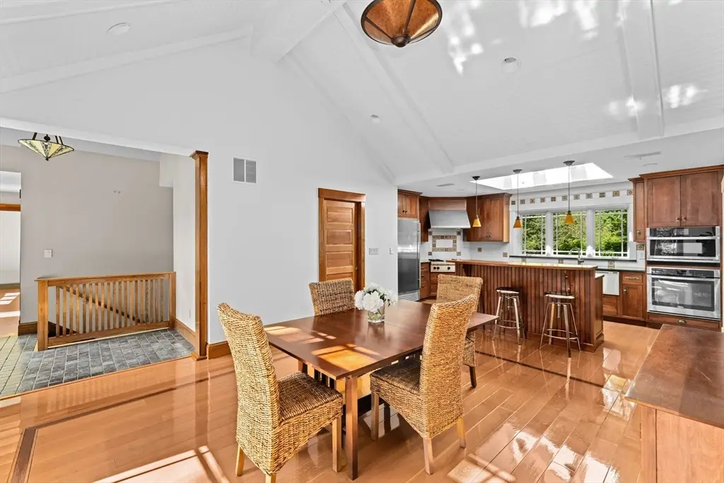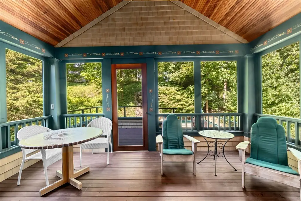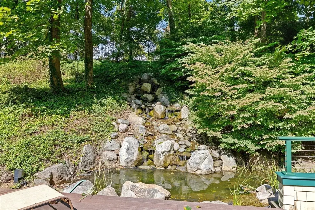 Nestled on an enclave of 4 homes in a sought-after location between Cohasset Village and Sandy Beach, this lovely four-bedroom home combines Vermont-like charm with the ease of one story coastal living. The open floor plan features a chef's kitchen with walk-in pantry, a dining area, and a sunlit living room with soaring ceilings and a dramatic stone fireplace. The first-floor primary suite includes a spacious walk-in closet and full bath, while a second bedroom and bath open directly to the backyard. The walk-out lower level offers two additional bedrooms, a full bath, and a flexible living space. A screened-in porch with a gas fireplace overlooks the tranquil backyard, complete with a deck, waterfall feature, and a large side yard. With a one-car garage and an sought after location close to the village, beaches, and commuter rail to Boston, this home is a serene retreat in the heart of Cohasset.