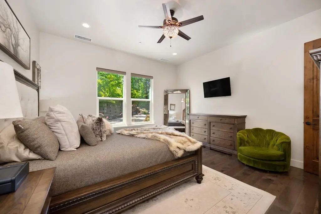 2 Homes with separate driveways! This exceptional property features a custom-built 2016 main home (approx. 2,784 sq. ft.) with 3 bedrooms + den + game room and 2.5 baths. Thoughtfully designed, it lives like a single-level with two bedrooms and a bath upstairs. The attached oversized garage and massive 16'x70' RV garage provides ample storage. Inside, hickory floors, a chef's kitchen with Thermador appliances, granite counters, and custom cabinetry set the stage for elegant living. The primary suite offers outdoor access, a large walk-in closet, dual sinks, and a luxurious shower. Outdoor amenities include a sparkling pool with a waterfall, a spa, a covered patio plumbed for an outdoor kitchen, and a gas fire pit. A whole-house generator ensures peace of mind. The second home (approx. 1,000 sq. ft., built in 2004) offers 2 beds, 2 baths, a 1,000 sq. ft. garage, and a separate driveway, PG&E meter, and septic-ideal for multi-generational living or rental income. Conveniently located 5 minutes from I-80, this private foothill retreat is a must-see! Schedule your private tour today!