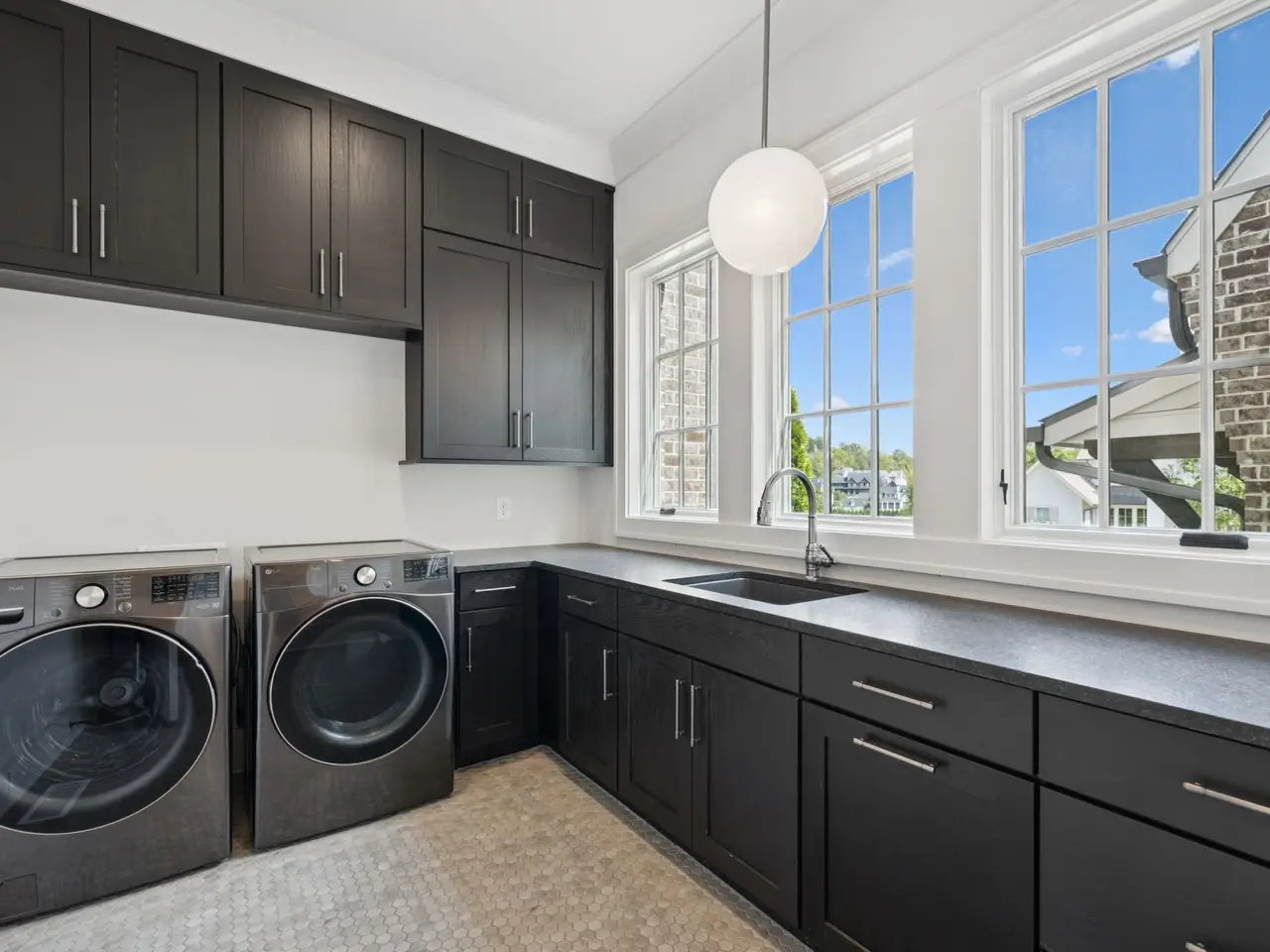 Gorgeous modern Tudor-style brick home in The Grove, one of Middle Tennessee's most sought-after gated communities. Offering resort-style living, residents enjoy a world-class spa, clubhouse, Greg Norman Signature golf course, fishing lakes, fine and casual dining, racquet courts, equestrian facilities, sports fields, walking trails, and multiple pools. Step inside to a welcoming foyer that leads to a private office with custom built-ins and wainscoting, accented by designer lighting. A stylish wet bar with paneled Thermador wine fridges and an ice maker sets the stage for effortless entertaining. The open-concept living room is anchored by a brick fireplace with custom cabinetry, flowing seamlessly into a chef's kitchen with custom-panel appliances, pull-out cabinet drawers, and a sink equipped with filtered water and instant hot water. A generous pantry with open shelving and cabinetry provides both storage and prep space. The vaulted primary suite is a retreat with shiplap accents, a spa-like bath featuring a soaking tub, a floor-to-ceiling tile shower, checkered tile flooring, and a walk-in closet with center vanity. A guest suite with private bath and powder room complete the main level. Upstairs, a vaulted rec room with surround sound and fireplace opens to a screened porch--perfect for game nights or relaxed evenings. Enjoy Tennessee living year-round with a peaceful backyard featuring a screened porch with wood-burning fireplace, built-in gas grill, and patio with room for a future pool. Additional highlights include custom draperies, a sealed crawl space, and convenient access just two minutes from the back gate. Blending timeless design with modern luxury, this home offers both elegance and comfort in a community where every day feels like a getaway.