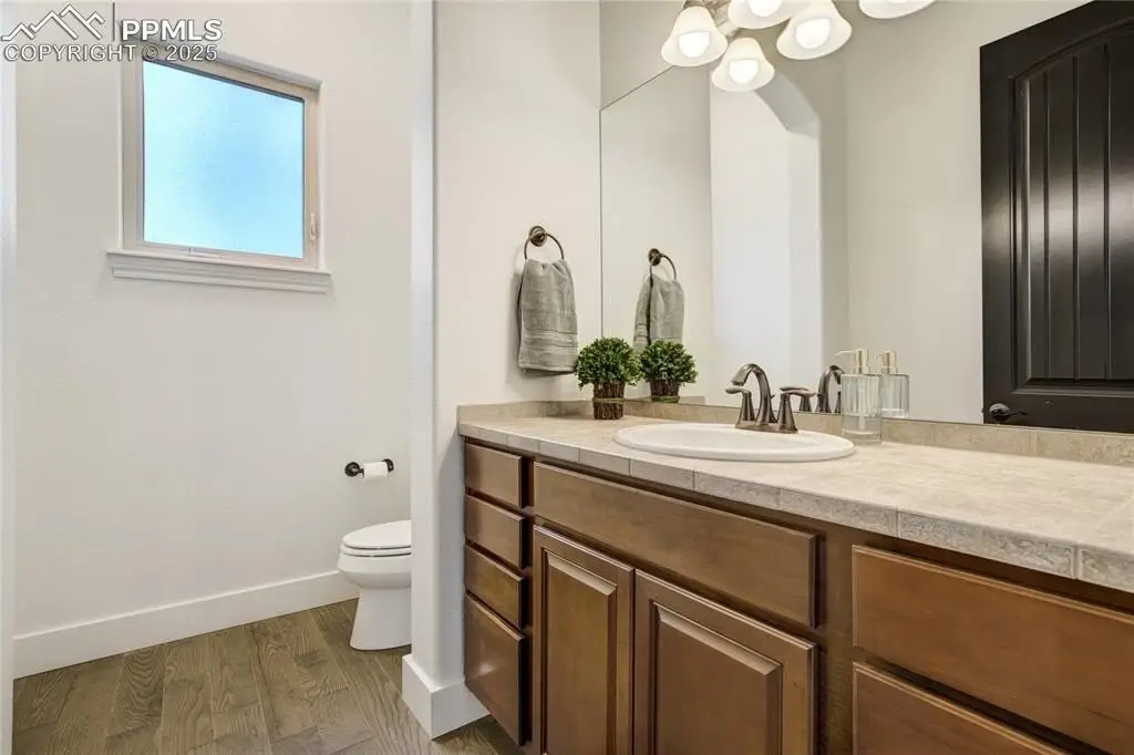 Incredible Opportunity in Cordera with Unmatched Views! This completely updated Saddletree ranch-style home is a rare gem—boasting breathtaking, unobstructed views of Pikes Peak with no rear neighbors and perfectly situated on a beautifully landscaped corner lot! From the moment you enter, you'll appreciate the bright, open layout, high-end finishes, and thoughtful design throughout. The main level features newly installed wood flooring, a stunning gourmet kitchen with premium finishes, and a spacious great room and dining area that flow seamlessly to the covered patio with an outdoor fireplace—perfect for enjoying Colorado sunsets. A versatile main-level bedroom/office and a luxurious primary suite with a cozy fireplace, expansive walk-in closet, and attached laundry room complete the main floor. The finished lower level offers a massive rec and game room with new carpet, three additional spacious bedrooms, two full bathrooms and generous storage space. Additional highlights include recent elastomeric stucco coating, custom built-ins in the oversized garage, EV charger, central A/C and professionally designed landscaping all within walking distance to schools and the incredible Cordera community amenities. This is Colorado living at its finest—homes like this don’t come along often. Schedule your private showing today!