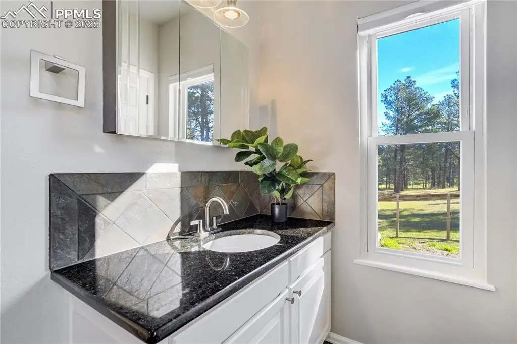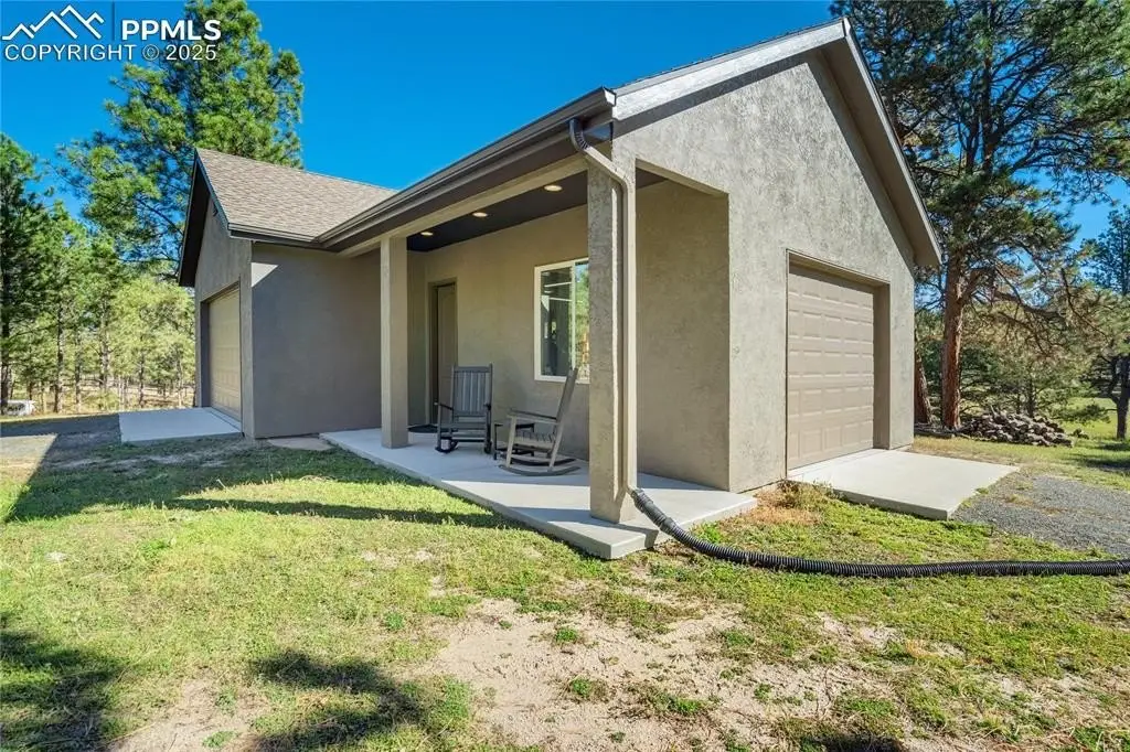 Elevated Living | Serenity Among the Pines—Where timeless design, natural beauty, and peaceful living converge. Nestled on a private, 5-acre treed corner lot zoned for horses, this beautifully crafted home offers the perfect blend of elegance, warmth + functionality. Thoughtfully updated, it balances classic architecture with modern comforts + an effortless connection to its serene natural setting. The main lvl welcomes you w/hardwood floors, soaring vaulted ceilings + abundant light that enhances the open flow. The formal living room features a bay-window seat overlooking the wooded landscape + a cozy gas fireplace, while the adjacent dining room is ideal for festive gatherings. The great room impresses w/a dramatic floor-to-ceiling stone wood-burning fireplace + opens to the gourmet kitchen—showcasing white cabinetry, Silestone countertops, a large island w/seating, walk-in pantry + stainless-steel appliances including double ovens, a 5-burner gas cooktop + exterior-vented hood. The expansive main-level owner’s suite is a peaceful retreat offering 2 walk-in closets w/custom built-ins + a luxurious 5-piece ensuite complete w/heated tile floors, dual granite vanities, soaking tub + walk-in shower—plus private walk-out access to the patio + hot tub. Upstairs, a Jr Suite w/a private composite deck & ensuite bath provides flexibility, along with 3 additional bedrooms + an updated full bath. The finished walk-out basement offers ample storage + is pre-plumbed for a future pellet/wood stove + wet bar. Add Highlights: New Class IV roof (2023), Boiler (2025), Carpet + Interior Paint (2025) + updated lighting. Outdoor living shines w/greenhouse, loafing shed, chicken coops + 6 car garage. With no HOA + minimal covenants, enjoy the freedom of country living just minutes from the Pineries Open Space—where trails for hiking, biking, and horseback riding await. Award-winning D20 schools and an easy commute to both Colorado Springs + Denver complete this one-of-a-kind retreat.