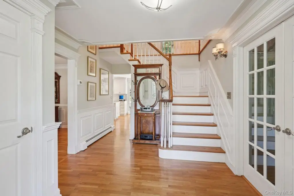 Don't miss the chance to own this exceptional home in one of Clarkstown's most coveted neighborhoods! Step into timeless elegance in the highly sought-after Waters Edge community with this classic center-hall colonial, perfectly set on a beautifully landscaped, picturesque lot. Built in 1990 and lovingly maintained ever since, this residence blends space, style, and comfort in every detail. Offering 2,928 square feet of thoughtfully designed living space, this home is ideal for both relaxed everyday living and joyful entertaining. The inviting lemonade porch is the perfect spot for peaceful afternoons, while the oversized, sun-drenched eat-in kitchen featuring a large center island flows seamlessly to the expansive, serene backyard and large Trex deck, perfect for outdoor dining and gatherings. Just off the kitchen, a step-down den with a cozy fireplace sets the scene for intimate evenings, while the sun-filled living room with its decorative fireplace offers a warm and welcoming place to unwind. The spacious dining room, adorned with crown molding, is ready to host your most memorable celebrations. A full basement with a wet bar provides endless possibilities for entertainment and recreation. Every room reflects pride of ownership and features high-end finishes that enhance the home's inviting character. (Additional photos coming soon!)