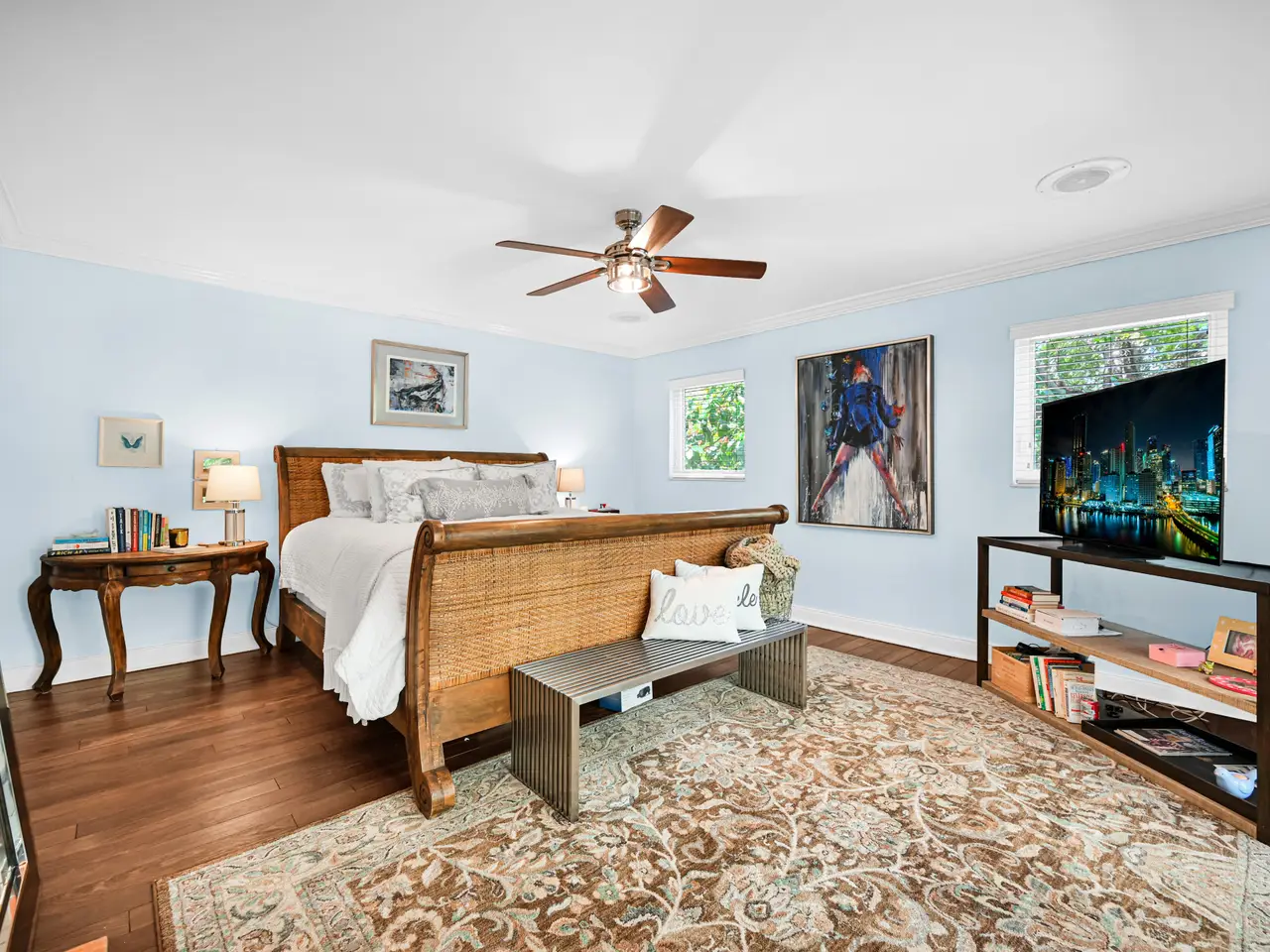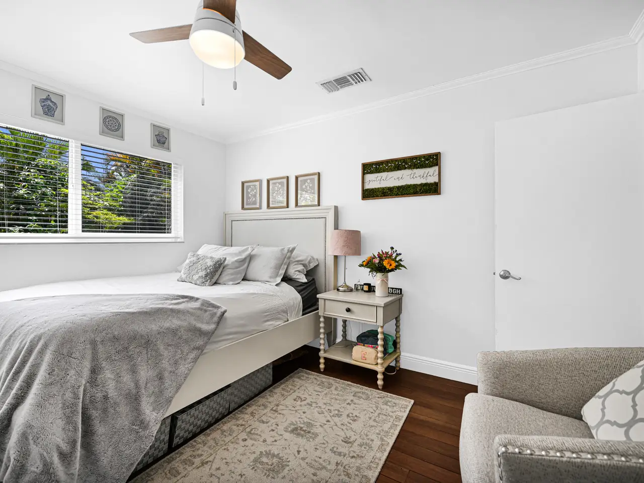 Located on a lush, tree-lined corner lot in Coral Gables, this beautifully updated mid-century modern home offers a perfect blend of timeless design and everyday comfort. A double-height entry and floating staircase set the tone for light-filled interiors with warm wood floors, crown molding, and plantation shutters. The home features formal and casual living spaces ideal for entertaining. The upstairs suite includes a private balcony and a spa-inspired bath, while the additional bedrooms provide ample space for family, guests, or home offices. Portion of the garage has been converted into a fifth bedroom, perfect for use as maid or in-laws quarters. Just minutes from top-rated schools, parks, and the best of Downtown Coral Gables, this elegant residence offers style, space, and privacy.