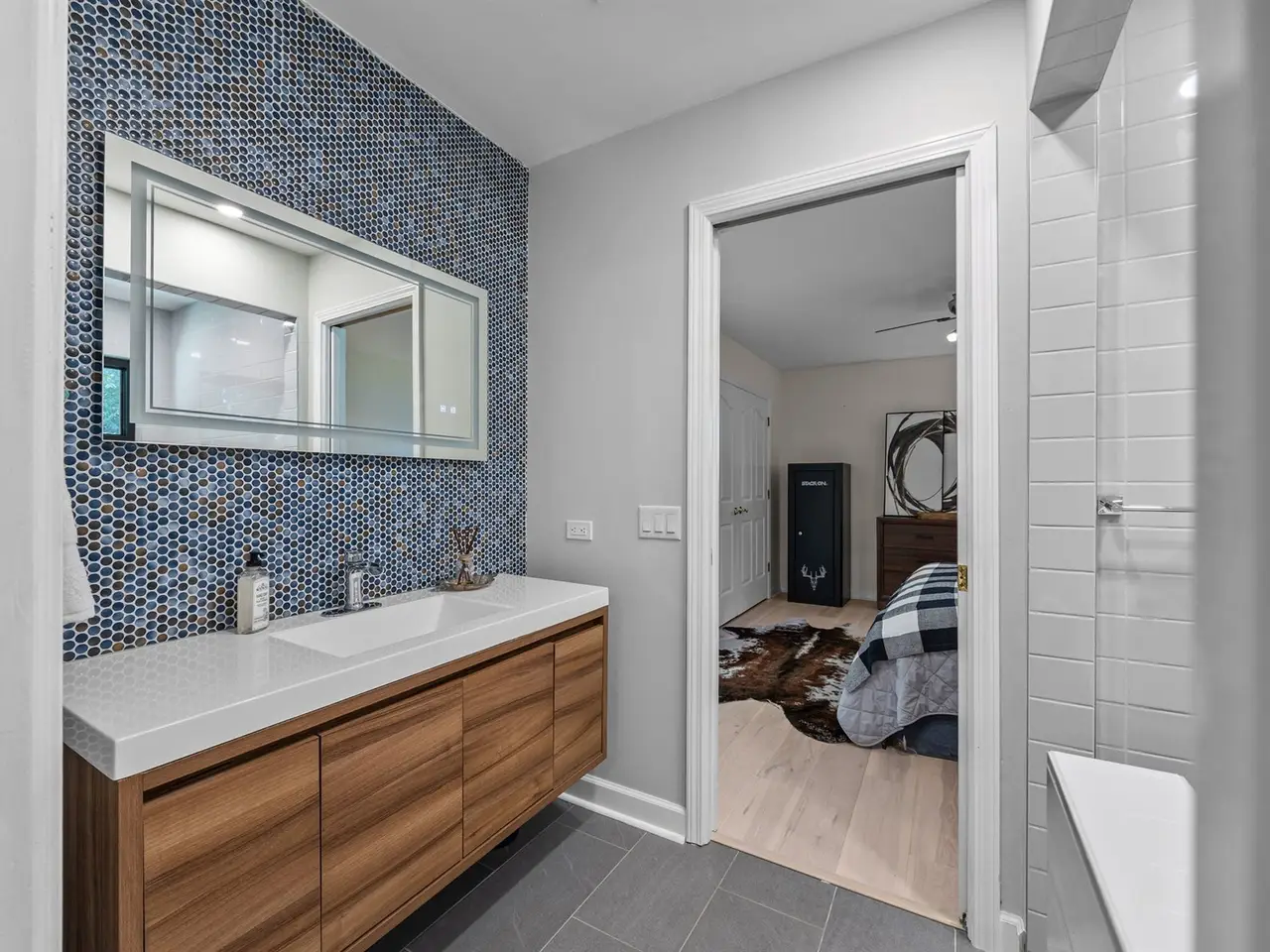 Seamless indoor-outdoor living with primary suite opening to entertainment area