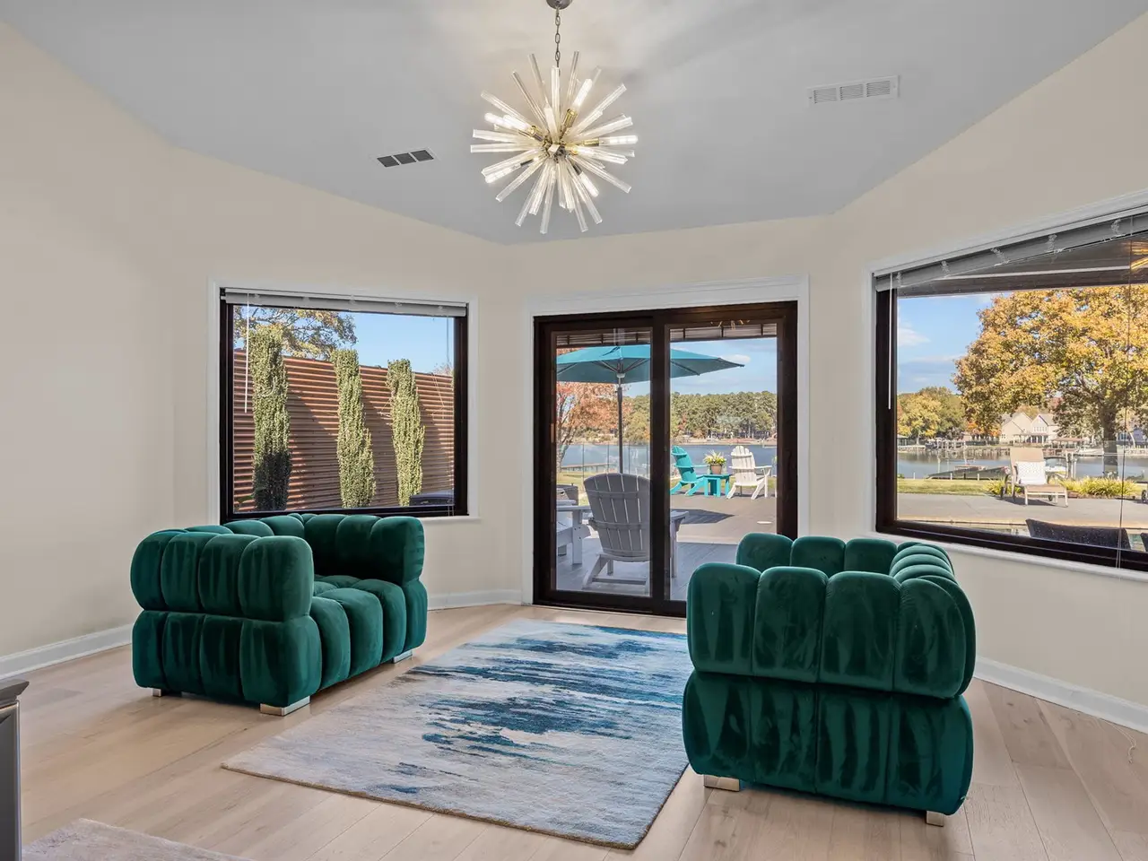 Welcome to 21400 Bethel Church where architectural elegance meets lakeside luxury. This one-of-a-kind four-bedroom custom-built ranch home, inspired by the timeless principles of Frank Lloyd Wright, showcases clean lines, soaring ceilings, and abundant natural light throughout. Designed for both comfort and entertaining, the open-concept layout centers around a private outdoor oasis featuring a sparkling pool and hot tub, wet bar, and panoramic lake views from nearly every room. Situated on a flat, meticulously landscaped one-acre lot - one of the most coveted parcels on Lake Norman - this property offers uninterrupted main channel vistas from its private cove location at the end of the Bethel Church Road peninsula. Enjoy deep water access from your private dock with boat and jet ski lifts, ideal for weekend adventures or peaceful sunset cruises. The spacious, accessible floor plan includes extra-wide hallways and doorways, with a primary suite that opens directly to the outdoor entertainment area for seamless indoor-outdoor living. Additional highlights include an expansive circular driveway, three-car garage, established lakeside garden with a built-in firepit, and a quiet, well-established neighborhood offering privacy and tranquility. A rare blend of architectural sophistication, functional design, and premier lakefront living - experience the lifestyle that awaits at 21400 Bethel Church.