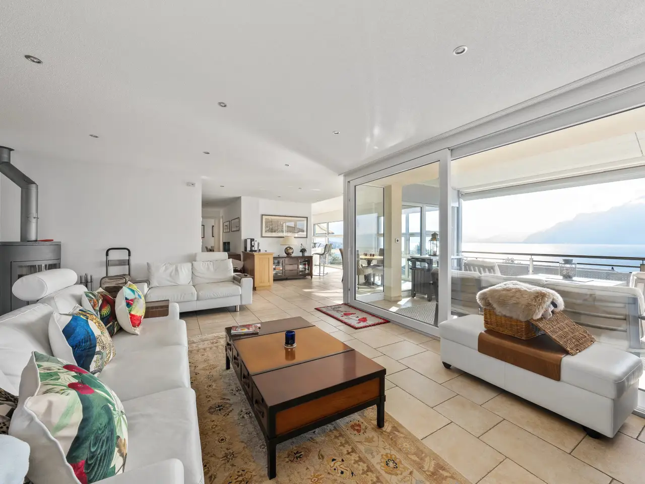 In a residence of just three units, majestically overlooking Lake Geneva, this exceptional property offers an idyllic living environment in the heart of a peaceful residential area, yet within easy reach of the Riviera's economic and cultural centers. This spacious 325 m² luxury apartment boasts breathtaking panoramic views, visible from every room. It features a large, bright living room with wood-burning stove, a pleasant dining area with direct access to a large 18 m² covered balcony, and a semi-open, fully-equipped kitchen. The same level also houses a guest toilet, a bedroom with en suite bathroom, a laundry room, and a second covered balcony of over 14 m², ideal for enjoying the outdoors in any season. The first floor, accessible by elevator, houses an elegant master suite with shower room, dressing room and storage space, as well as a generous second bedroom of 25 m². The impressively spacious attic features two large attic rooms, one with a dressing room. A central shower room and sauna complete this space dedicated to relaxation. An 80 m² garage with space for up to four vehicles (extra charge), a cellar and an air-conditioned wine cellar round off the top-of-the-range features of this unique property. The property is currently rented.