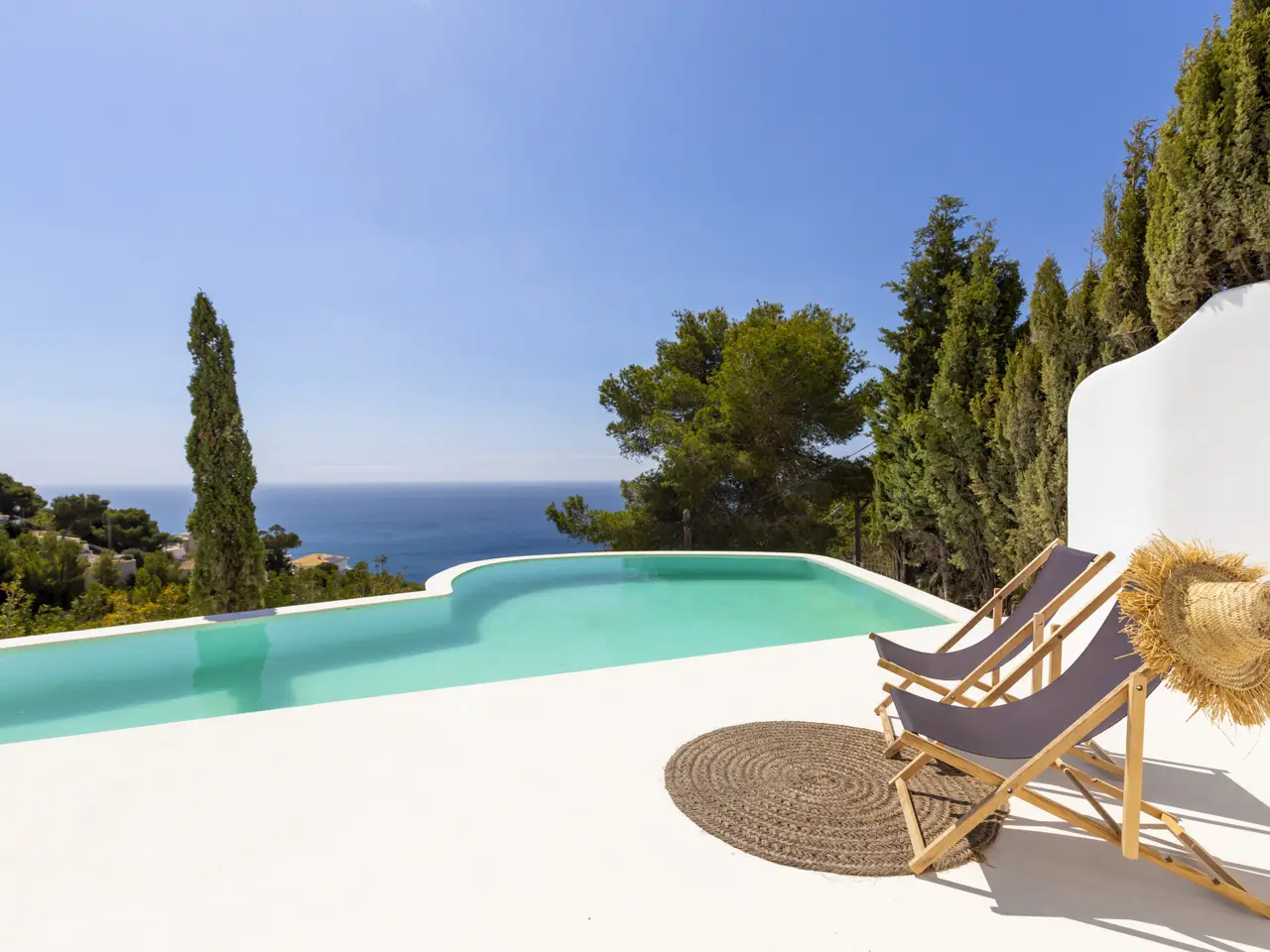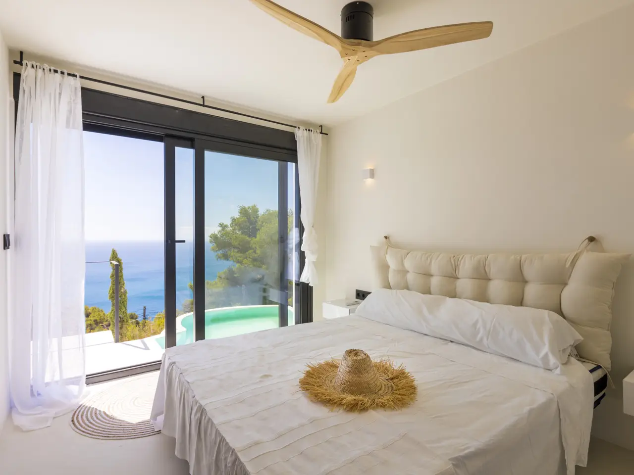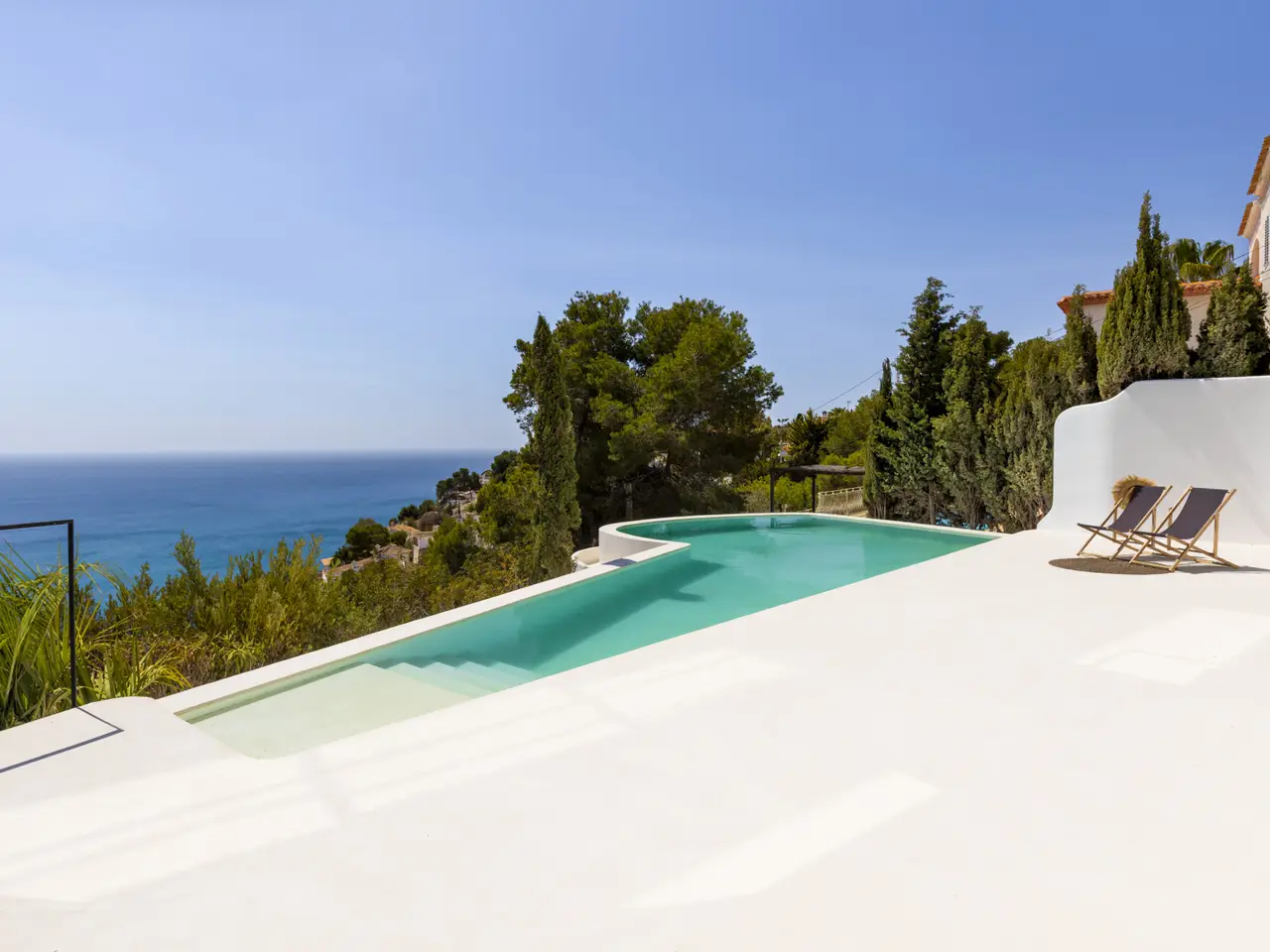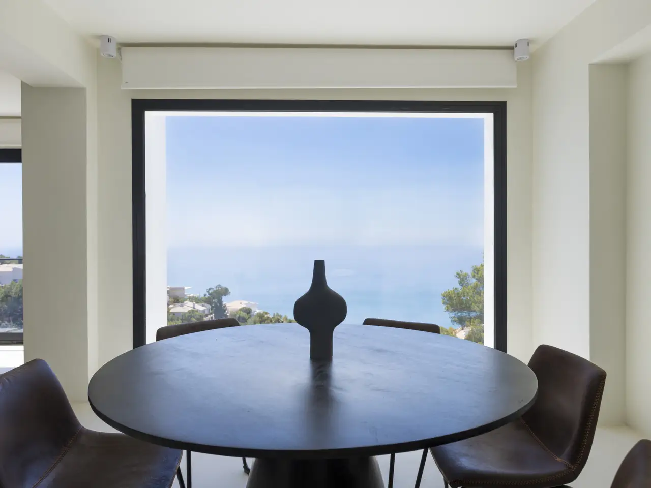 Spectacular villa with stunning sea views, located in the Costa Nova area in Javea, very close to La Granadella beach. It is distributed on 2 levels, communicated both indoor and outdoor, with access to the outdoor areas, terraces, swimming pool and garden. Through a majestic wooden door you access the main level, where you find spacious living room, dining room, courtesy toilet, fully equipped kitchenette and reading area with fireplace, all with huge windows with unbeatable sea views. On the ground floor is located a total of 4 double bedrooms, each with an en-suite bathroom, exits to the terraces and pool area, with its outdoor shower and barbecue area, all with sea views. From the main floor by a spiral staircase, we access the gravel solarium, enabled as a chill out, with space prepared for a barbecue, this area is prepared to enjoy the tranquility and enjoy the views. As extras the property is equipped the aerotermia system, underfloor heating throughout the house, air conditioning by ducts, parking area, the south orientation and it should be noted that it is sold completely furnished.