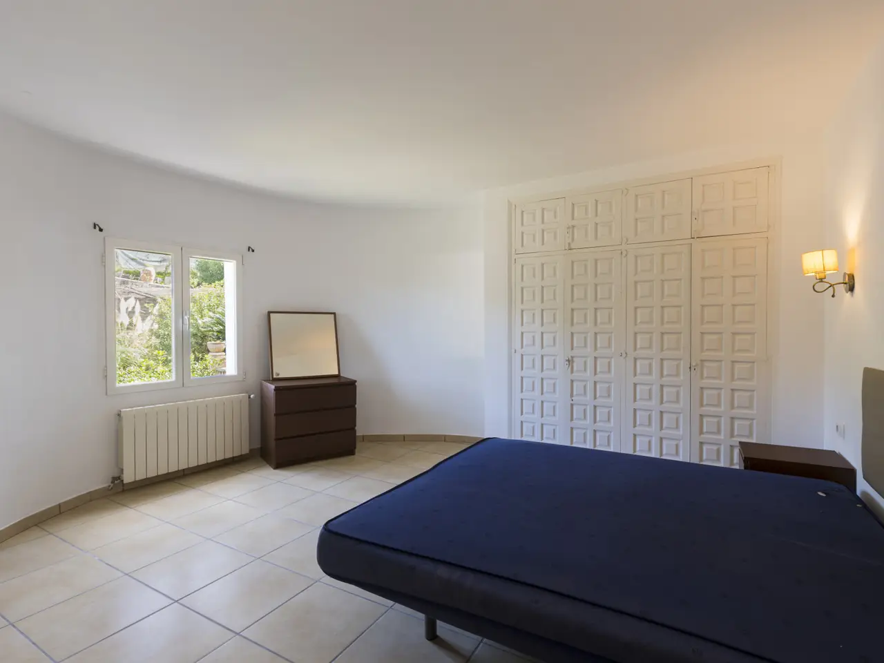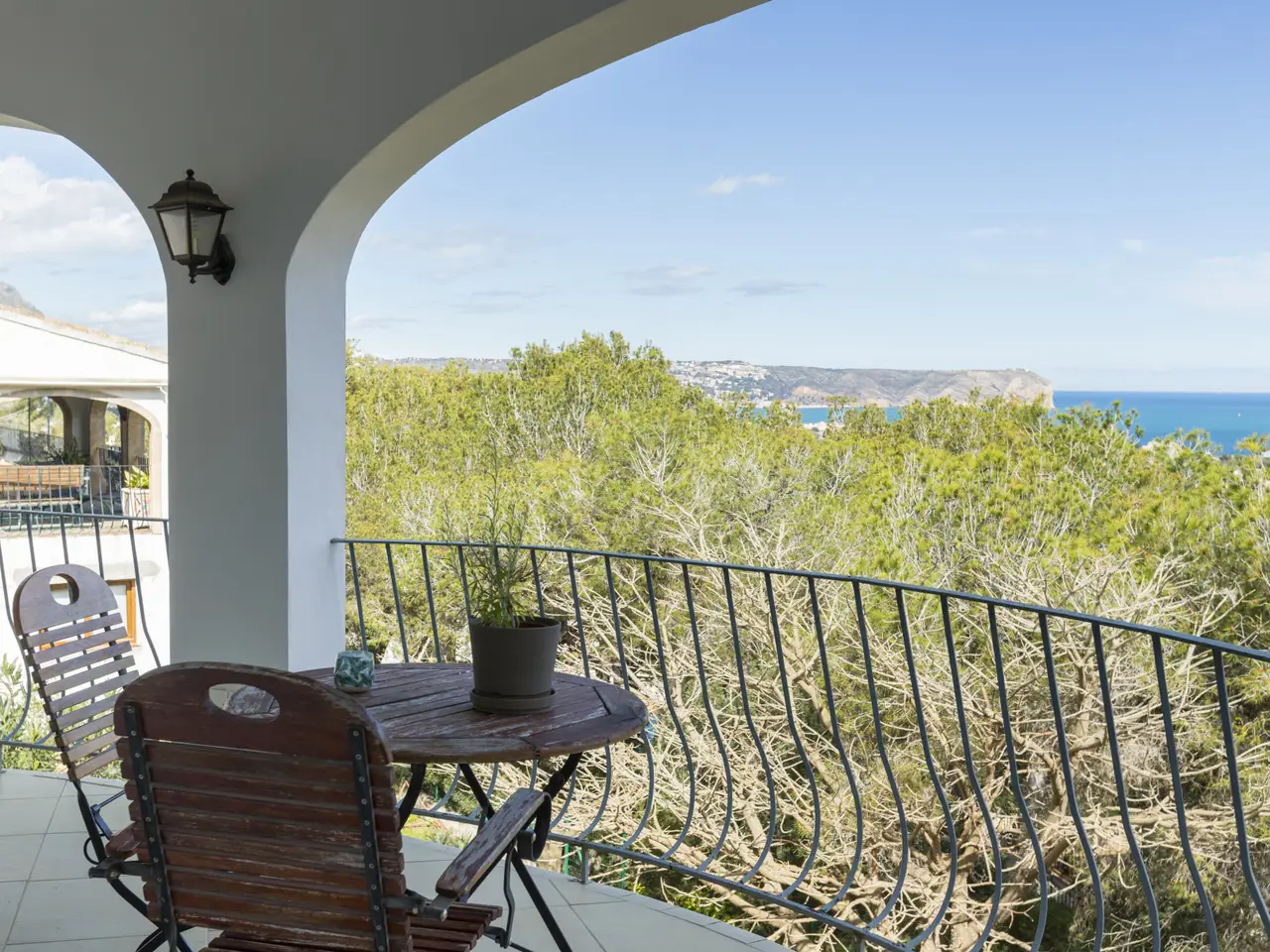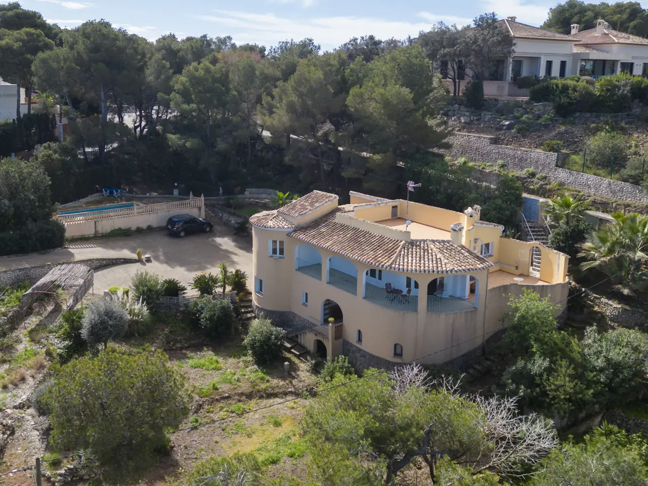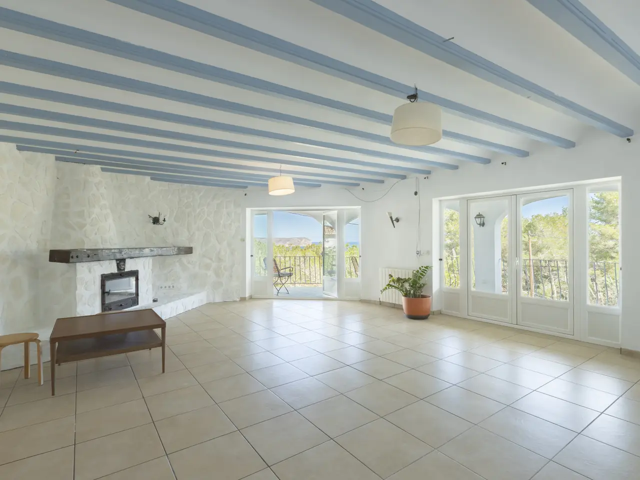 Large villa on a spacious plot of 2.558 m2 with fantastic views of the Bay of Javea, with an area of 238m2. It is distributed in two levels: The main floor consists of spacious living room with fireplace and covered terrace with fantastic sea views, fully equipped kitchen, 3 bedrooms and 2 bathrooms (one of them en suite). This area also has access to a patio with barbecue area and sun terrace access. On the ground floor there is a spacious garage for two cars and a guest apartment with a living room, bathroom and a double bedroom. The property enjoys swimming pool 8x4 meters, low maintenance garden, central heating with gasoil and outdoor parking area. It should be mentioned that there is possibility of dividing the plot into two and building another villa.