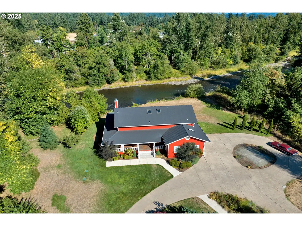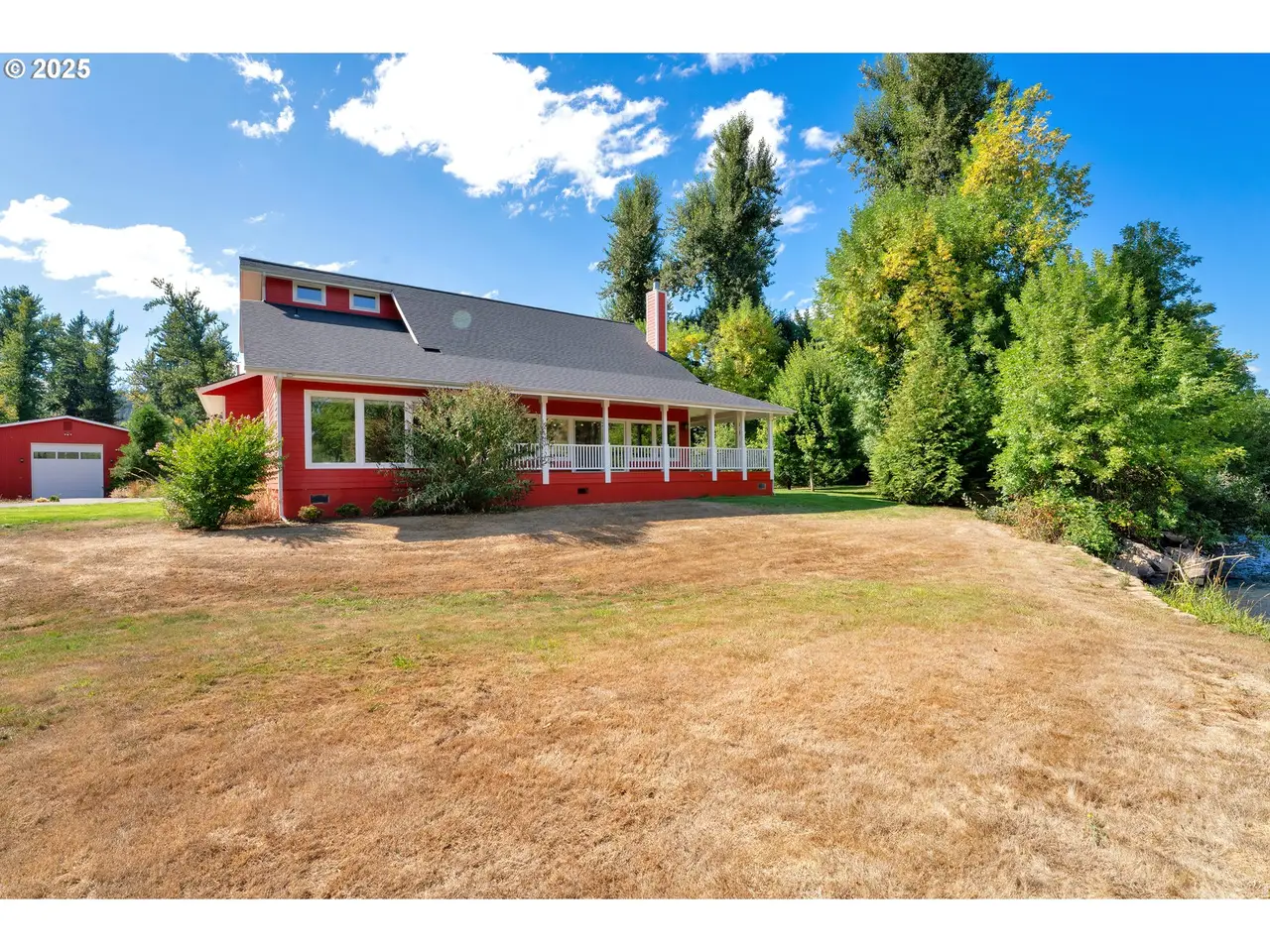 As a river runs through it, this custom-built home sits next to the Row River. Absolutely gorgeous river views. Cast a line from your backyard. This home has cathedral ceilings and a nice working kitchen. Stainless steel appliances and granite counters. Open floor plan with custom stone gas fireplace with views of the river right from your living room, three bedrooms, two and a half baths. Large primary bedroom with walk-in closet and primary bath comes with a separate tub and shower. Home sits on over five acres, yard is fully irrigated, Hardi Plank siding, Newer roof. HVAC system was installed in 2016 with new ducting recently installed, plus an over sized two car garage - This home comes with a huge shop 96'x 58' Over 7000 sqft, Perfect for the home business, epoxy coated floors, two gas furnaces, fully finished, it includes 170 LED lights, two RV outlets. Can hold up to 14 cars. Plus has an RV bay with 18' custom doors. Its also has a possible ADU with A/C with full bath. Shop is equipped with a security system. Comes with several 220V outlets. Lastly there is a tool shed, for all your yard and garden needs. Its close to the I5, shopping is just down road. This is a very special home. Don't miss viewing this property