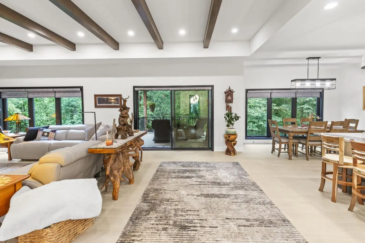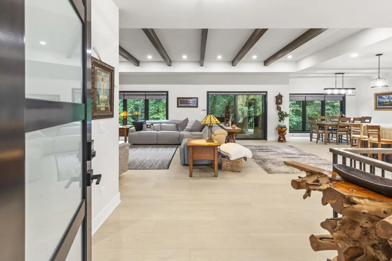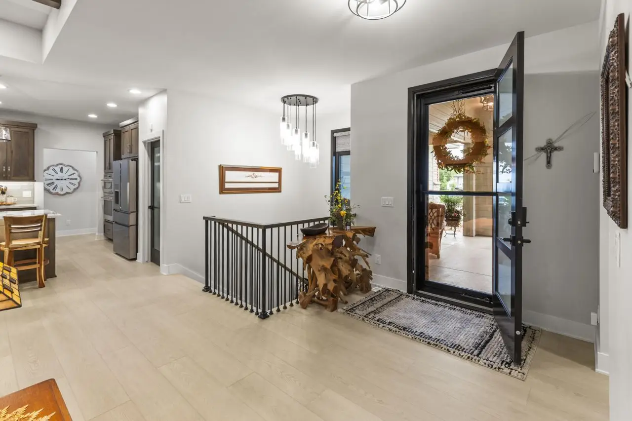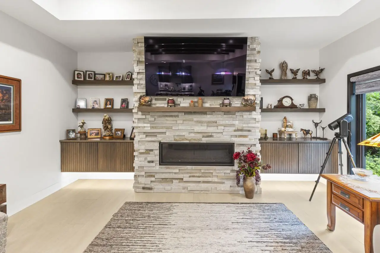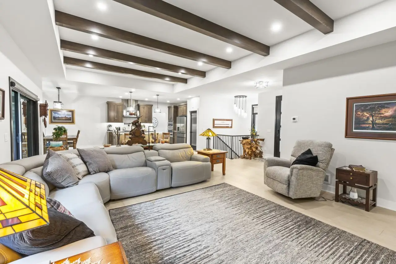 Step into a home where every detail has been carefully considered and no finish overlooked. This custom built 4-bedroom, 3.5-bath blends thoughtful design with everyday comfort. The exterior sets the tone with clean lines, stone accents, and 3 car garage. Inside the open concept showcases ceiling beams, a stone fireplace, and windows framing the wooded backdrop. The kitchen and living areas combine high-end finishes with function, ideal for living and entertaining. The primary suite is a retreat with a spa inspired bath, dual vanities, soaking tub, and walk-in closet. Downstairs a family room with wet bar is perfect for gatherings, and outside a hot tub awaits for the ultimate in relaxation. Every element has been thoughtfully crafted, creating a home that is both elegant and inviting.