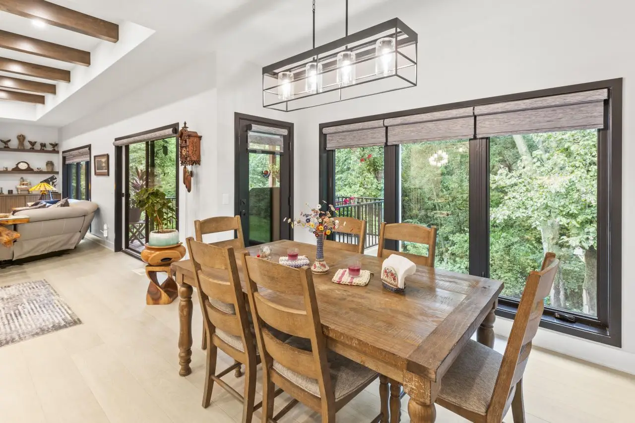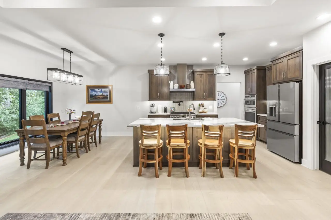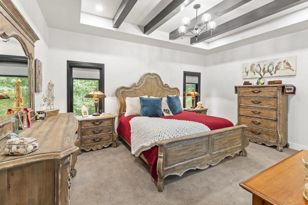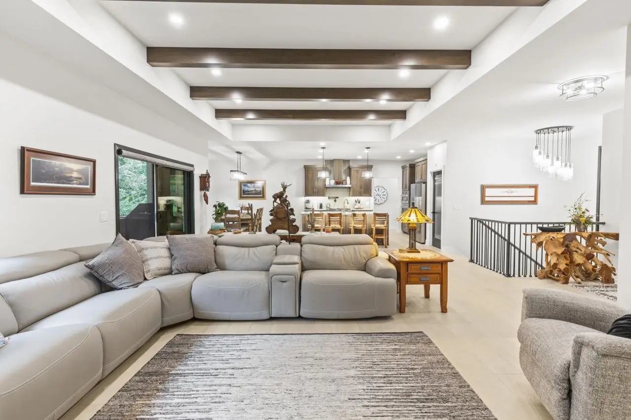 Step into a home where every detail has been carefully considered and no finish overlooked. This custom built 4-bedroom, 3.5-bath blends thoughtful design with everyday comfort. The exterior sets the tone with clean lines, stone accents, and 3 car garage. Inside the open concept showcases ceiling beams, a stone fireplace, and windows framing the wooded backdrop. The kitchen and living areas combine high-end finishes with function, ideal for living and entertaining. The primary suite is a retreat with a spa inspired bath, dual vanities, soaking tub, and walk-in closet. Downstairs a family room with wet bar is perfect for gatherings, and outside a hot tub awaits for the ultimate in relaxation. Every element has been thoughtfully crafted, creating a home that is both elegant and inviting.