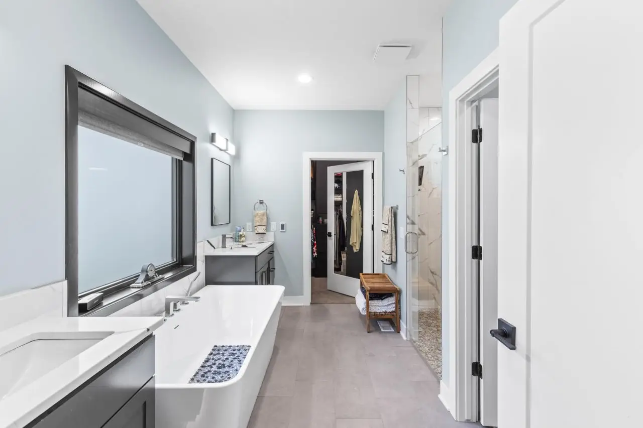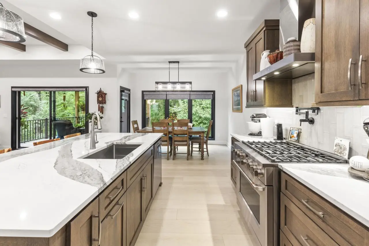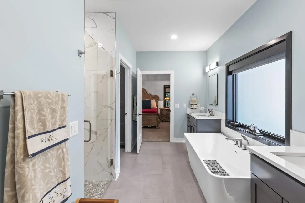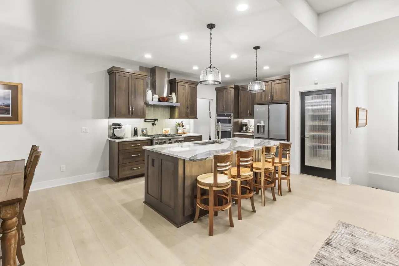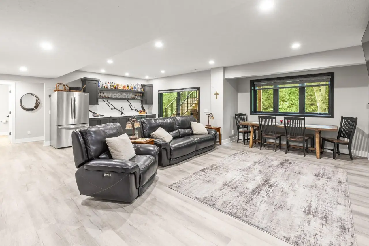 Step into a home where every detail has been carefully considered and no finish overlooked. This custom built 4-bedroom, 3.5-bath blends thoughtful design with everyday comfort. The exterior sets the tone with clean lines, stone accents, and 3 car garage. Inside the open concept showcases ceiling beams, a stone fireplace, and windows framing the wooded backdrop. The kitchen and living areas combine high-end finishes with function, ideal for living and entertaining. The primary suite is a retreat with a spa inspired bath, dual vanities, soaking tub, and walk-in closet. Downstairs a family room with wet bar is perfect for gatherings, and outside a hot tub awaits for the ultimate in relaxation. Every element has been thoughtfully crafted, creating a home that is both elegant and inviting.