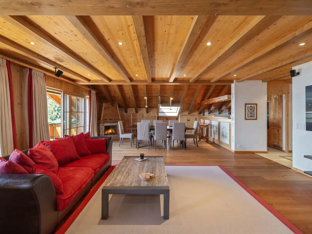 Nestled to the east of Crans-Montana, in the peaceful residential area of La Combaz, this splendid duplex apartment combines comfort, space and discretion in a green setting bathed in light. Built over two levels, it faces due south and enjoys optimum sunlight all day long. The property immediately captivates with its warm, sophisticated atmosphere. The vast living room, the heart of the home, is enhanced by two fireplaces, inviting you to relax and socialize. It opens onto large balconies overlooking the Val d'Anniviers and the majestic peaks of the Couronne Impériale, offering a spectacular alpine panorama in summer and winter alike. The semi-open kitchen, elegantly integrated into the living space, extends the experience with fluidity and functionality. The three large en-suite bedrooms, all with private bathrooms, guarantee rare privacy. Upstairs, the master suite features a generous dressing room and direct access to a south-facing balcony. Designed for lovers of comfort and refinement, this apartment is also attractive for its modularity, its four balconies facing north and south, and its easy, direct elevator access. Practical features include two garage parking spaces and one outdoor parking space (extra charge), as well as access to the residential spa. Located right next to a bus stop, just a few minutes from the Violettes ski lifts and the lively center of Montana, this property is the perfect combination of absolute calm and easy living. A rare opportunity for those who want to experience Crans-Montana with elegance, in an unspoilt setting in the heart of the Valais Alps.