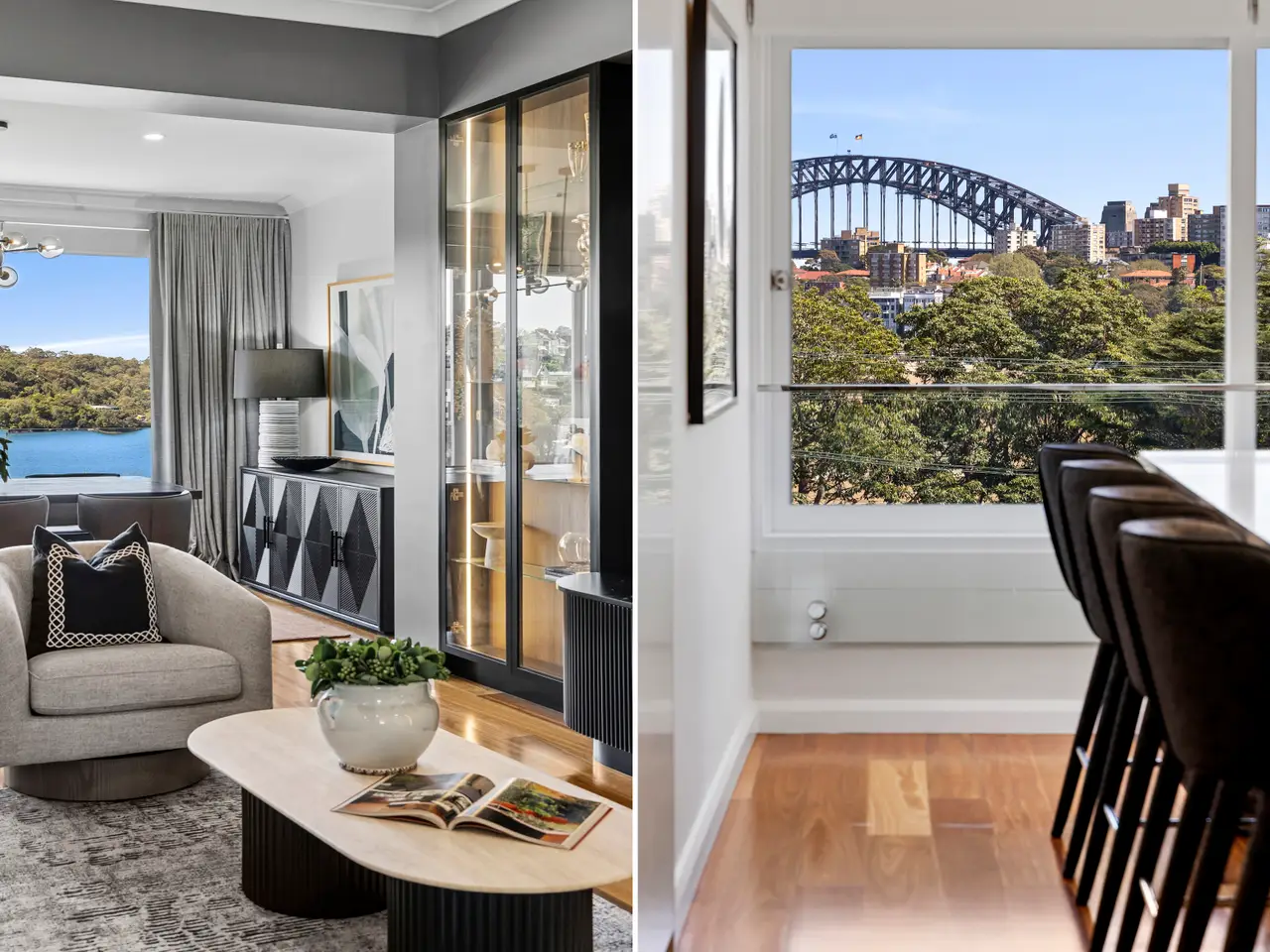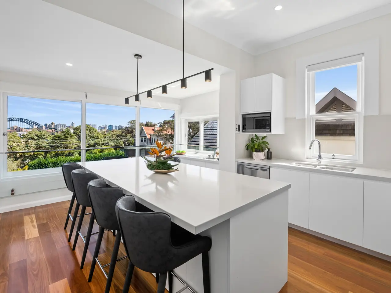 Perched on the top floor and commanding incredible harbour panoramas, this beautifully renovated apartment promises a luxurious lifestyle from a highly coveted position. Enhanced with stylish new cabinetry, abundant storage and a fresh contemporary finish throughout, the property captivates with generously scaled living zones spanning approximately 136sqm internally. Uninterrupted views on both sides are complemented by a highly flexible floorplan overlooking Mosman Bay, Harbour Bridge, Opera House and city skyline. Its prized address ensures effortless access to Cremorne Reserve, harbourside walking trails and the ferry wharf, while only moments from vibrant shops, coffee spots and dining options. - Incredibly spacious internal layout provides impressive living and dining zone - Flawlessly crafted interior with high ceilings and sleek timber floors - Gourmet island kitchen offers premium appliances and Caesar Stone benches - Two spacious double bedrooms both complete with built/walk-in wardrobes - Fully tiled bathroom with internal laundry facilities and quality fixtures - Separate flexible room ideal as a third bedroom, home office, or living - Boutique complex of 6, this features secure lock up garage & shed Disclaimer: All information contained herewith, including but not limited to the general property description, price and the address, is provided to Belle Property by third parties. We have obtained this information from sources we believe to be reliable; however, we cannot guarantee its accuracy. The information contained herewith should not be relied upon and you should make your own enquiries and seek advice in respect of this property or any property on this website.