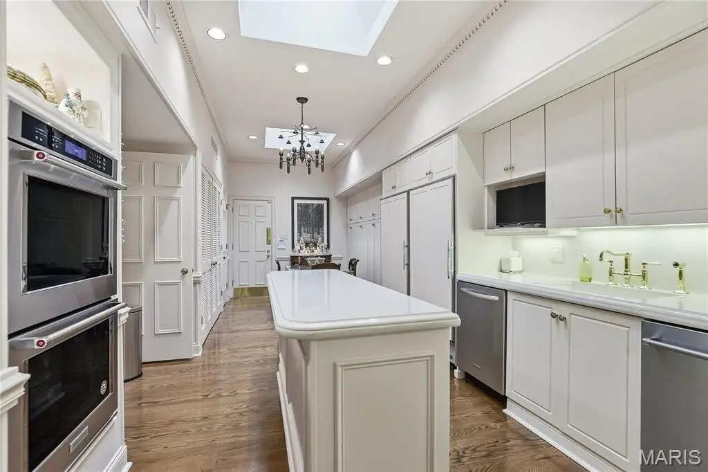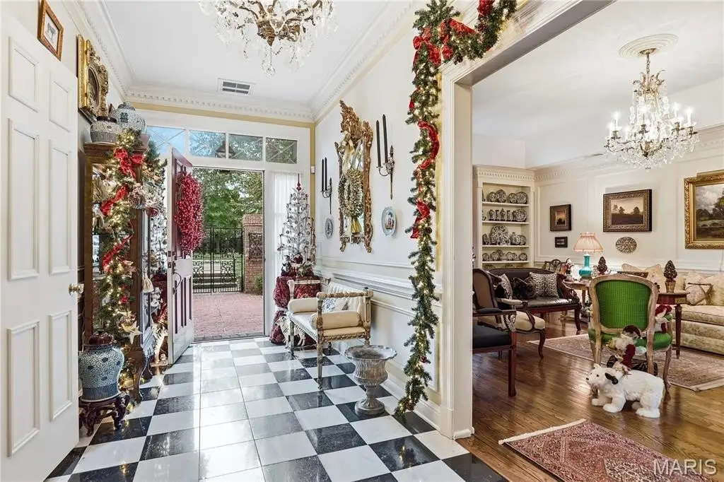 Discover timeless luxury in this three-bedroom, four-and-a-half-bath villa offering 3,368 square feet of refined living space. Beyond the gated brick courtyard, this home welcomes you with 12-foot-high ceilings, checkerboard Italian marble flooring, intricate custom moldings, and exquisite architectural details throughout. A newly renovated Kitchen is both stylish and functional, featuring quartz countertops, abundant storage, and premium finishes—perfect for both everyday living and entertaining. A charming dining area adjoins the Kitchen area. Soaring ceilings, exquisite chandeliers and lighting , attention to details and rich hardwood flooring flows throughout the main living areas, accented by Scalamandré designer wallpaper that adds a touch of sophisticated elegance. Each bedroom suite offers privacy and comfort, with luxurious baths and generous closets. An upper level offers flexibility for a third bedroom en suite bath or office. Additional Storage closet wrap around the upper level to provide an remarkable abundance of additional storage and a cedar closet. Additional highlights of this fee simple Villa include an inviting gated courtyard entry ideal for your relaxing or hosting guests. Do not miss the terra cotta brick–floored two car garage featuring crown molding, white birch paneling, heaters and a pair of ceiling fans. This fee simple villa combines classic design, modern amenities, and unmatched attention to detail—a rare opportunity for those seeking sophistication and comfort in a distinguished setting.