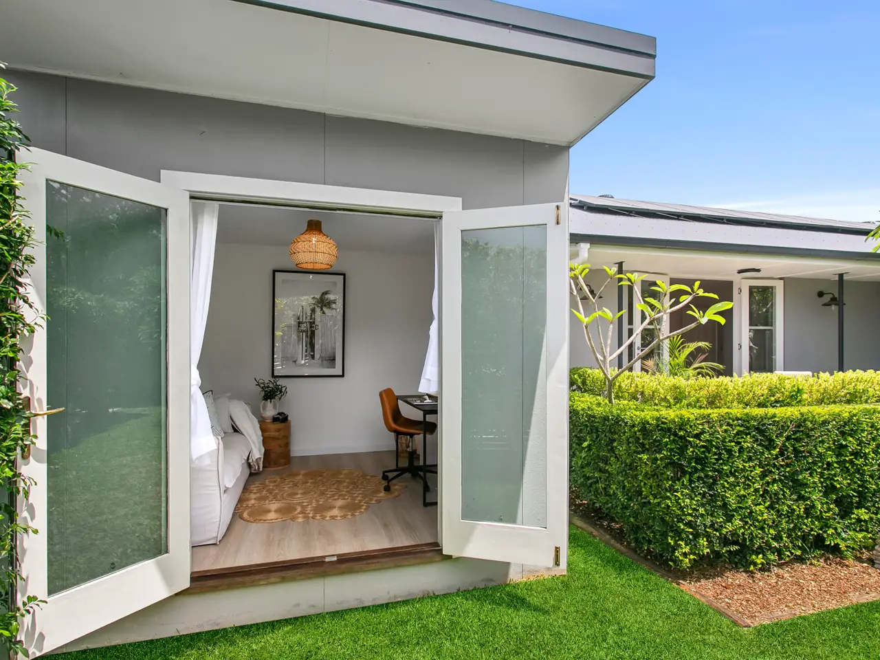 Protected behind secure gates on a generous corner block, this elegant Cromer residence feels wonderfully private from the moment you enter, with lush tropical landscaping creating a retreat-like ambience. Inside the home extends across an effortless single-level layout, anchored by a dramatic open plan living zone with cathedral ceilings, exposed trusses and heated polished concrete floors. A travertine alfresco terrace sheltered beneath its own cathedral pergola flows to level lawns and an enclosed pool, all framed by frangipanis and established greenery. A separate sitting room and a detached garden studio extend the home's versatility, creating options for working privately or giving families space to spread out. Four bedrooms include a private main suite with patio and garden access, while the rest of the home's refined coastal finishes and immaculate presentation ensure everyday comfort. Positioned directly opposite St Matthew's Farm Reserve and moments from Dee Why's cafés, shopping and surf, this is a polished family sanctuary defined by privacy, ease and an enduring sense of style. - Single-level family haven on generous corner block in leafy Cromer - Beautifully finished with quality coastal inspired finishes throughout - Dramatic open plan living with cathedral ceiling and heated concrete floors - Bi-fold doors extend to travertine terrace beneath cathedral pergola - Built-in gas barbecue and lush tropical gardens for easy entertaining - Heated mineral pool and spa, outdoor shower, enclosed family-friendly lawn - Stylish modern gas kitchen with stone benches, integrated dishwasher and induction cooktops - Generous bedrooms, main with walk-in robe, ensuite & patio access - Detached garden studio ideal for office, additional storage at rear - Ducted air con, plantation shutters, attic storage and rainwater tanks included - 19x 6.75kW Solar panels and 10kW battery - Secure gated driveway parking; opposite St Matthew's Farm Reserve - Footsteps to public transport, 650m to Cromer Park, 2.3km to Cromer Golf Club - 950m to Cromer Public School,1.4km to Wheeler Heights Public School - 1.6km to St Rose Catholic Primary School - 600m to NBSC Cromer Campus, 1.4km to Pittwater House