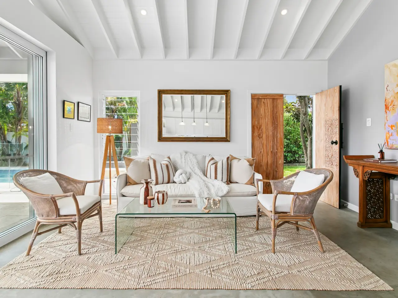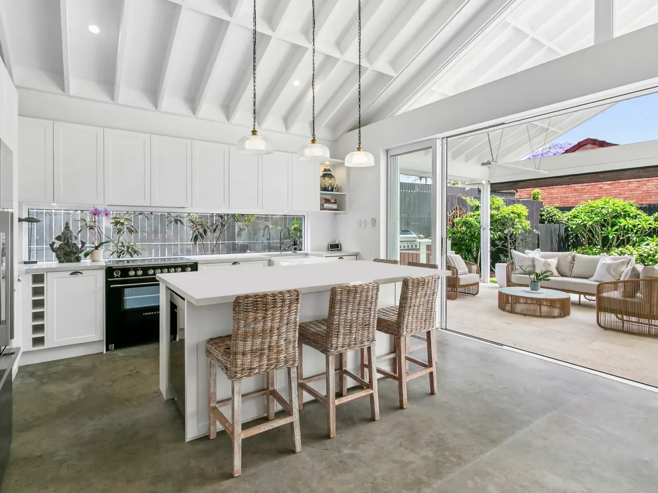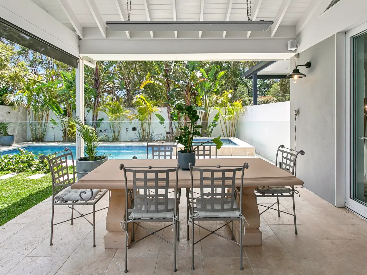 Protected behind secure gates on a generous corner block, this elegant Cromer residence feels wonderfully private from the moment you enter, with lush tropical landscaping creating a retreat-like ambience. Inside the home extends across an effortless single-level layout, anchored by a dramatic open plan living zone with cathedral ceilings, exposed trusses and heated polished concrete floors. A travertine alfresco terrace sheltered beneath its own cathedral pergola flows to level lawns and an enclosed pool, all framed by frangipanis and established greenery. A separate sitting room and a detached garden studio extend the home's versatility, creating options for working privately or giving families space to spread out. Four bedrooms include a private main suite with patio and garden access, while the rest of the home's refined coastal finishes and immaculate presentation ensure everyday comfort. Positioned directly opposite St Matthew's Farm Reserve and moments from Dee Why's cafés, shopping and surf, this is a polished family sanctuary defined by privacy, ease and an enduring sense of style. - Single-level family haven on generous corner block in leafy Cromer - Beautifully finished with quality coastal inspired finishes throughout - Dramatic open plan living with cathedral ceiling and heated concrete floors - Bi-fold doors extend to travertine terrace beneath cathedral pergola - Built-in gas barbecue and lush tropical gardens for easy entertaining - Heated mineral pool and spa, outdoor shower, enclosed family-friendly lawn - Stylish modern gas kitchen with stone benches, integrated dishwasher and induction cooktops - Generous bedrooms, main with walk-in robe, ensuite & patio access - Detached garden studio ideal for office, additional storage at rear - Ducted air con, plantation shutters, attic storage and rainwater tanks included - 19x 6.75kW Solar panels and 10kW battery - Secure gated driveway parking; opposite St Matthew's Farm Reserve - Footsteps to public transport, 650m to Cromer Park, 2.3km to Cromer Golf Club - 950m to Cromer Public School,1.4km to Wheeler Heights Public School - 1.6km to St Rose Catholic Primary School - 600m to NBSC Cromer Campus, 1.4km to Pittwater House