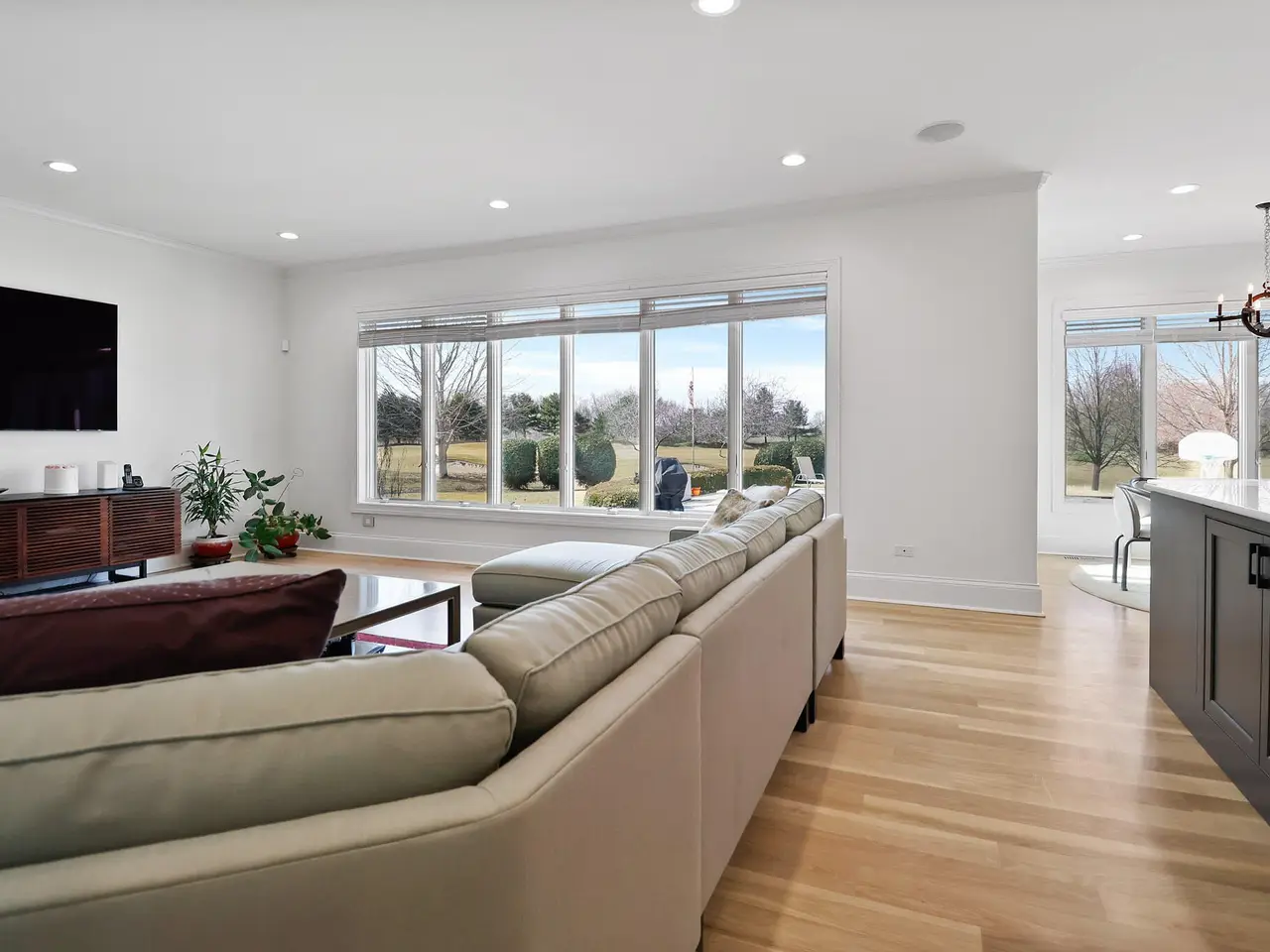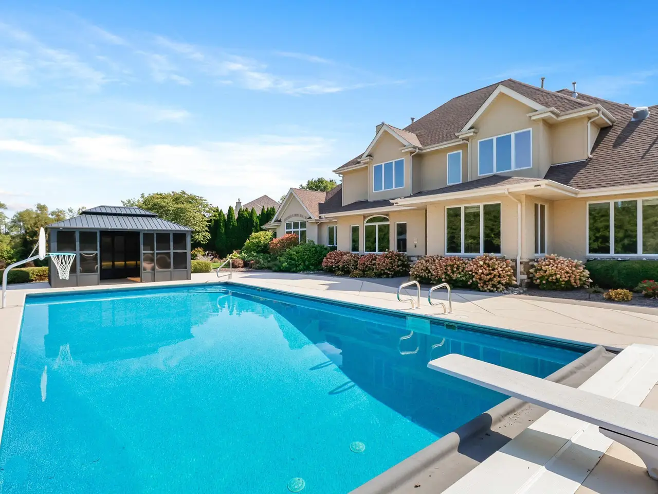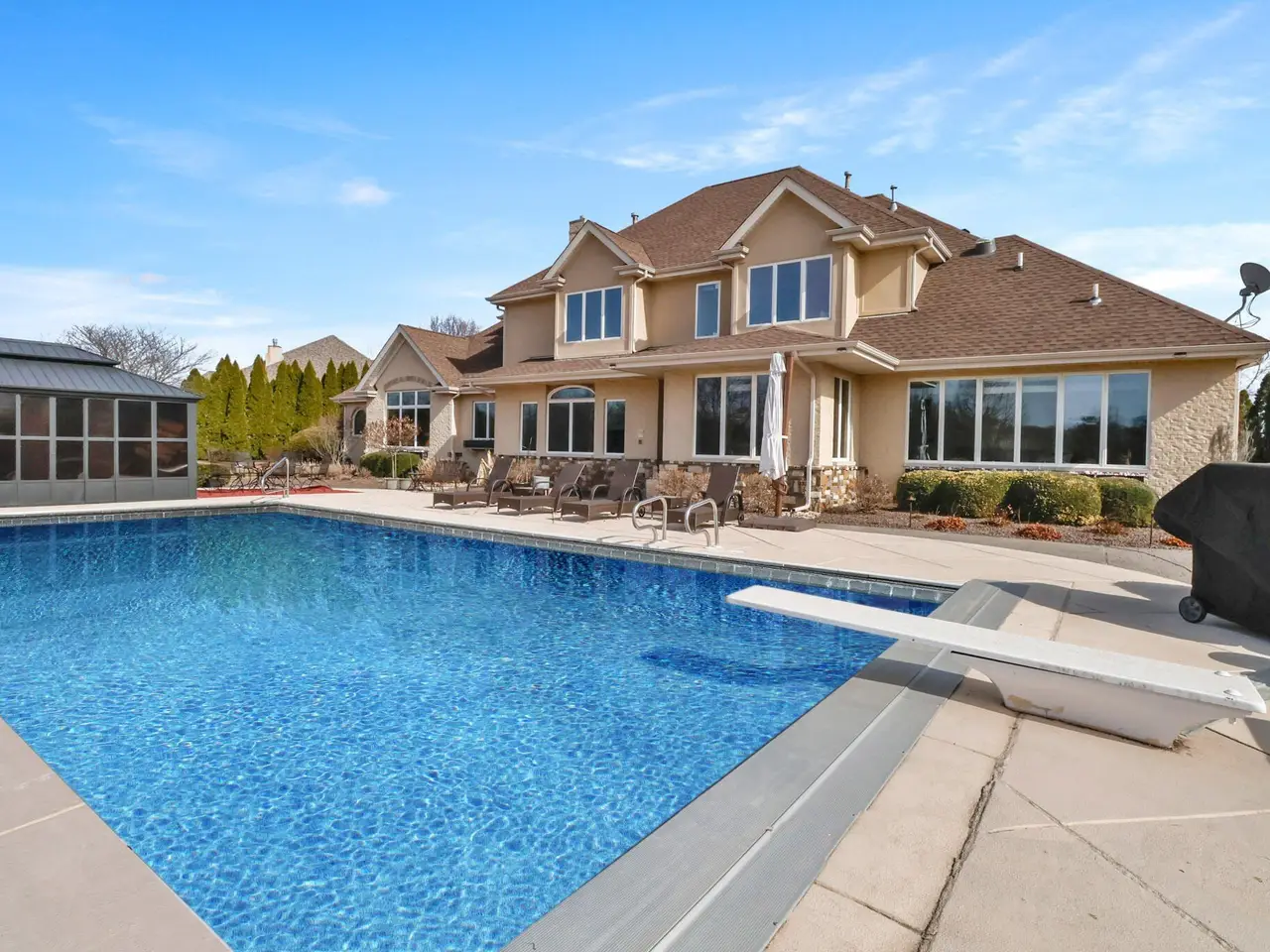 Welcome to a home where modern luxury, timeless design, and everyday comfort come together seamlessly. Nestled on a picturesque .70-acre golf course lot, this completely remodeled estate offers an unparalleled living experience that blends elegance with convenience. From the moment you step through the grand foyer, you are surrounded by refined finishes, thoughtful details, and sweeping views that make every space feel extraordinary. The main level sets the tone for both sophistication and practicality. Rich hardwood floors flow throughout, leading you into a dramatic great room anchored by a cozy fireplace and oversized windows framing the lush golf course beyond. The master suite on the main level provides the ultimate retreat with spa-like finishes, designed to evoke peace and relaxation at the end of the day. A second bedroom on the main level offers flexibility and comfort, complete with an ADA-accessible three-quarter bathroom, making it ideal for extended family or guests. An elegant formal dining room is perfectly suited for gatherings, while a private office with custom built-ins creates a polished space for productivity without sacrificing style. The heart of this home is the gourmet kitchen, designed for both function and entertaining. Featuring newer appliances, abundant cabinetry, and a separate wet bar area tailored for hosting. Upstairs, every bedroom offers its own private bath, ensuring that comfort and privacy are never compromised. A dedicated guest en-suite provides the perfect haven for visitors, while the upper-level laundry room adds convenience to daily routines. The finished basement extends the home's living space with all-new luxury vinyl plank flooring, a full kitchen and bar, 3/4 stunning bath and an expansive entertaining area. Outdoor living is elevated to resort standards with a sparkling in-ground pool, a generous patio, & uninterrupted views of the manicured fairways.