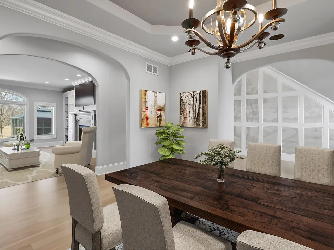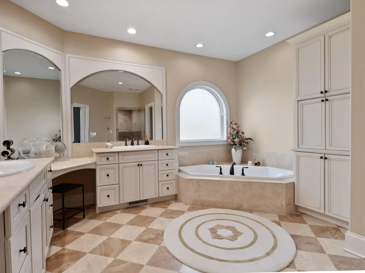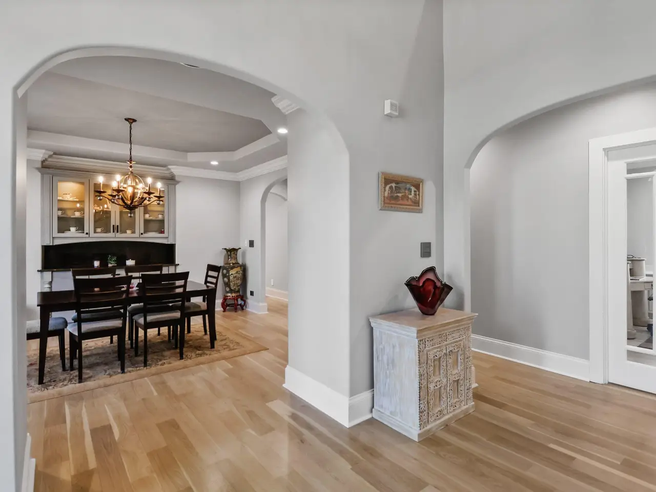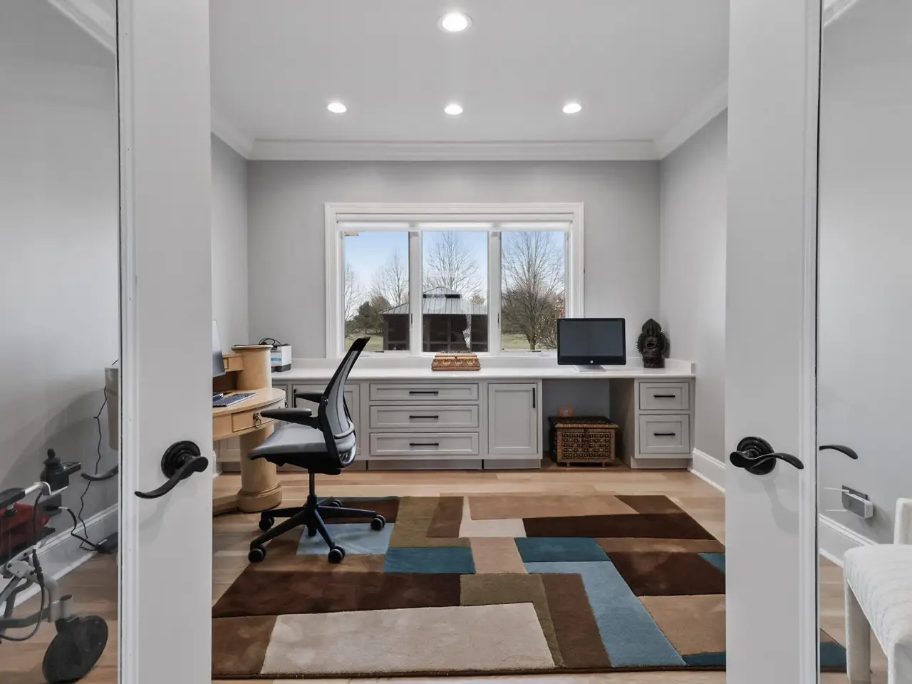 Welcome to a home where modern luxury, timeless design, and everyday comfort come together seamlessly. Nestled on a picturesque .70-acre golf course lot, this completely remodeled estate offers an unparalleled living experience that blends elegance with convenience. From the moment you step through the grand foyer, you are surrounded by refined finishes, thoughtful details, and sweeping views that make every space feel extraordinary. The main level sets the tone for both sophistication and practicality. Rich hardwood floors flow throughout, leading you into a dramatic great room anchored by a cozy fireplace and oversized windows framing the lush golf course beyond. The master suite on the main level provides the ultimate retreat with spa-like finishes, designed to evoke peace and relaxation at the end of the day. A second bedroom on the main level offers flexibility and comfort, complete with an ADA-accessible three-quarter bathroom, making it ideal for extended family or guests. An elegant formal dining room is perfectly suited for gatherings, while a private office with custom built-ins creates a polished space for productivity without sacrificing style. The heart of this home is the gourmet kitchen, designed for both function and entertaining. Featuring newer appliances, abundant cabinetry, and a separate wet bar area tailored for hosting. Upstairs, every bedroom offers its own private bath, ensuring that comfort and privacy are never compromised. A dedicated guest en-suite provides the perfect haven for visitors, while the upper-level laundry room adds convenience to daily routines. The finished basement extends the home's living space with all-new luxury vinyl plank flooring, a full kitchen and bar, 3/4 stunning bath and an expansive entertaining area. Outdoor living is elevated to resort standards with a sparkling in-ground pool, a generous patio, & uninterrupted views of the manicured fairways.
