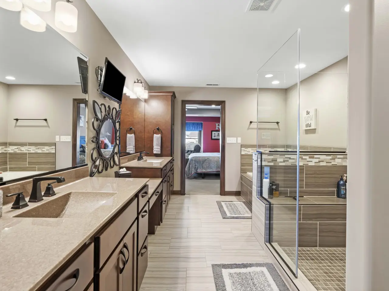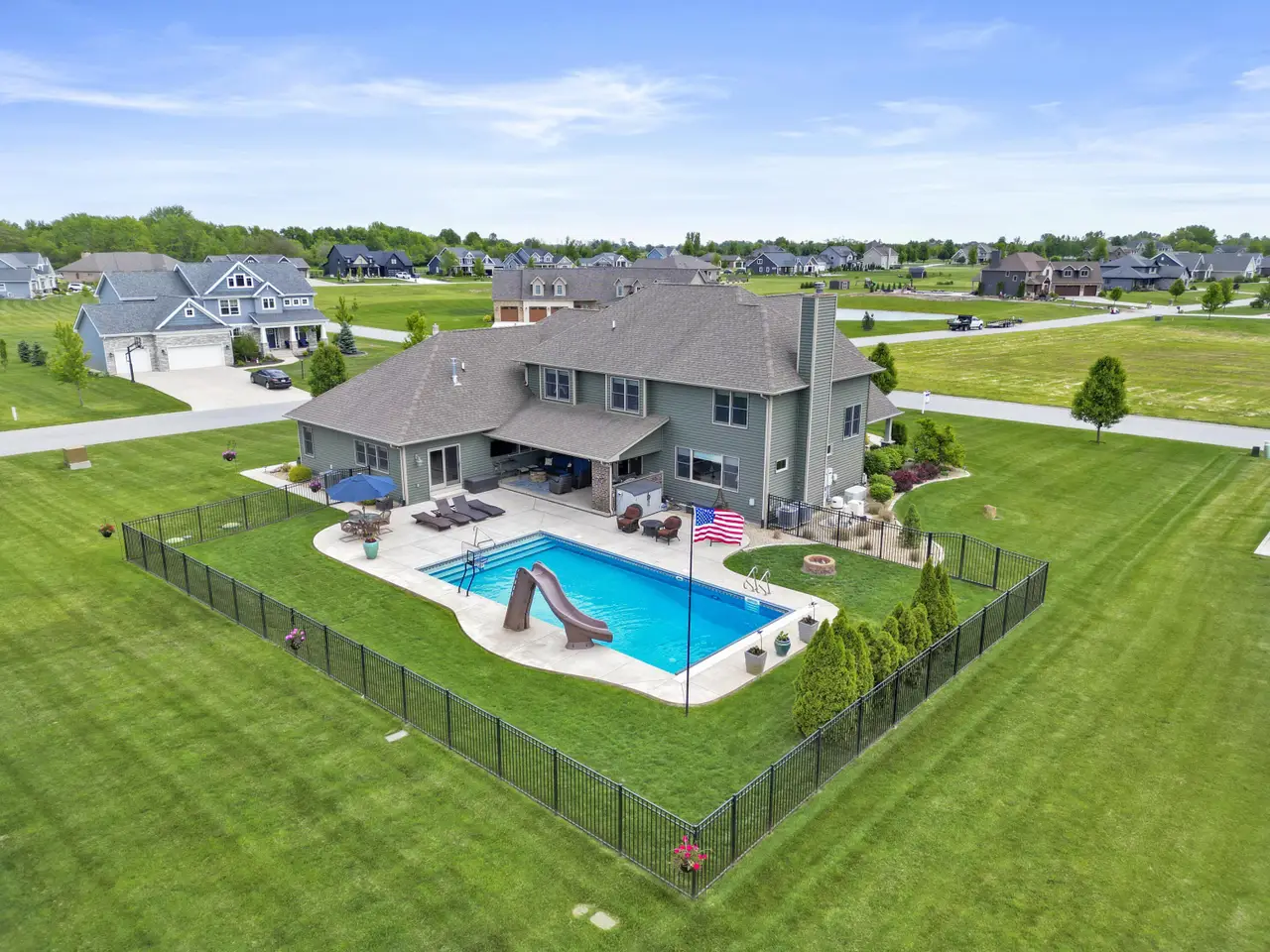 Expansive 6 BED 6 BATH CUSTOM BUILT HOME, by one of NWI premier builders! Room to roam with over 5800 SQFT OF FINISHED LIVING SPACE! This exquisite estate, perfectly situated on an oversized acre lot, offering unparalleled space and luxury. Featuring 2 spacious MASTER SUITES, Providing comfort and privacy for everyone. Step into the heart of the home--a chef's dream kitchen complete with an oversized walk-in pantry that will make meal prep a delight. Stunning quartz countertops, Induction cook top with existing gas line conversion available. Beverage cooler for even more added convenience. Main level office with custom built ins is the perfect home work space! Gather around the warmth of three elegant fireplaces as you entertain in style in the numerous living areas. With 6 generously sized bedrooms and 6 beautifully appointed baths, this home accommodates both family and guests with ease. The finished basement adds even more versatility, equipped with bar, perfect for a game room, home theater, or additional living space. Indulge in the luxury of an ENORMOUS WALK IN MASTER CLOSET, everyone's dream for organization. 2 dedicated laundry rooms, one on Main level & the other Upper, both equipped with laundry sinks to make this chore a breeze! The home also features 2 SEPARATE front entrances, providing a grand welcome for visitors. Car enthusiasts will appreciate the four-car garage, 2 SEPARATE ACCESS DOORS INTO HOME, ample space for vehicles and storage. Step outside to your private oasis, complete with a SALT WATER HEATED POOL, perfect for relaxation and entertainment year-round. WHOLE HOUSE GENERATOR gives you peace of mind knowing you're always prepared. This remarkable property is a true sanctuary, combining comfort, elegance, and functionality. A STONES THROW AWAY FROM SCHOOLS, LAKE COUNTY FAIR GROUNDS, FANTASTIC YMCA, SHOPPING, RESTAURANTS & MORE! EASY ACCESS TO I65 FOR A CHICAGO COMMUTE!