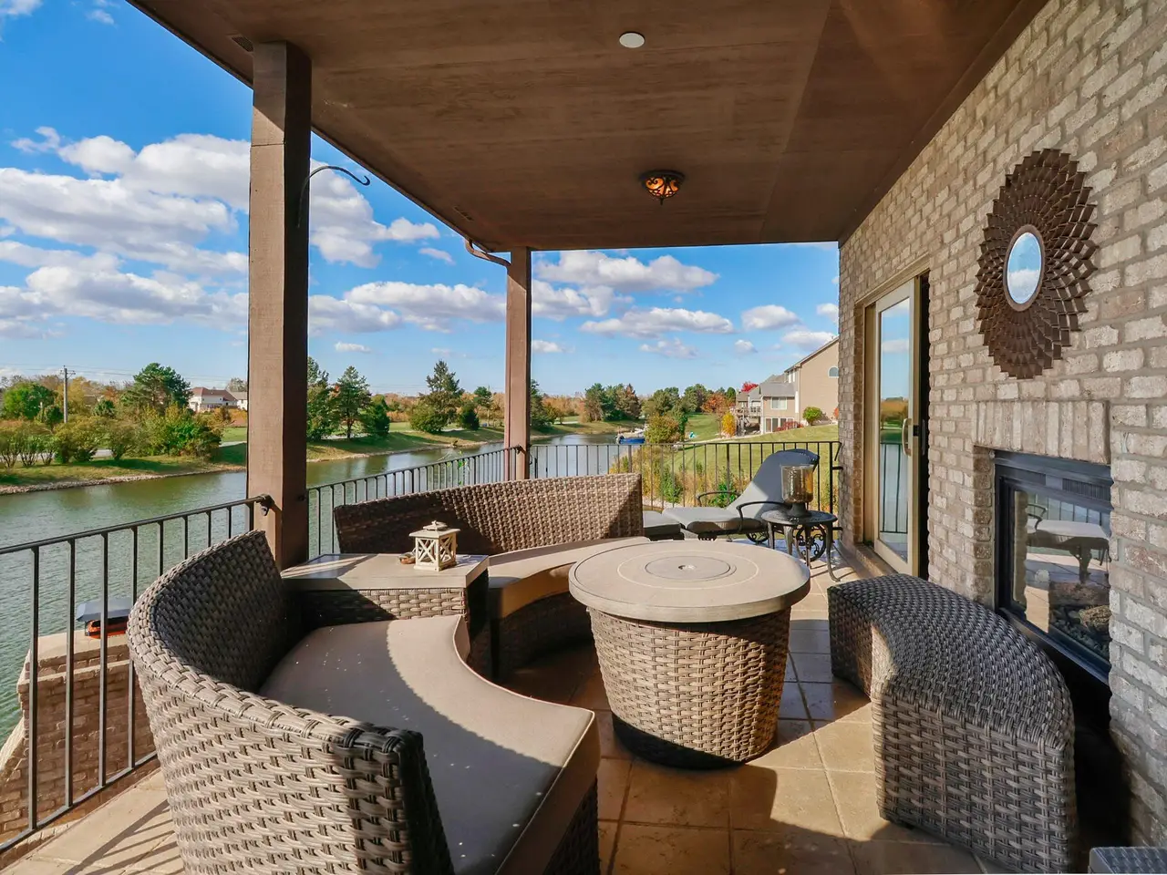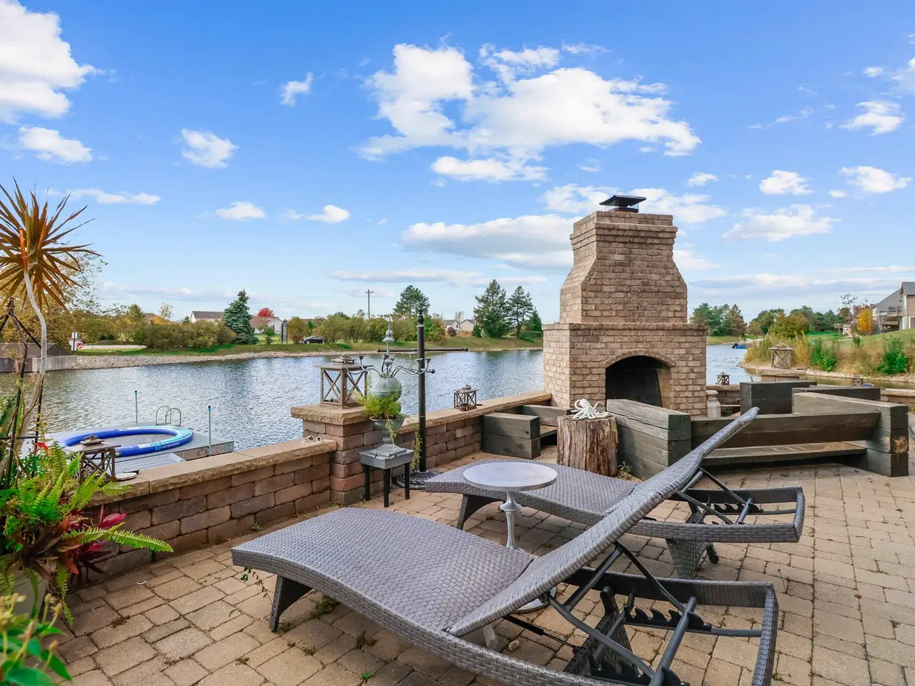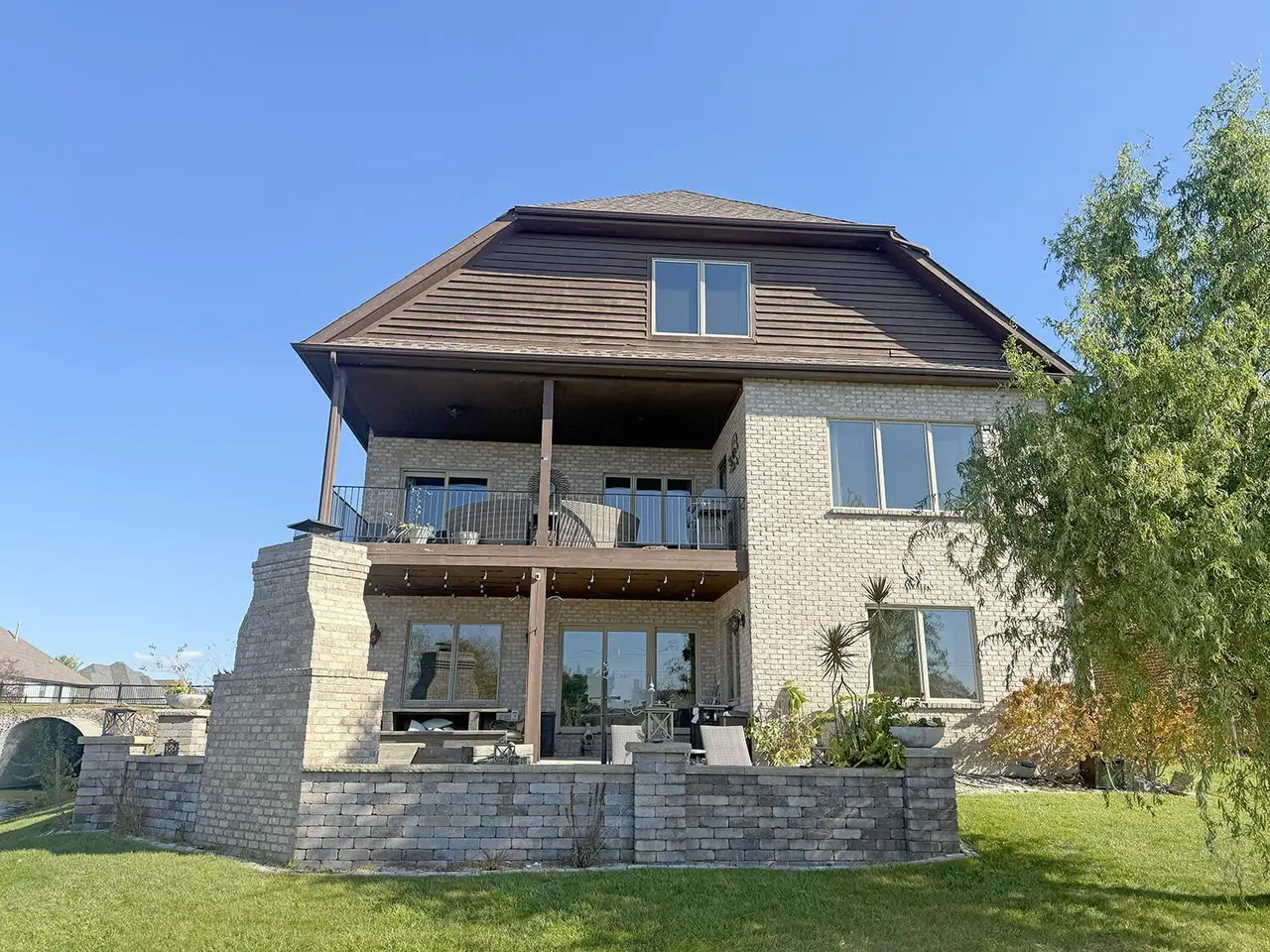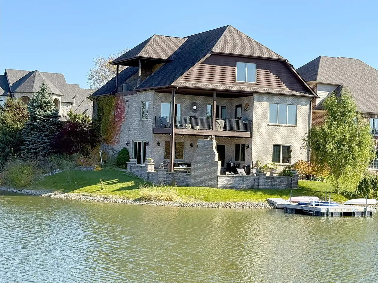 Gorgeous brick and stone home with a finished walkout is nestled into a hill with water views from every window. A seamless blend of old world charm and modern appointments create a warm and inviting retreat. 5 custom baths, 4 beds, 4 fireplaces including the masonry outdoor fireplace, 3 outdoor spaces with 2 tiled, covered balconies & a large paver patio, kitchens located on the main and walkout level perfect for entertaining or related living plus a dock with premium MoistureShield Decking for taking advantage of swimming, boating & fishing on Doubletree Lake. Handscraped oak hardwood flows throughout the main level including the entry, dining with coffered ceilings, kitchen with character maple cabinetry & Delicatus granite counters, breakfast room & living rooms featuring an indoor/outdoor fireplace open to the 22' x 10' balcony. The upper level owner's suite is a true escape with a double sided FP, balcony, two 20'x 6' WICs & a spectacular bath lined in antiqued marble with 2 floating vanities, 2 person tub, walk-in shower & linen closet. Main level primary with ensuite hosting a whirlpool tub & tile shower, large WIC & balcony access. Main floor 2nd bed & upper level 4th bed/bonus room are both adjacent to their own stunning baths. The walkout is perfect for entertaining with acid stained concrete floors & a kitchen featuring built-in full size fridge & freezer units, convection microwave, oven & warming drawer, gas cooktop plus a freestanding island with integrated bench seating. A convenient basement bath features a beautiful shower with high definition granite look walls perfect for a rinse after a day on the lake. The family room with gas FP & coffered ceilings, gym and storage area complete the basement. Back & side sliders access the expansive patio. Whether you'll be enjoying the gorgeous water views year round or using this for your lakefront getaway, the quality craftsmanship and premium finishes make you feel like you're living on holiday every day.