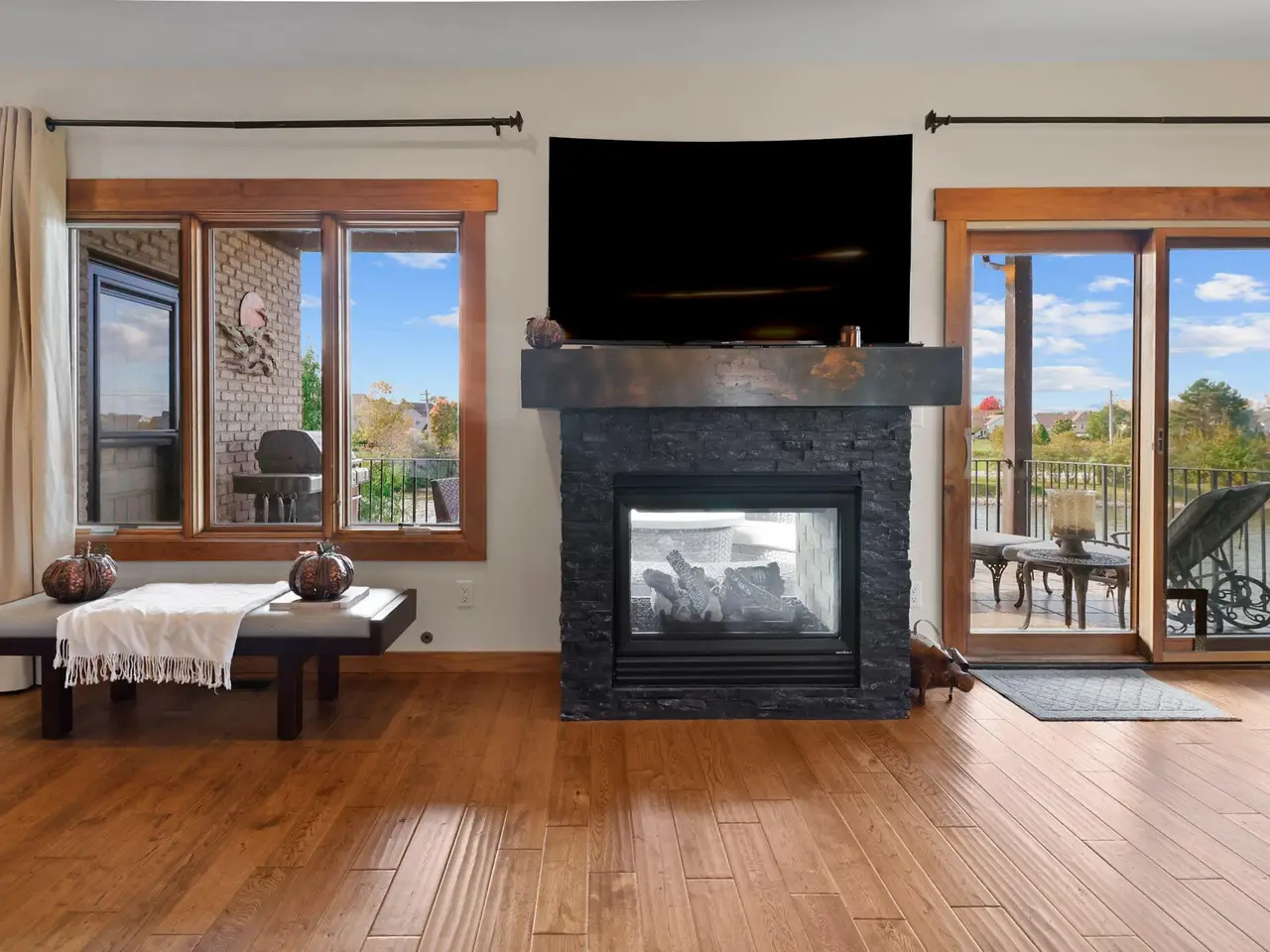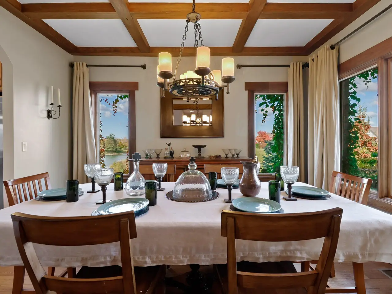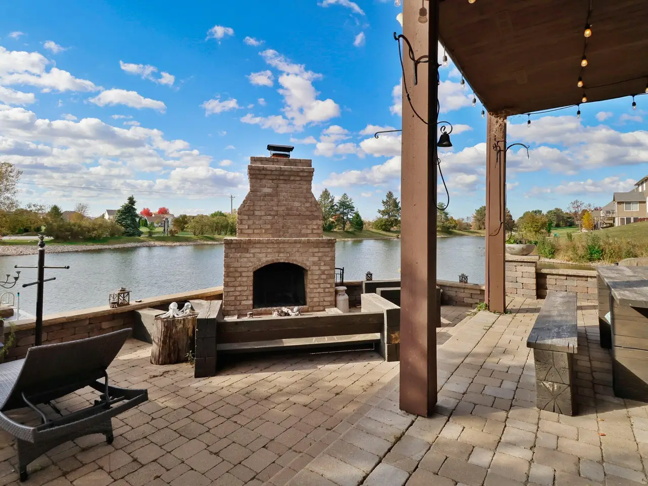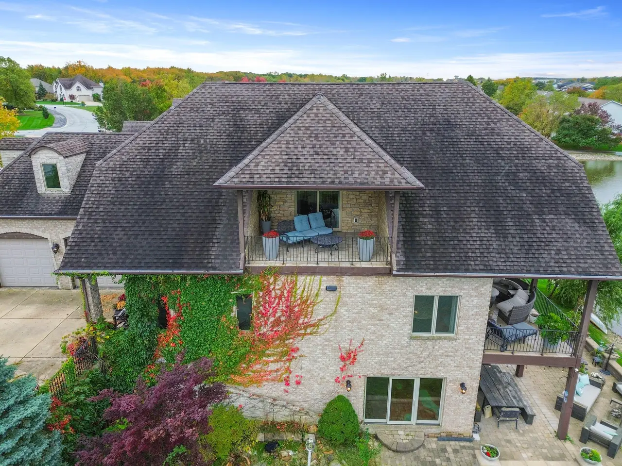 Gorgeous brick and stone home with a finished walkout is nestled into a hill with water views from every window. A seamless blend of old world charm and modern appointments create a warm and inviting retreat. 5 custom baths, 4 beds, 4 fireplaces including the masonry outdoor fireplace, 3 outdoor spaces with 2 tiled, covered balconies & a large paver patio, kitchens located on the main and walkout level perfect for entertaining or related living plus a dock with premium MoistureShield Decking for taking advantage of swimming, boating & fishing on Doubletree Lake. Handscraped oak hardwood flows throughout the main level including the entry, dining with coffered ceilings, kitchen with character maple cabinetry & Delicatus granite counters, breakfast room & living rooms featuring an indoor/outdoor fireplace open to the 22' x 10' balcony. The upper level owner's suite is a true escape with a double sided FP, balcony, two 20'x 6' WICs & a spectacular bath lined in antiqued marble with 2 floating vanities, 2 person tub, walk-in shower & linen closet. Main level primary with ensuite hosting a whirlpool tub & tile shower, large WIC & balcony access. Main floor 2nd bed & upper level 4th bed/bonus room are both adjacent to their own stunning baths. The walkout is perfect for entertaining with acid stained concrete floors & a kitchen featuring built-in full size fridge & freezer units, convection microwave, oven & warming drawer, gas cooktop plus a freestanding island with integrated bench seating. A convenient basement bath features a beautiful shower with high definition granite look walls perfect for a rinse after a day on the lake. The family room with gas FP & coffered ceilings, gym and storage area complete the basement. Back & side sliders access the expansive patio. Whether you'll be enjoying the gorgeous water views year round or using this for your lakefront getaway, the quality craftsmanship and premium finishes make you feel like you're living on holiday every day.