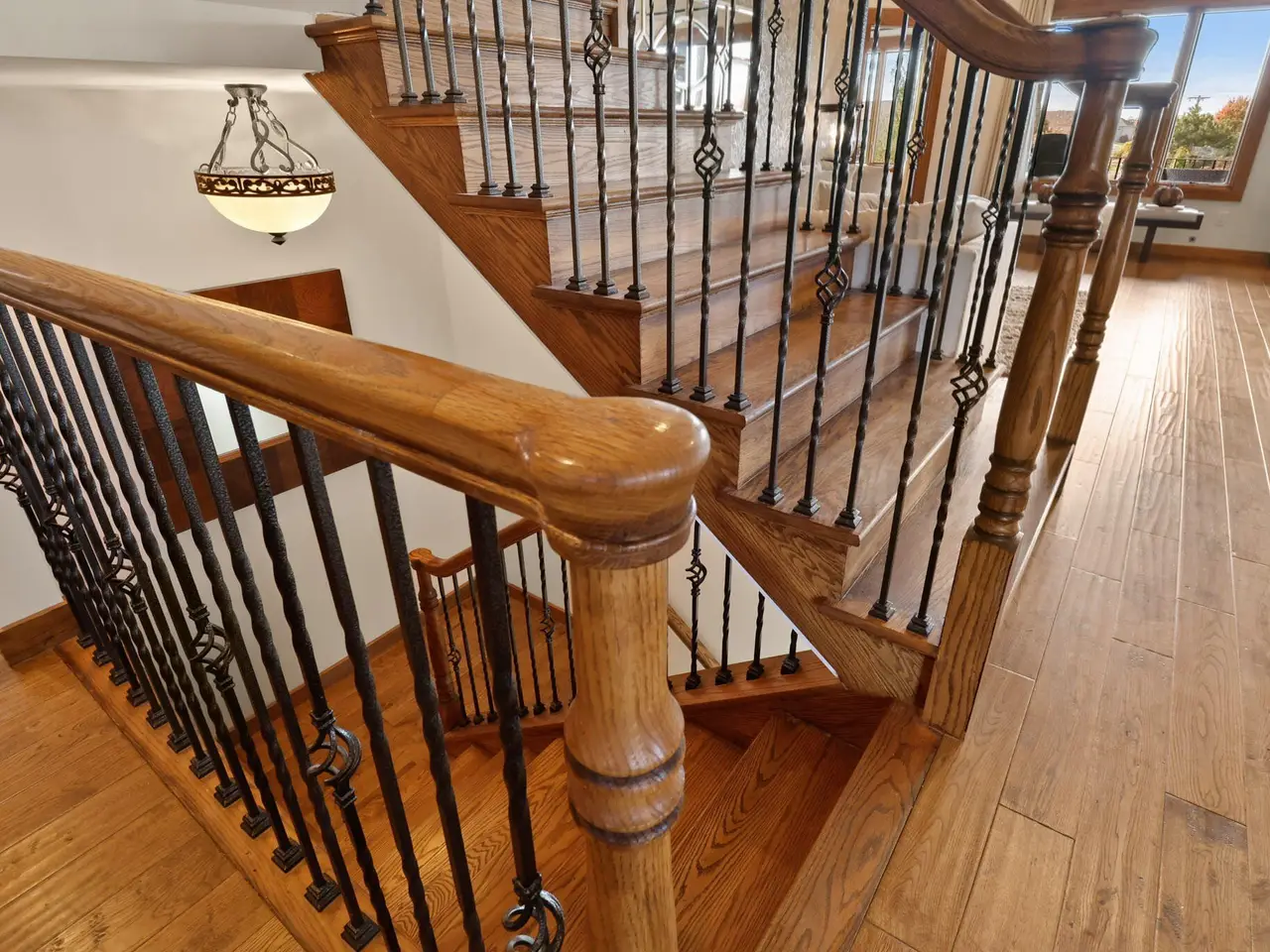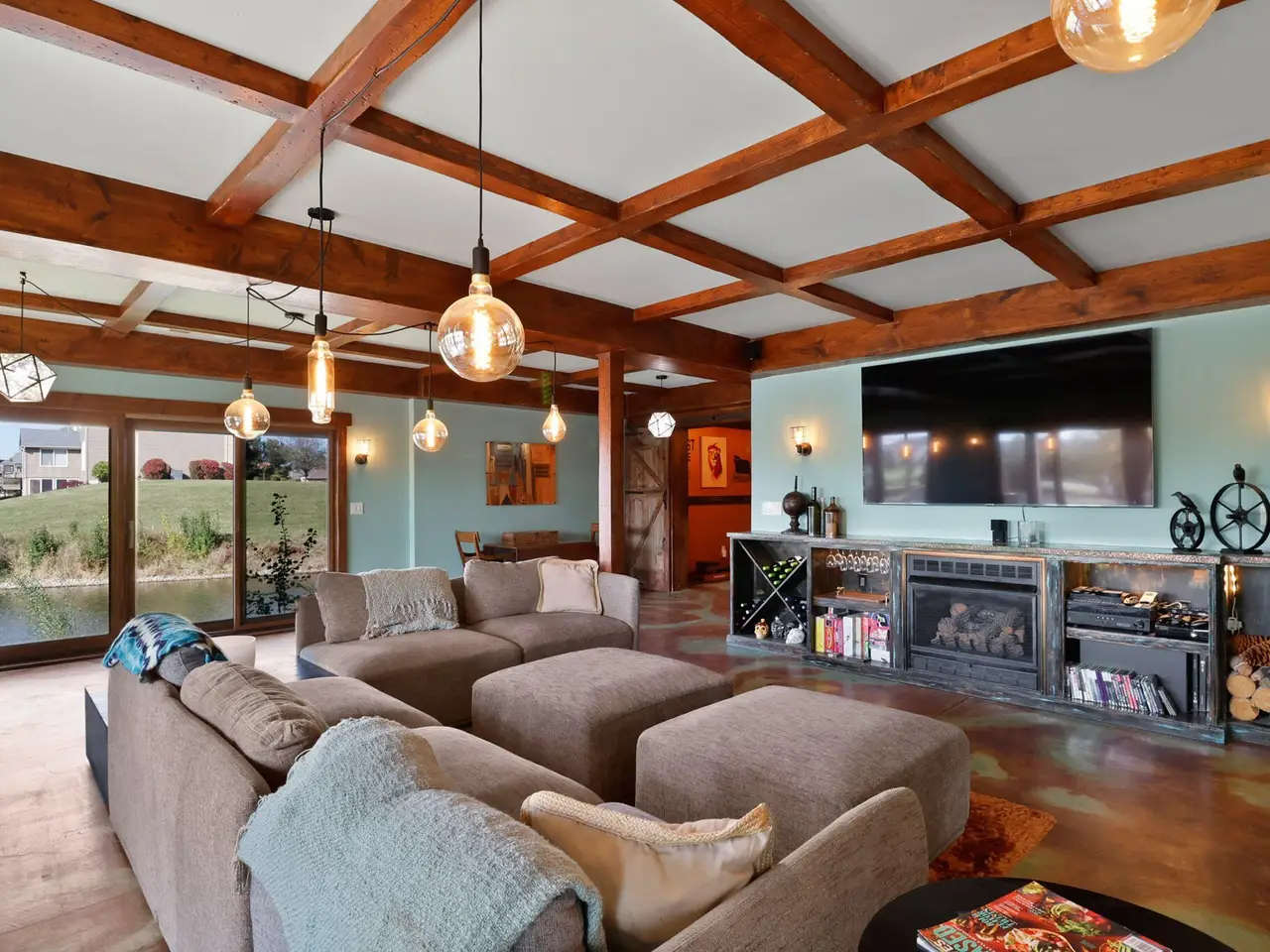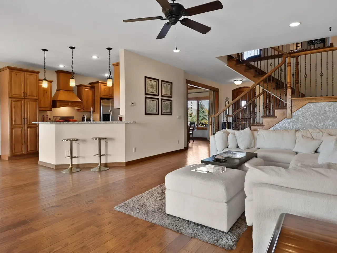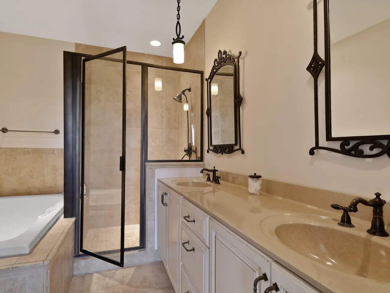 Gorgeous brick and stone home with a finished walkout is nestled into a hill with water views from every window. A seamless blend of old world charm and modern appointments create a warm and inviting retreat. 5 custom baths, 4 beds, 4 fireplaces including the masonry outdoor fireplace, 3 outdoor spaces with 2 tiled, covered balconies & a large paver patio, kitchens located on the main and walkout level perfect for entertaining or related living plus a dock with premium MoistureShield Decking for taking advantage of swimming, boating & fishing on Doubletree Lake. Handscraped oak hardwood flows throughout the main level including the entry, dining with coffered ceilings, kitchen with character maple cabinetry & Delicatus granite counters, breakfast room & living rooms featuring an indoor/outdoor fireplace open to the 22' x 10' balcony. The upper level owner's suite is a true escape with a double sided FP, balcony, two 20'x 6' WICs & a spectacular bath lined in antiqued marble with 2 floating vanities, 2 person tub, walk-in shower & linen closet. Main level primary with ensuite hosting a whirlpool tub & tile shower, large WIC & balcony access. Main floor 2nd bed & upper level 4th bed/bonus room are both adjacent to their own stunning baths. The walkout is perfect for entertaining with acid stained concrete floors & a kitchen featuring built-in full size fridge & freezer units, convection microwave, oven & warming drawer, gas cooktop plus a freestanding island with integrated bench seating. A convenient basement bath features a beautiful shower with high definition granite look walls perfect for a rinse after a day on the lake. The family room with gas FP & coffered ceilings, gym and storage area complete the basement. Back & side sliders access the expansive patio. Whether you'll be enjoying the gorgeous water views year round or using this for your lakefront getaway, the quality craftsmanship and premium finishes make you feel like you're living on holiday every day.