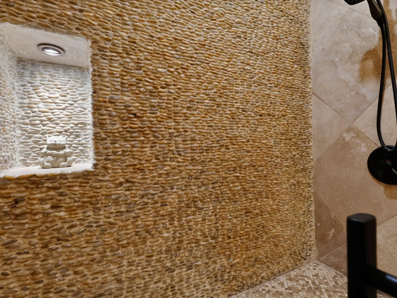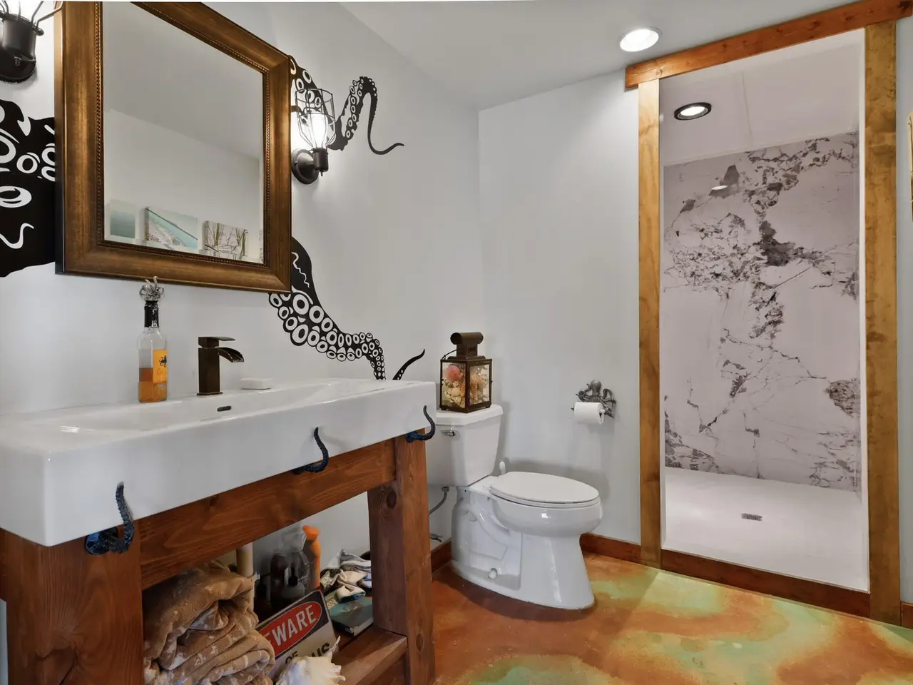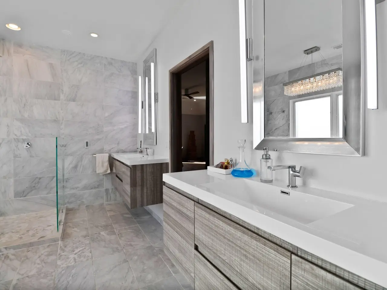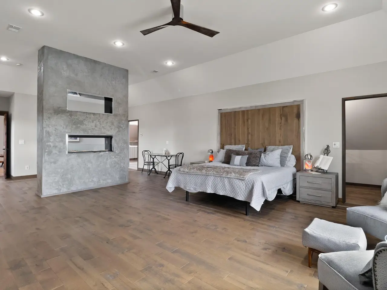 Gorgeous brick and stone home with a finished walkout is nestled into a hill with water views from every window. A seamless blend of old world charm and modern appointments create a warm and inviting retreat. 5 custom baths, 4 beds, 4 fireplaces including the masonry outdoor fireplace, 3 outdoor spaces with 2 tiled, covered balconies & a large paver patio, kitchens located on the main and walkout level perfect for entertaining or related living plus a dock with premium MoistureShield Decking for taking advantage of swimming, boating & fishing on Doubletree Lake. Handscraped oak hardwood flows throughout the main level including the entry, dining with coffered ceilings, kitchen with character maple cabinetry & Delicatus granite counters, breakfast room & living rooms featuring an indoor/outdoor fireplace open to the 22' x 10' balcony. The upper level owner's suite is a true escape with a double sided FP, balcony, two 20'x 6' WICs & a spectacular bath lined in antiqued marble with 2 floating vanities, 2 person tub, walk-in shower & linen closet. Main level primary with ensuite hosting a whirlpool tub & tile shower, large WIC & balcony access. Main floor 2nd bed & upper level 4th bed/bonus room are both adjacent to their own stunning baths. The walkout is perfect for entertaining with acid stained concrete floors & a kitchen featuring built-in full size fridge & freezer units, convection microwave, oven & warming drawer, gas cooktop plus a freestanding island with integrated bench seating. A convenient basement bath features a beautiful shower with high definition granite look walls perfect for a rinse after a day on the lake. The family room with gas FP & coffered ceilings, gym and storage area complete the basement. Back & side sliders access the expansive patio. Whether you'll be enjoying the gorgeous water views year round or using this for your lakefront getaway, the quality craftsmanship and premium finishes make you feel like you're living on holiday every day.