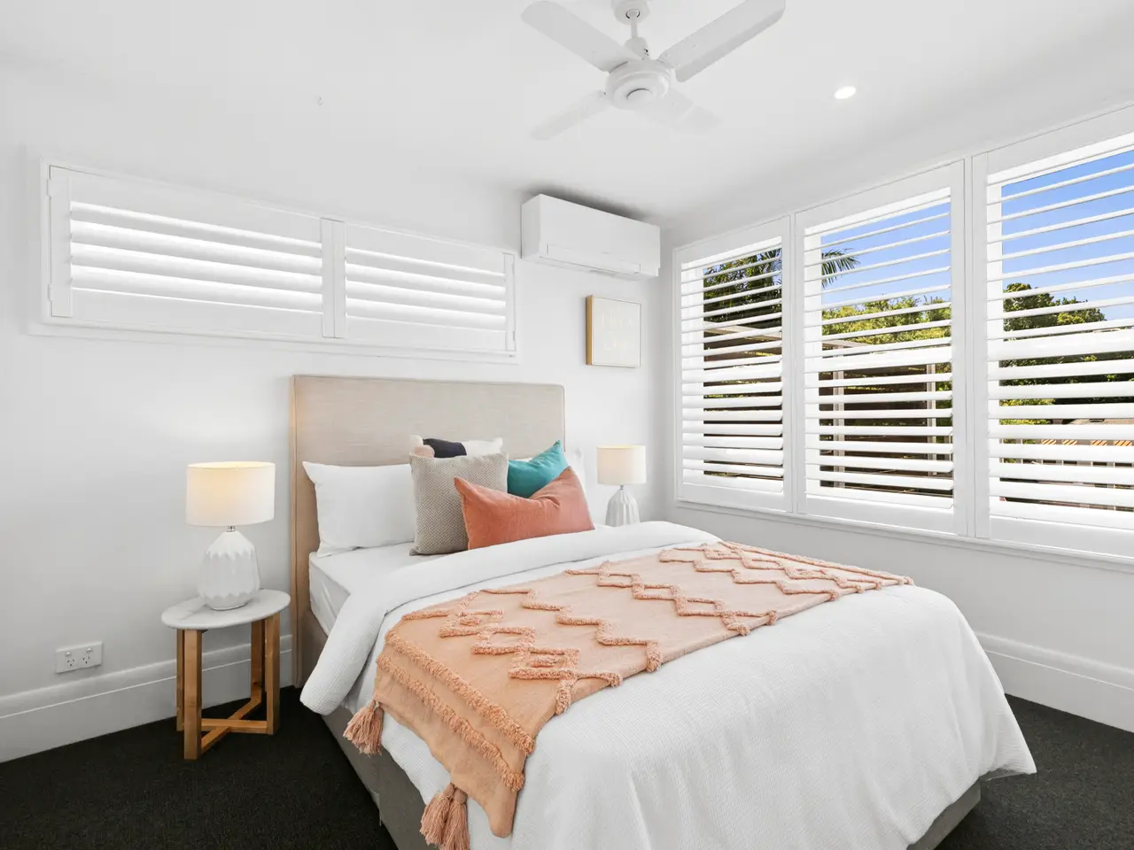 • Dark stained timber floors with shutters