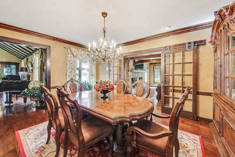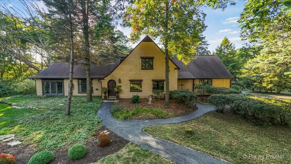 MOTIVATED SELLERS! Prepare to embrace the pinnacle of estate living at Stonegate Manor, a historic and magnificent Georgian country estate situated on 5.5 lush acres in the heart of Crystal Lake. Built circa 1935, this property offers a blend of timeless appeal, architectural beauty, and breathtaking views. As you approach via the classic gated entrance, a private driveway lined with age-old oaks leads to this secluded sanctuary. The elegant flagstone turnabout welcomes guests, leading to two paved entrance paths that direct them to the arched main doorway. Two front parking spaces sit adjacent to the entry. A second turnabout provides access to the pole barn, offering space for oversized vehicles such as motorhomes and trailers. This grand estate is an architectural treasure, rich in history and stunningly preserved. The 4-bedroom, 4-bathroom home spans 4,500 square feet of living space, with three wood-burning fireplaces adding warmth and character. The home retains original 1930s features, including hardwood floors, stair railings, and light fixtures, maintaining its historic charm. The master suite is a private retreat, complete with a fireplace, balcony, and a custom ceiling that creates an inviting space for relaxation. At the heart of the home is the massive gourmet kitchen, featuring a granite-topped island, commercial cooking equipment, vaulted ceilings with open barn wood beam gables, a wet bar, and ample space for entertaining. Modern updates, including new air conditioning and heating systems, dual water heaters, a septic system, radon mitigation, and advanced water purification, ensure comfort while seamlessly integrating with the home's vintage character. The estate offers both forced air and baseboard heating for year-round comfort. The finished portion of the basement includes a 24 x 24 den and a gym, offering additional space for wellness and leisure. The unfinished portion includes a mudroom, a tack room, and updated mechanicals next to the original coal chute. The attached two-car garage, once the carriage house, provides indoor parking, with the antique fire door offering a link to the estate's heritage. Outdoor living is equally impressive. Stonegate Manor features gardens, original 1930s stone walls, a poolside entertainment courtyard, flowing patios, and multi-level decks. The 18 x 36 in-ground pool is perfect for warm summer days, while the koi pond adds tranquility. The three-car detached garage/pole barn provides space for over six vehicles, ideal for car enthusiasts or hobbyists. For equestrian enthusiasts, the property is zoned for horses and features ample grounds for horseback riding or additional facilities. Remnants of the original pastures remain, and the pole barn could easily accommodate horse stalls. Nearby hiking trails add to the recreational opportunities, making this estate not just a home but a retreat. Stonegate Manor is ideally located minutes from downtown Crystal Lake, offering both seclusion and convenience. The property is a short drive to Metra stations for easy access to Chicago, as well as close to shopping, dining, and award-winning schools. The nearby Three Oaks Recreation Area provides outdoor activities, including kayaking and hiking. This estate, with its history, stunning features, and proximity to amenities, presents an extraordinary opportunity for a discerning buyer. Whether you're looking to raise a family, entertain, or embrace a peaceful lifestyle, Stonegate Manor is the perfect place to put down roots and create lasting memories. Don't miss this rare chance to own one of Crystal Lake's most iconic homes. **This home has been featured as a Dream Home with the Chicago Tribune and aired on nationally televised show: The American Dream in 2025! **