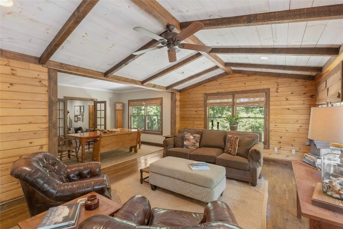 Pass through the gates and wind up to the top of Norton Overlook to discover an original homestead, set back from the road within a private sanctuary. From the front porch, the sights and sounds of nature create a serene backdrop for quiet moments to unwind. Evenings may be spent gathered around the outdoor firepit or inside beside the cozy wood-burning stove set in a stunning stone fireplace. The spacious main level is designed for both comfort and functionality, offering a spacious kitchen, den, dining room, great room, office, laundry area, and a generous primary bedroom, all thoughtfully arranged with excellent flow. Upstairs are two oversized bedrooms, while the lower level expands the living space with an additional bedroom, full bathroom, potential for a kitchenette, and two expansive bonus rooms, perfect for flexible use or recreation areas. A large detached garage with a workshop provides space for artistic pursuits, woodworking, or other hobbies, while ample storage throughout the home ensures everyday practicality. Winter reveals panoramic mountain views, with the potential for further enhancement through strategic tree trimming. Conveniently located near Cashiers, Highlands, and Lake Glenville, this residence combines privacy, comfort, and the best of mountain living. With its versatile spaces and timeless mountain character, this residence offers both a peaceful retreat and a setting for lasting memories.