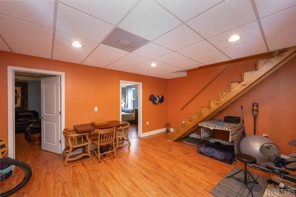 Discover a haven of tranquility and opportunity on 28.93 acres of serene forestland in Cullowhee. This unique property encompasses two parcels along the picturesque Cane Creek Road. The first parcel, Cane Creek Cottage, features a charming 1920-built residence with two bedrooms, one bathroom, a modest kitchen, and a cozy living area. A breezeway connects the cottage to a spacious classroom area with two half-bathrooms and potential for a variety of uses. The cottage boasts locally milled pine siding, while unvented wall heaters and a/c units provide comfort in all seasons. Outside, a large open porch and picnic area offer spaces for relaxation enhanced by the soothing sounds of Cane Creek. With ample parking and camping potential, this parcel can serve as an occasional short-term rental through platforms such as Hipcamp and Airbnb. The second parcel, 1443 Cane Creek Road, presents a spacious single-family home with four bedrooms, three bathrooms, and a HardiePlank exterior that complements stunning long-range mountain views. This home includes a firepit area, chicken coop, multiple garden spots, and two wood-burning stoves. Inside, an open floor plan joins the living, dining, and kitchen areas on the main level. This level also features the primary suite with an ensuite bathroom plus two guest bedrooms, one full bathroom, and laundry facilities. The lower level offers a third guest bedroom and bathroom, bonus room, secondary living area, full kitchen, and pristine utility space. Fiber optic internet ensures connectivity, currently provided by Optimum. Suitable for mixed-use residential or commercial applications, this property offers a multitude of possibilities in a beautifully secluded setting with proximity to downtown Sylva and Western Carolina University.