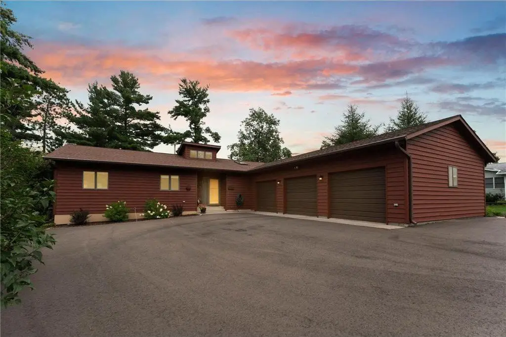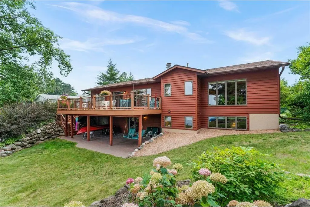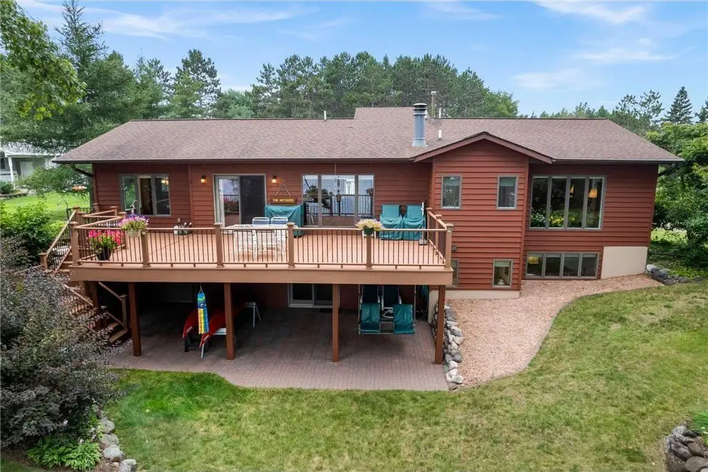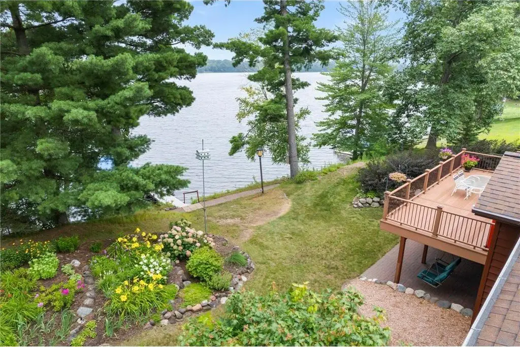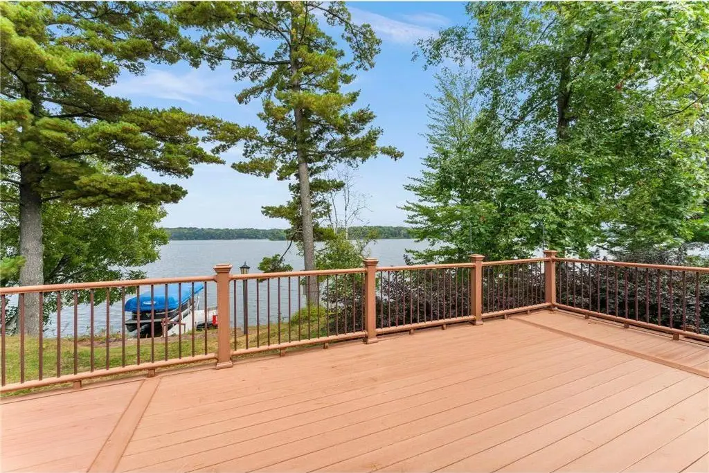 Amazing lake home located on Beaver Dam Lake in the City of Cumberland with city services and local conveniences on sought after Hines Lakeview Drive. Over 3,000 total square foot home with incredible storage to be found with this four bedroom three bath home with an incredible level lot, landscaped with beautiful perennials. Kitchen boasts custom maple cabinets with & in floor heating. Exquisite dining room addition with gorgeous maple and cherry flooring, main level living including gorgeous views from your primary suite. Composite decking to enjoy the lake view with a patio below leading from your walkout family room complete with kitchenette. Full office space or recreation room with 4th bedroom and full bath in lower level with efficient in floor heating in lower level. Lower patio has separate storage entrance for all the lake toys or workshop space.