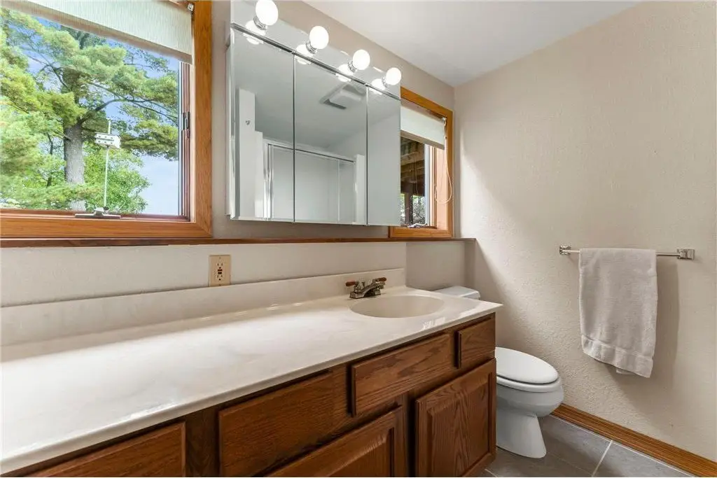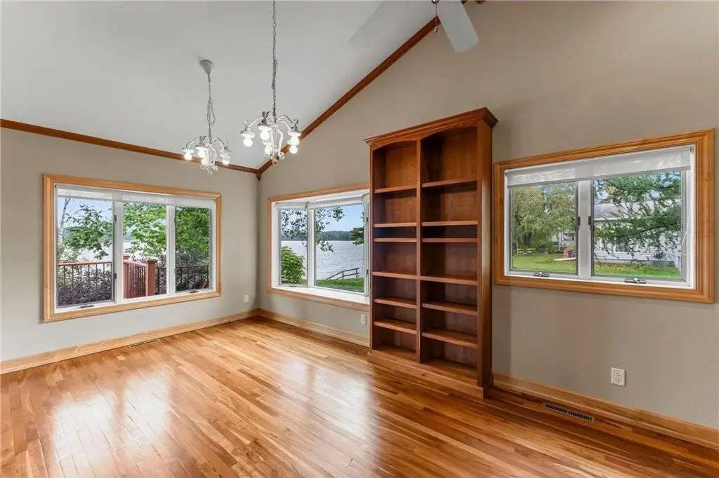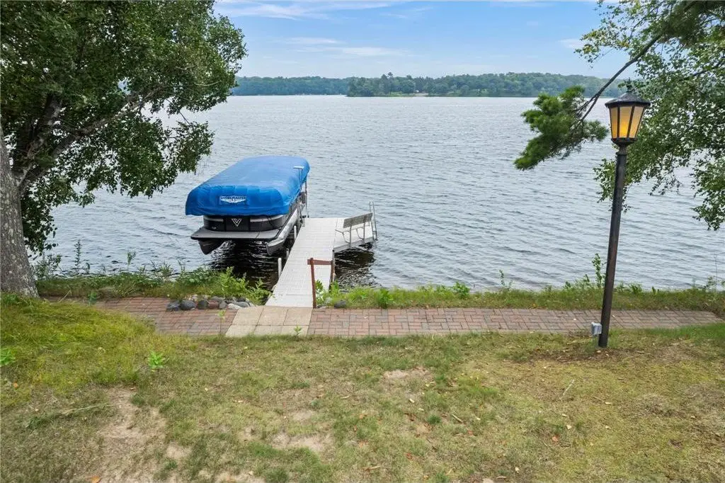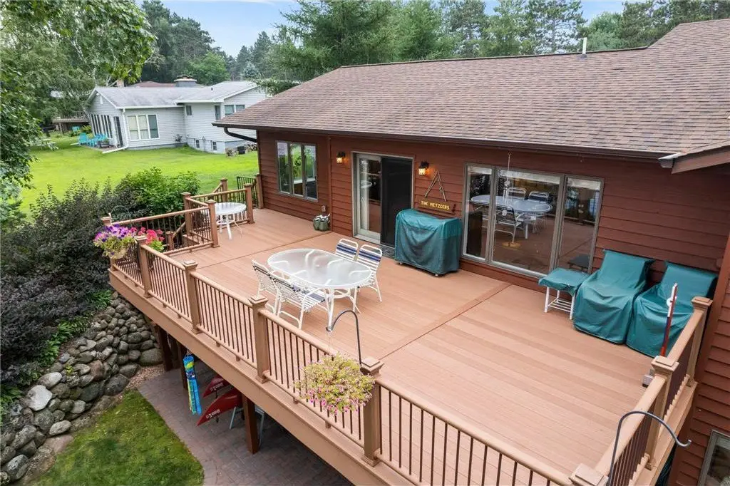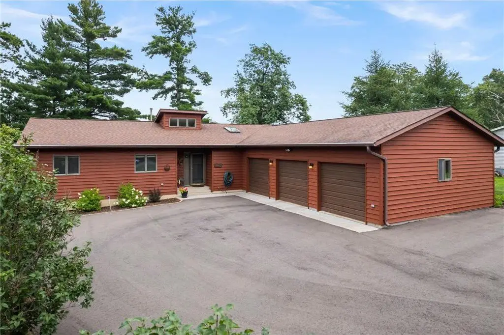 Amazing lake home located on Beaver Dam Lake in the City of Cumberland with city services and local conveniences on sought after Hines Lakeview Drive. Over 3,000 total square foot home with incredible storage to be found with this four bedroom three bath home with an incredible level lot, landscaped with beautiful perennials. Kitchen boasts custom maple cabinets with & in floor heating. Exquisite dining room addition with gorgeous maple and cherry flooring, main level living including gorgeous views from your primary suite. Composite decking to enjoy the lake view with a patio below leading from your walkout family room complete with kitchenette. Full office space or recreation room with 4th bedroom and full bath in lower level with efficient in floor heating in lower level. Lower patio has separate storage entrance for all the lake toys or workshop space.