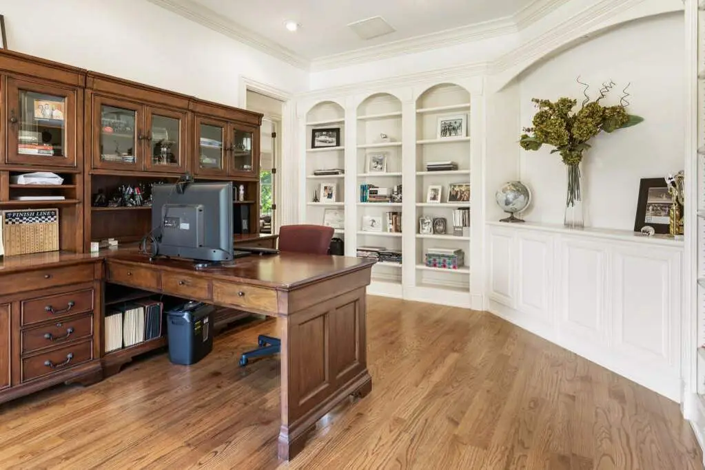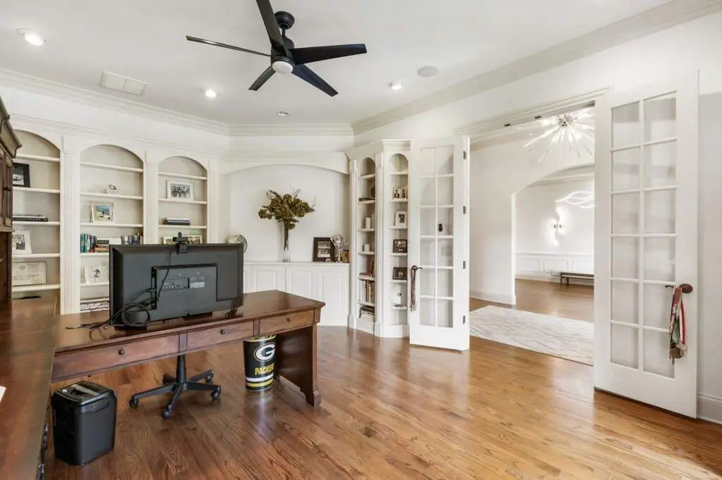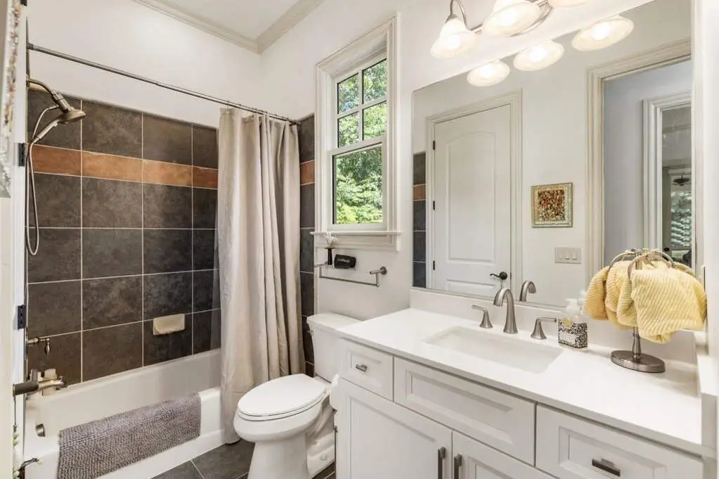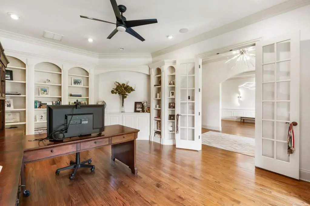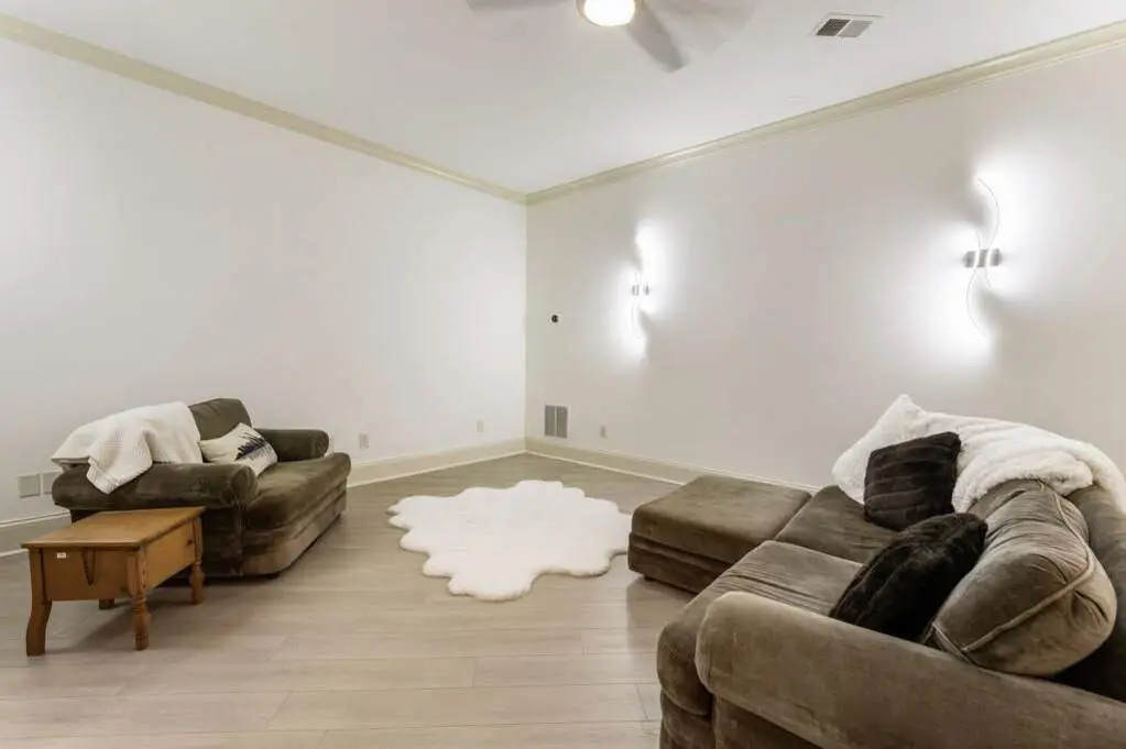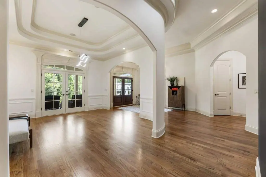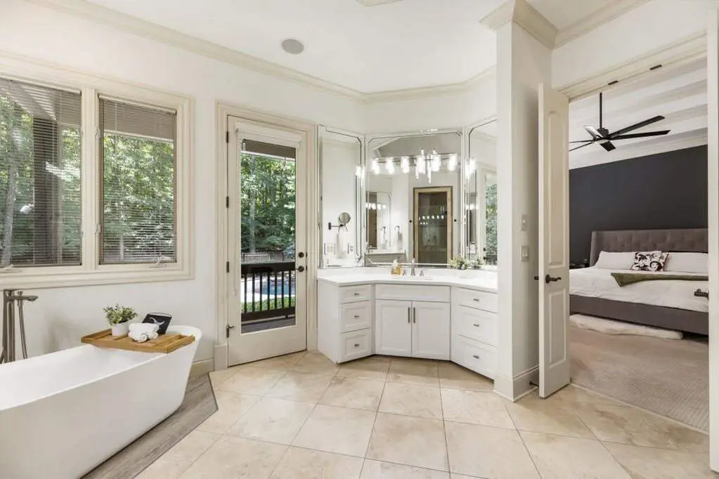 Welcome to this beautifully updated one level ranch style home that offers walk-out on the main level to your outdoor oasis featuring a gunite sparkling pool, a screened porch, and lots of outdoor entertaining space. This gorgeous home is located in Forsyth county and situated at the end of a quiet cul-de-sac in gated enclave of luxury homes. The charming front porch offers a warm welcome and sets the tone for the comfort and quality found throughout the property. Upon entering through the front door, you are greeted by a formal dining room on your right and a private study on your left, complete with built-in bookcases. This thoughtful layout creates a balanced and inviting entry that leads effortlessly into the main living space. The heart of the home features an open-concept kitchen design with this oversized island that offers seating and open concept. The completely modernized kitchen with all new appliances opens to the living room and screened porch. A centrally located fireplace serves as a warm and welcoming focal point, perfect for both everyday living and entertaining. Just off the kitchen, a screened-in back porch with its own fireplace offers a comfortable outdoor living space that can be enjoyed year-round. The primary suite is a peaceful and well-appointed space. The ensuite bathroom features separate dual vanities, two walk-in closets, and a large walk-in shower. A private bonus room, currently used as a home gym, adds function and flexibility. A second bedroom with ensuite is also located on the main floor. The fully finished basement includes two additional bedrooms, two full bathrooms, one half bathroom, a generous media room, and a wet bar. The lower level offers multiple flexible living spaces ideal for craft room, media space, movie room, ping pong or pool table room perfect for entertaining & hosting guests. Every major system has been thoughtfully updated including pool heater, HVAC, water heaters, roof replaced and freshly painted interior