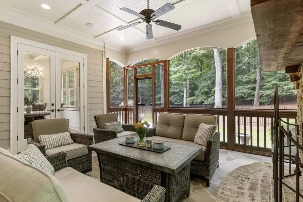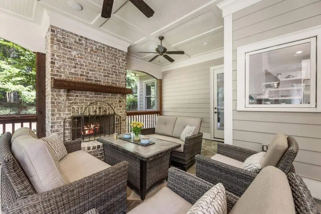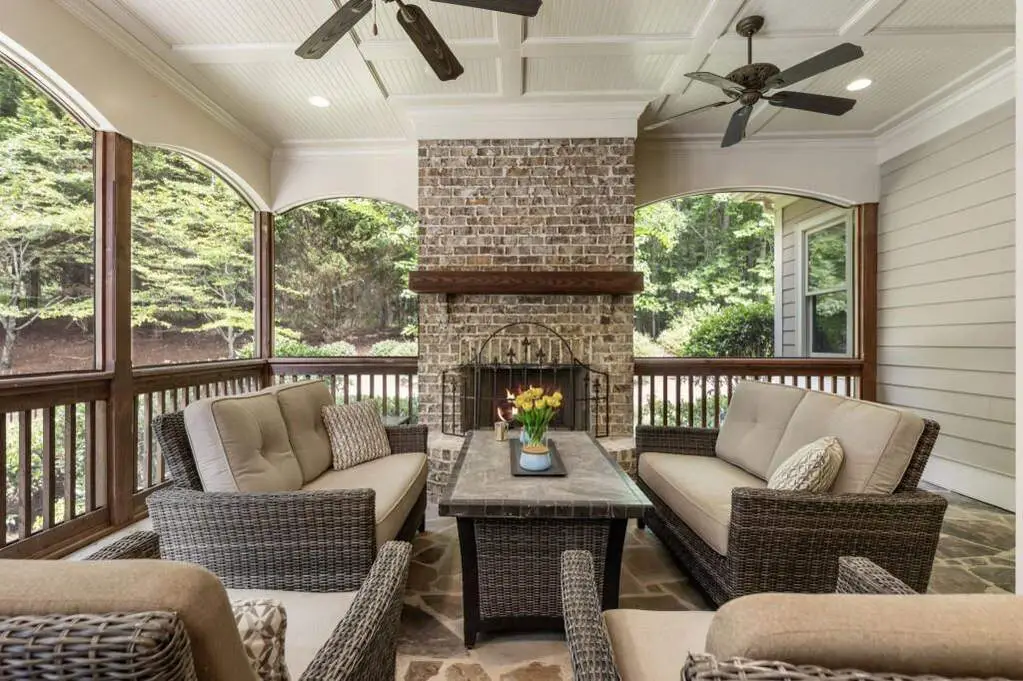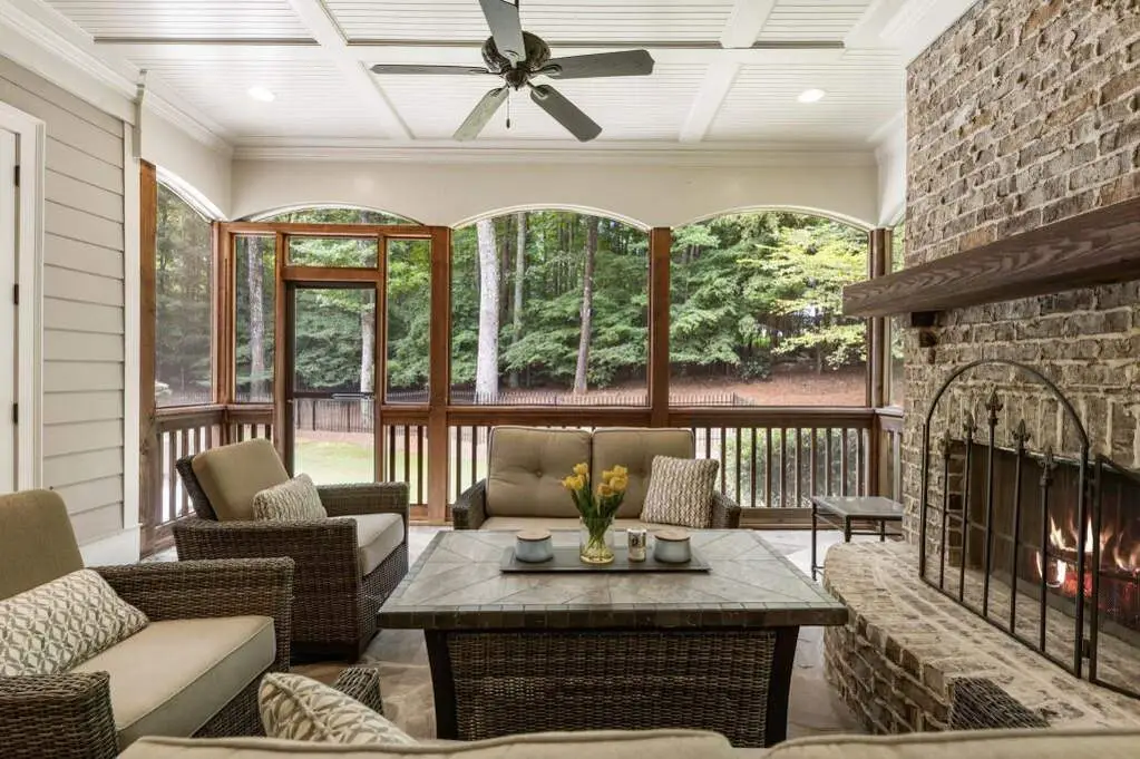 Screened porch with fireplace