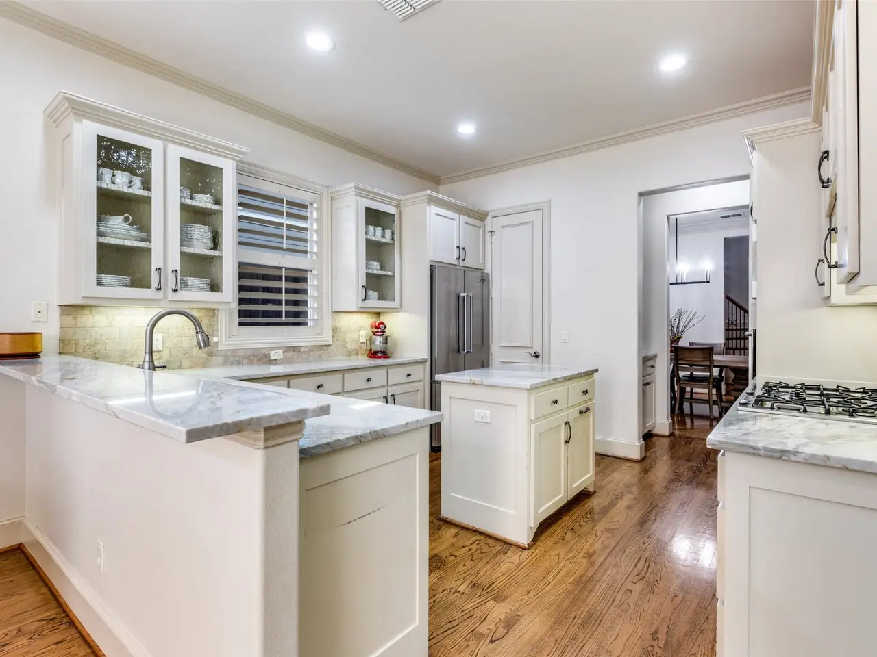 Beautiful Vickery Place Home offers prime convenience to Knox Henderson, Lower Greenville, Hwy 75, and an array of shops and dining. Recently painted with refinished floors throughout, the interior shines with natural light. The open floor plan includes a first-floor guest suite, private study with built-in cabinets and desk, and a spacious family room with custom built-ins and a wall of windows overlooking the backyard. Plantation shutters on all windows add timeless style and privacy.The chef's kitchen boasts stainless steel appliances, double ovens, and a butler's pantryperfect for entertaining. Upstairs features a versatile second living area, two secondary bedrooms, and a laundry room with sink and storage. The generous primary suite offers two custom walk-in closets for ultimate organization.A private gate opens to a thoughtfully designed backyard with a covered patio, grassy area, and two-car garageideal for both relaxation and entertaining.
