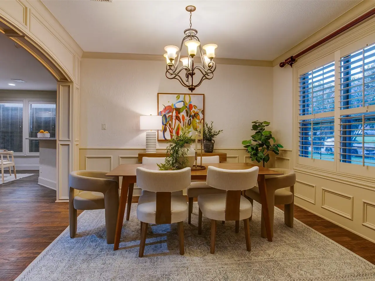 Nestled on a corner lot in the heart of Lakewood Hills, this residence feels less like a house and more like a setting for lifes unfolding moments. Step into the two-story foyer where sunlight spills down from above, guiding you into a living room framed by a fireplace and an expanse of windows that open the home to the trees beyond. The rhythm of the main floor flows with ease; dining and living blending naturally with a kitchen designed as the heart of the home. Here, granite counters, stainless steel appliances, and a professional gas range ground the space in both function and beauty, while a breakfast nook carries you outside to the covered veranda. Everyday details are thoughtfully placed: a wood-paneled office with warmth and presence, a guest suite tucked downstairs for privacy, and a mudroom that quietly organizes the flow of daily life. Upstairs, the primary suite rises to meet vaulted ceilings and a wall of floor to ceiling windows, a retreat defined by openness and calm. The bath pairs a generous shower with a soaking tub, while dual vanities and a walk-in closet complete the picture of intention. Two additional bedrooms and a laundry room round out the second floor, offering both comfort and connection. Out back, evenings stretch long beneath the canopy of mature trees. The veranda runs the length of the home, overlooking a fenced lawn where fireflies flicker at dusk; a reminder of natures quiet magic in the heart of Dallas. Beyond the doorstep, the location connects seamlessly to daily life: a short walk to White Rock Lake and its winding trails, just a block from favorite neighborhood restaurants, and part of the highly regarded Lakewood Elementary district. Fifth bedroom is the office as its separate dedicated space in addition to the other 4 bedrooms. Recent updates include roof replacement, cedar fencing with automated gate, and two replaced water heaters.