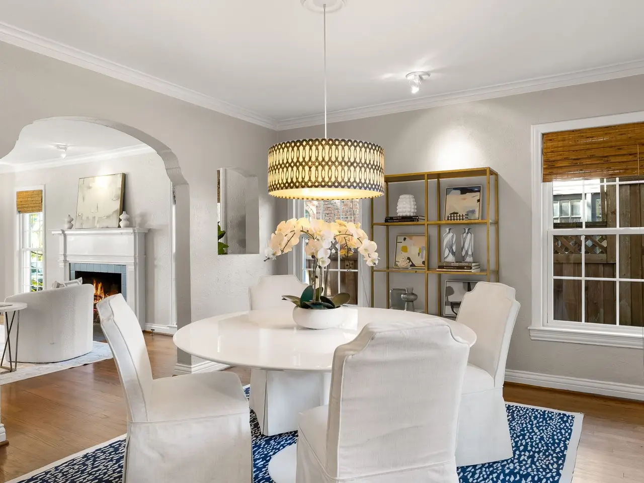 Welcome home to your charming two story traditional in desirable Mockingbird Elementary! Situated on a corner lot on a beautiful block. This is not one to miss! Four beds, one downstairs could serve as a study with ensuite bath. 2773 total sqft. Greeted by light filled formal living, open floorplan leads you to full size dining room & eat in kitchen complete with stainless steel appliances. Attached family room overlooking turfed backyard, with large deck perfect for entertaining & outdoor dining. Fabulous primary suite with oversized shower, dual vanities & walk-in closet. The most darling secondary bedrooms share updated full hall bath. Home features beautiful hardwood floors. Attached garage with side entry. A short distance from neighborhood restaurants & attractions.